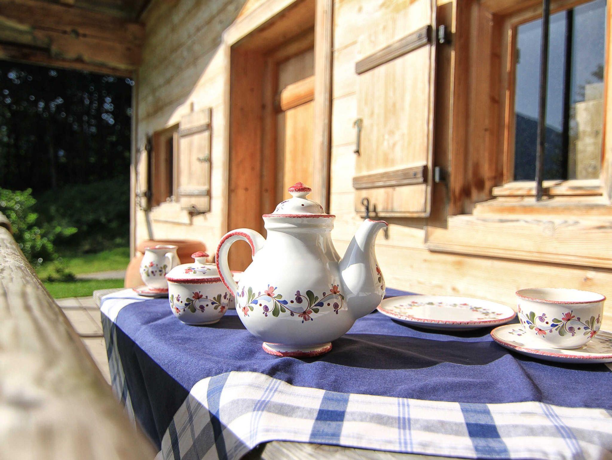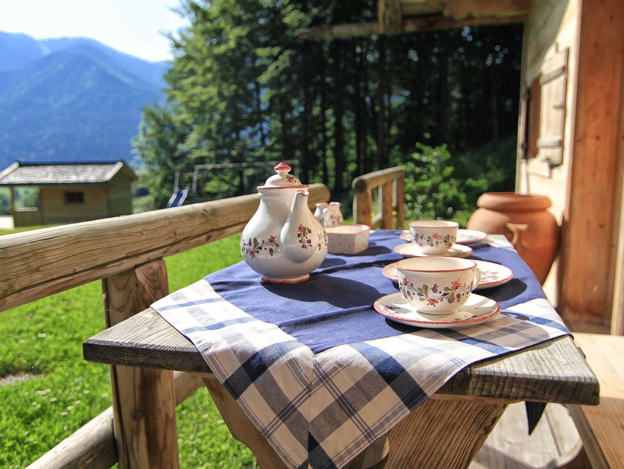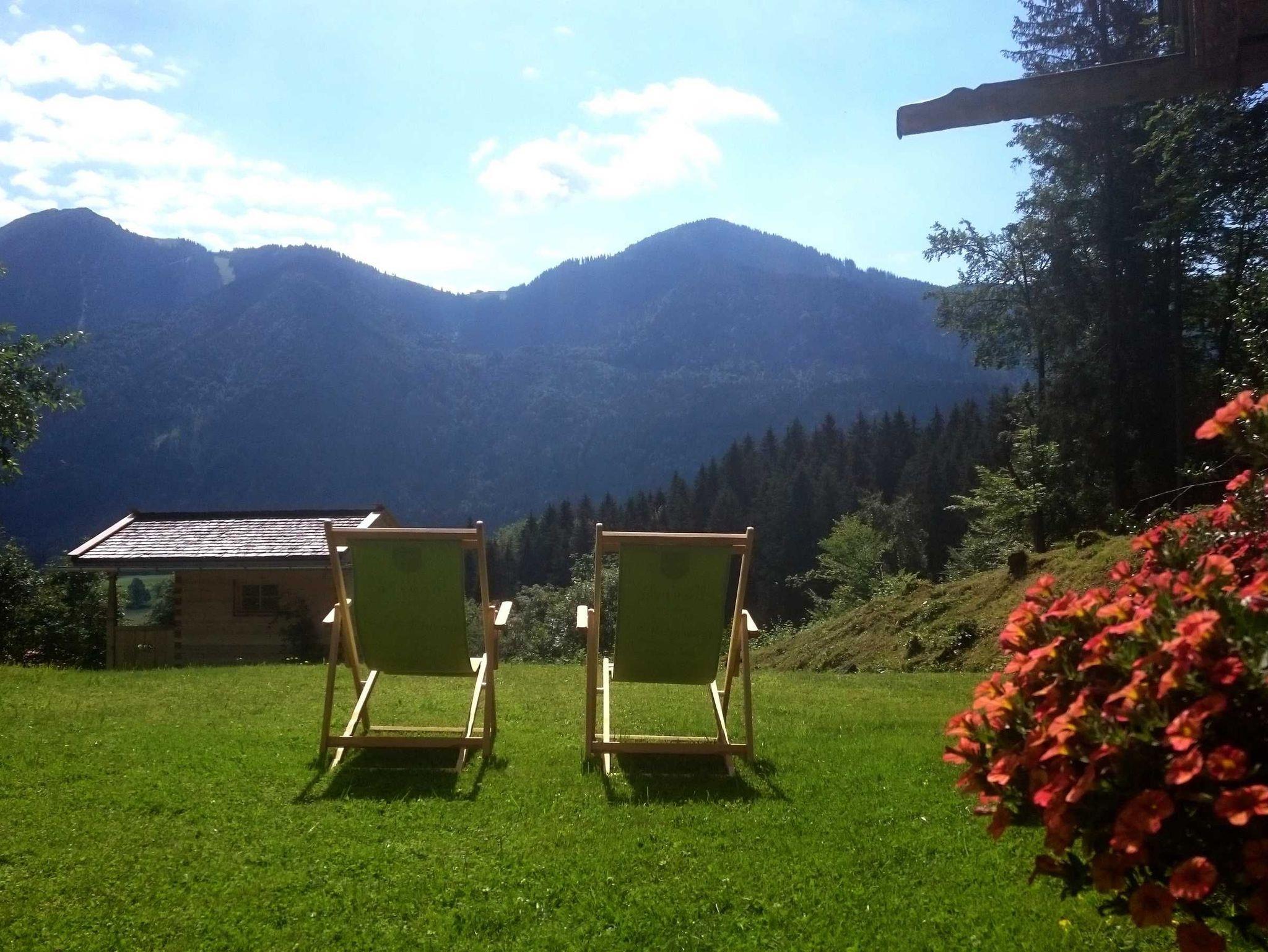 Beginnen Sie Ihren Urlaubstag doch beim Frühstück im Freien mit herrlichen Blick zum Wallberg.