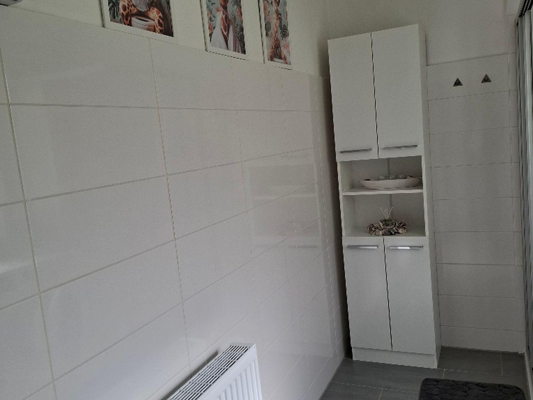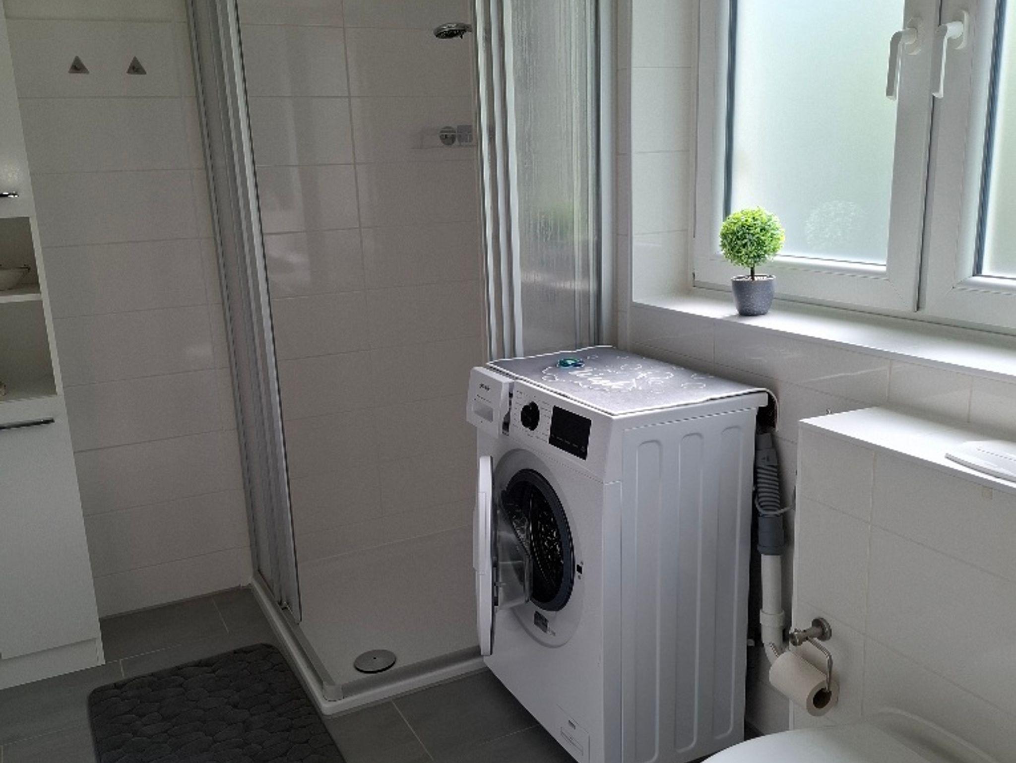Im Badezimmer findet ihr neben Waschbecken eine ebenerdige Dusche, Toilette vor, zudem könnt ihr eure Wäsche waschen (WM). Grundstock an Seife, Toilettenpapier und Handtuch-Sets halten wir für Euch bereit. Nutzung der Waschmaschine ist im Preis inbegriffen, ein Waschmitteltabs erhaltet ihr kostenlos.