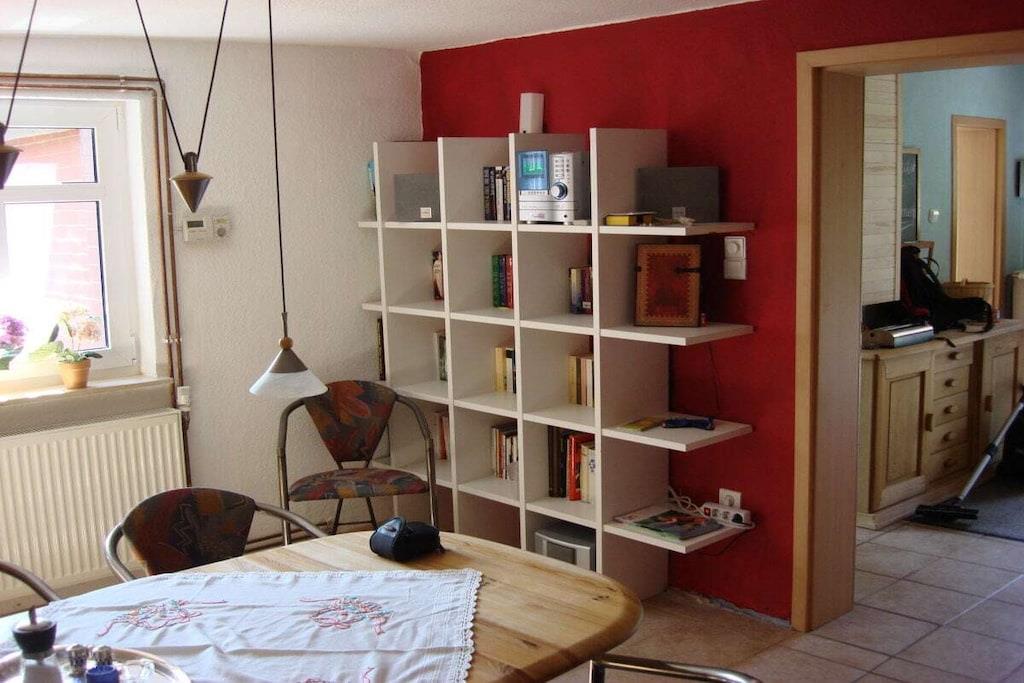 Krienke - Müritz Nationalpark - højre, venstre, oven, nedenunder: skove, heder og søer. Fortryllet, drømmende, men alligevel let tilgængeligt. Hvis du har fået nok af at svømme, padle og cykle; plukke svampe og bær; og observere dyrelivet - så har vores feriehus meget mere at byde på. Fuldstændig renoveret og møbleret med kærlighed og komfort, finder du plads og komfort til madlavning, spil, samtaler og film. Bogorme vil finde noget for (næsten) enhver smag i vores bogsamling. Dette inkluderer en have med afslapningsområder og grillfaciliteter. Feriehuset er ideelt til 4 personer; sovehemsen tilbyder en anden hyggelig sovemulighed - elsket af alle børnene. Og til en morgensvømning i Pagelsee-søen er den kun omkring 700 meter væk.