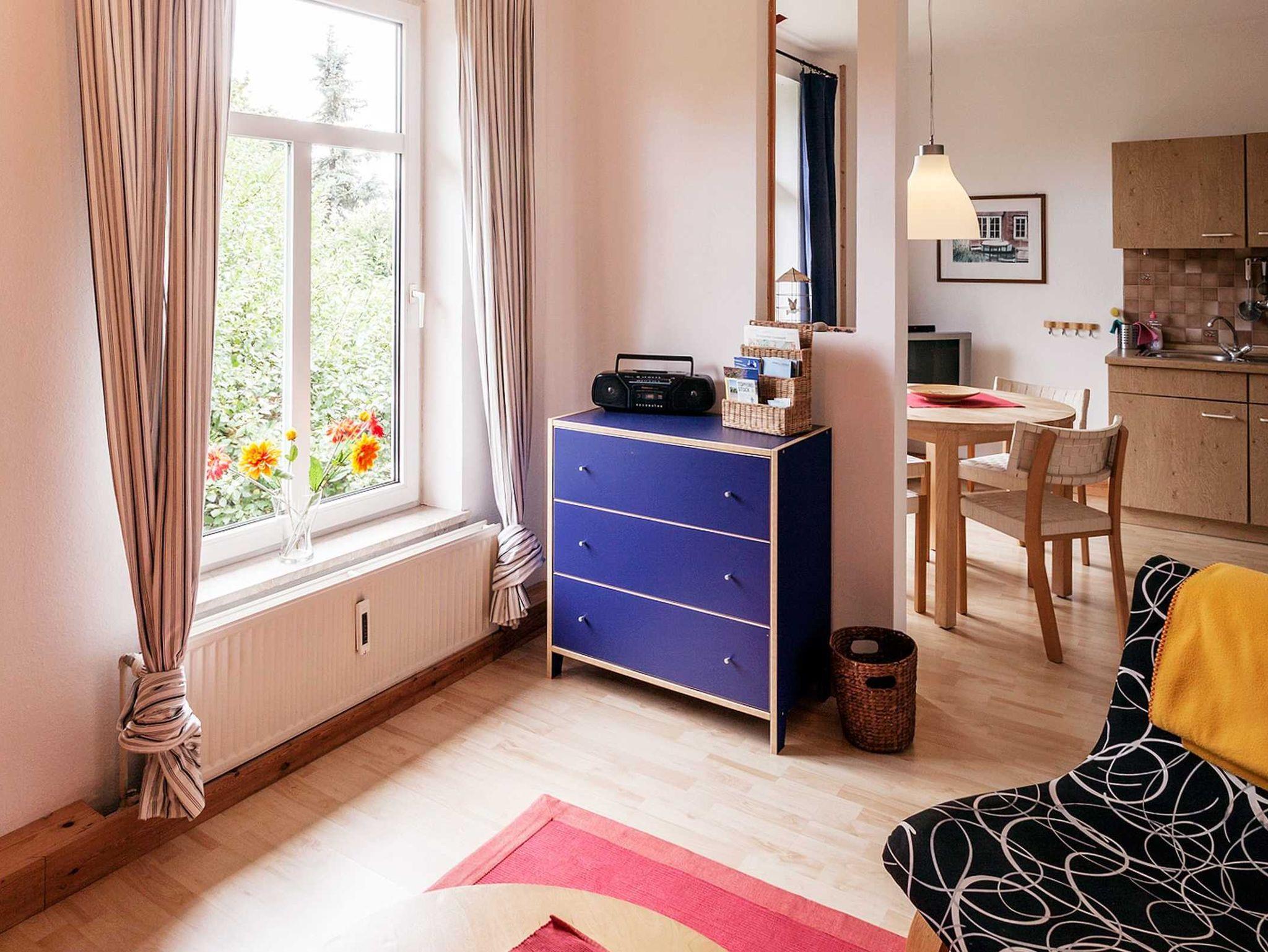 Der alte Dorfkrug bietet im ersten Stock Platz für 4 eigenständige Ferienwohnungen mit gemütlicher Wohnküche, Badezimmer und Schlafzimmer. Entspannung und Luft, um die Seele baumeln zu lassen, buchen Sie in dieser ruhigen Dorflage gleich mit. Alle Ferienwohnungen wurden in den letzten Jahren mit viel Zeit und Liebe zum Detail renoviert und hell und freundlich ausgestattet - überzeugen Sie sich selbst.