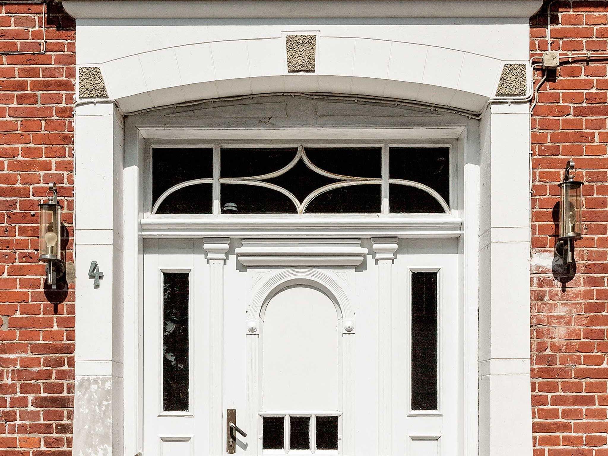 Der alte Dorfkrug wurde um 1900 als Gaststätte und Kolonialwarenladen erbaut. An dem denkmalschutzwürdigen Gebäude finden sich überall Jugendstilelemente als Zeugen des damaligen Geschmacks. Man kann sich richtig vorstellen, wie die einstigen Bewohner Kronsgaards hier beim Einkauf ihren Klönschnack hielten.