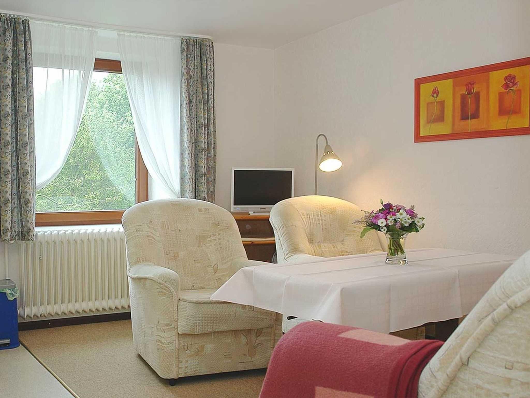 Gemütlich eingerichtet erwartet im Obergeschoss die Ferienwohnung 6 bis zu 4 Gäste. Fußböden überwiegend mit PVC, nur im Wohn- / Essbereich noch Teppich.