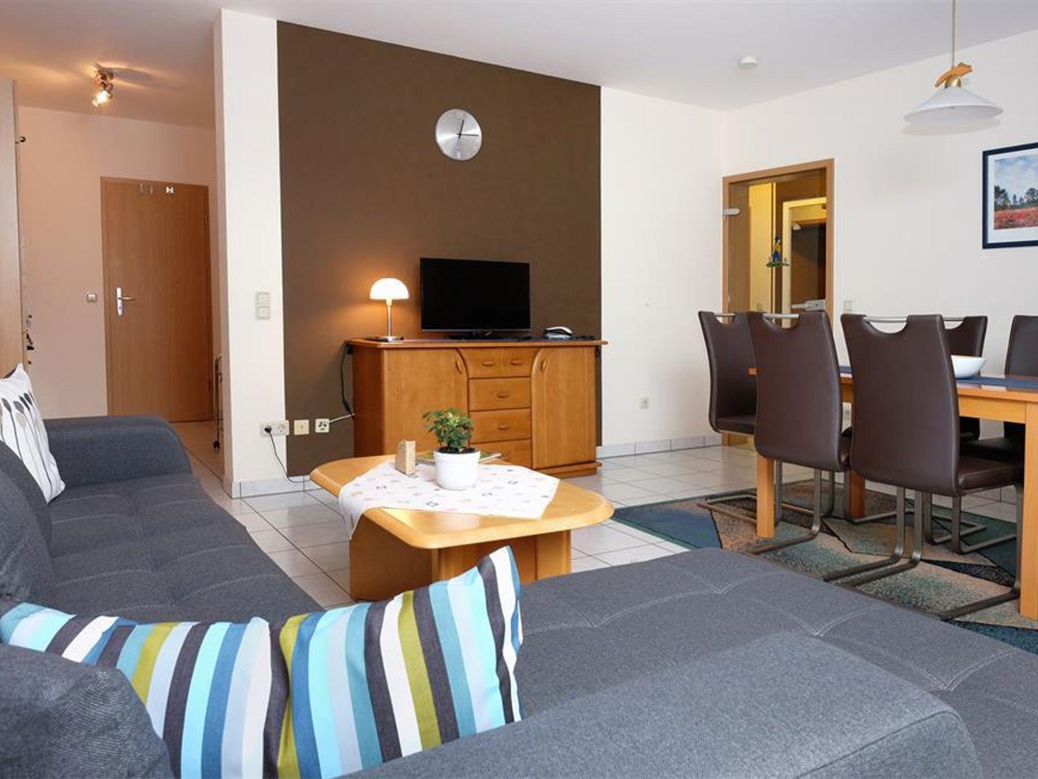 Das Wohnzimmer verfügt über Satelitten-Flat-Screen-TV. Die Küche bietet alle Möglichkeiten, um nach Herzenslust zu kochen.
