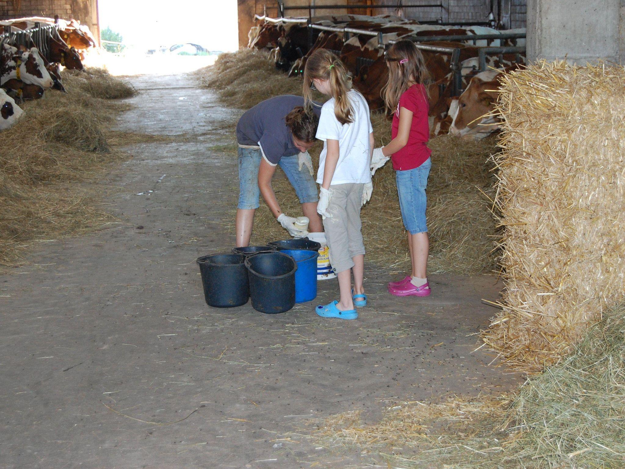 Zum Ferienhof gehört ein voll bewirtschafteter Bauernhof mit Kühen, Ponys zum Reiten und Katzen in 150m Entfernung. Hier können Sie hautnah beim Melken zusehen und mithelfen.