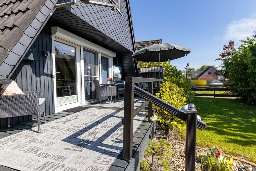 Kun et stenkast fra diget byder vores feriehus "Johanns Huus" jer velkommen til Greetsiel. Vores charmerende A-rammehus tilbyder alt, hvad I behøver, fordelt på to etager. I stueetagen finder I en lys opholds- og spisestue med en komfortabel sofa, spisebord og et fuldt udstyret tekøkken. Opholdsstuen åbner direkte ud til terrassen. I stueetagen er der også et lyst badeværelse med badekar og bruser. Ovenpå finder I to soveværelser med dobbeltsenge. Ud over en reserveret parkeringsplads har huset et opbevaringsrum. Bemærk venligst, at der er to cykler i opbevaringsrummet, som er en del af inventaret. Hvis I medbringer jeres egne cykler, kan I opbevare dem i haven.