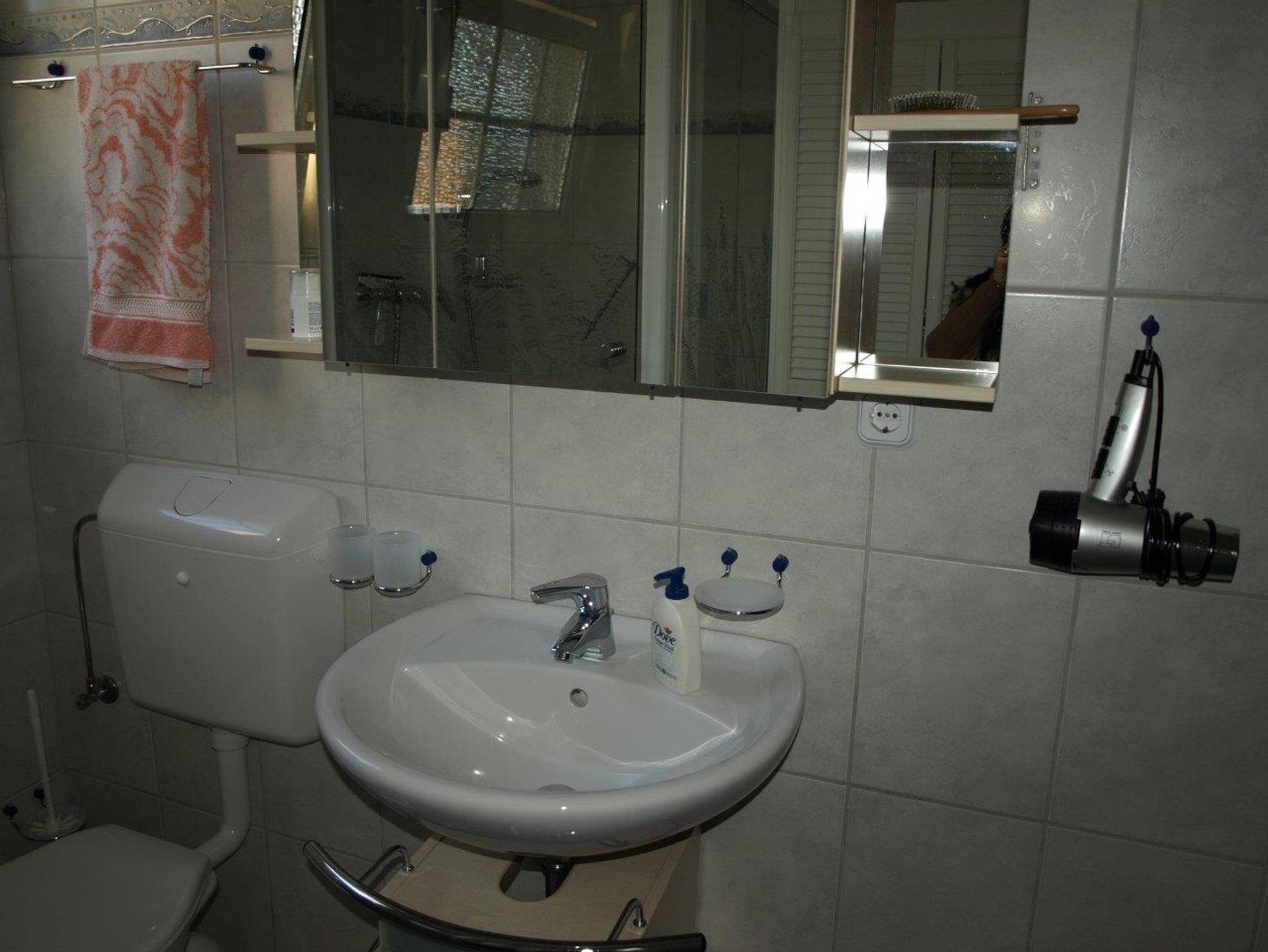 Sie verfügt über ein Wohnzimmer, ein Schlafzimmer mit Doppelbett, ein Schlafzimmer mit zwei Einzelbetten, ein Duschbad mit WC, eine komplett eingerichtete Einbauküche (Geschirrspülmaschine, 4-Plattenherd, Backofen, Mikrowelle, Kühlschrank, Kaffeemaschine, Wasserkocher, Eierkocher, Toaster, Handmixer, u. a.) mit Essplatz, Satellitenfernsehen, Radio mit CD-Spieler, Waschmaschine, Abstellraum, WLAN.