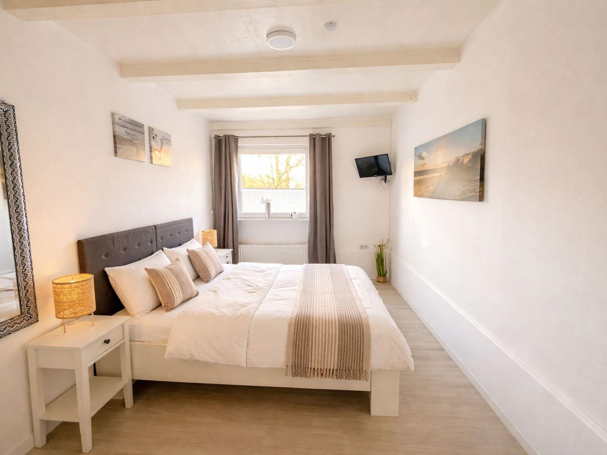 Das Schlafzimmer hat ein großes Doppelbett in 180x200 cm, und einen neuen Smart TV.