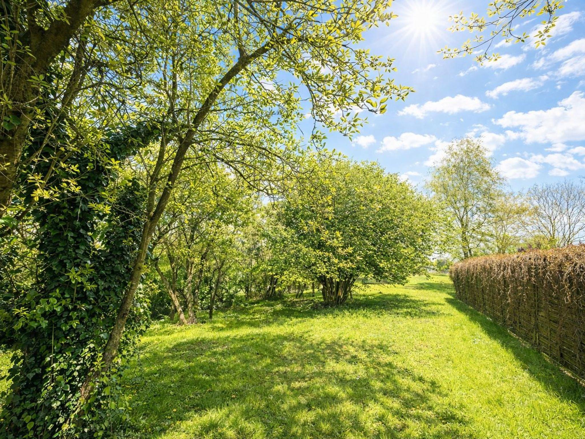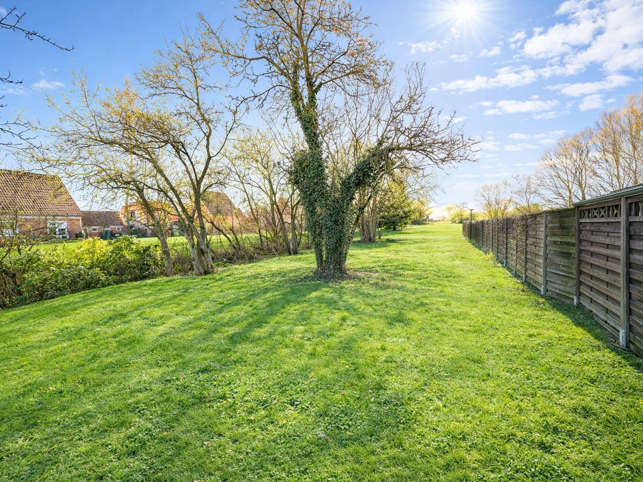 Besonders schön: der große, naturbelassene Garten mit Obstbäumen, Strandkorb, Hängematte und einem Gartenhaus mit Kaminofen. Hier lässt man die Seele baumeln — ob bei Sonnenschein im Grünen oder abends am knisternden Feuer. In der Erntezeit dürfen Sie vom Obst naschen.