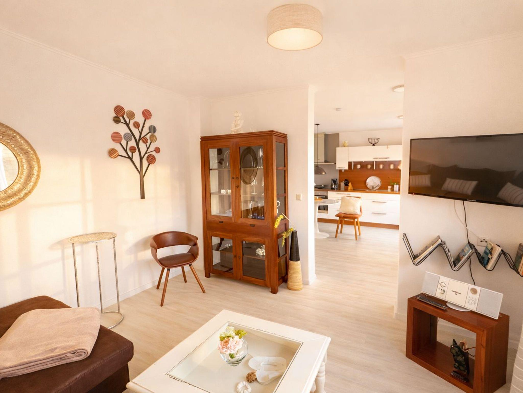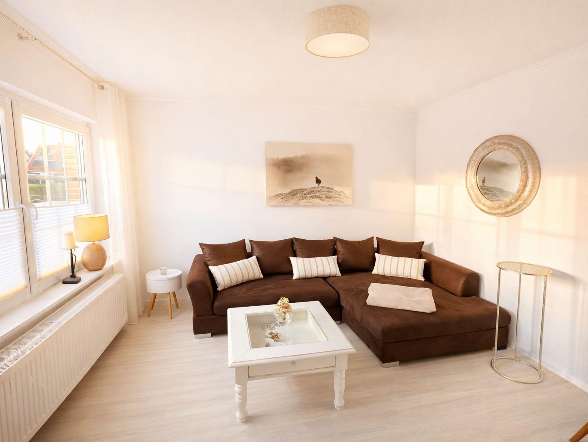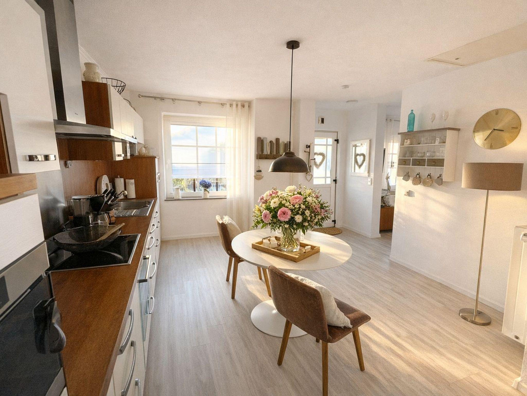Die Küche ist frisch ausgerüstet mit Kaffeemaschine, Toaster, Küchengeschirr etc.. Das gemütliche und helle Wohnzimmer hat einen Smart TV. Im Wohnzimmer relxaen Sie auf der gemütliche Eckcouch.