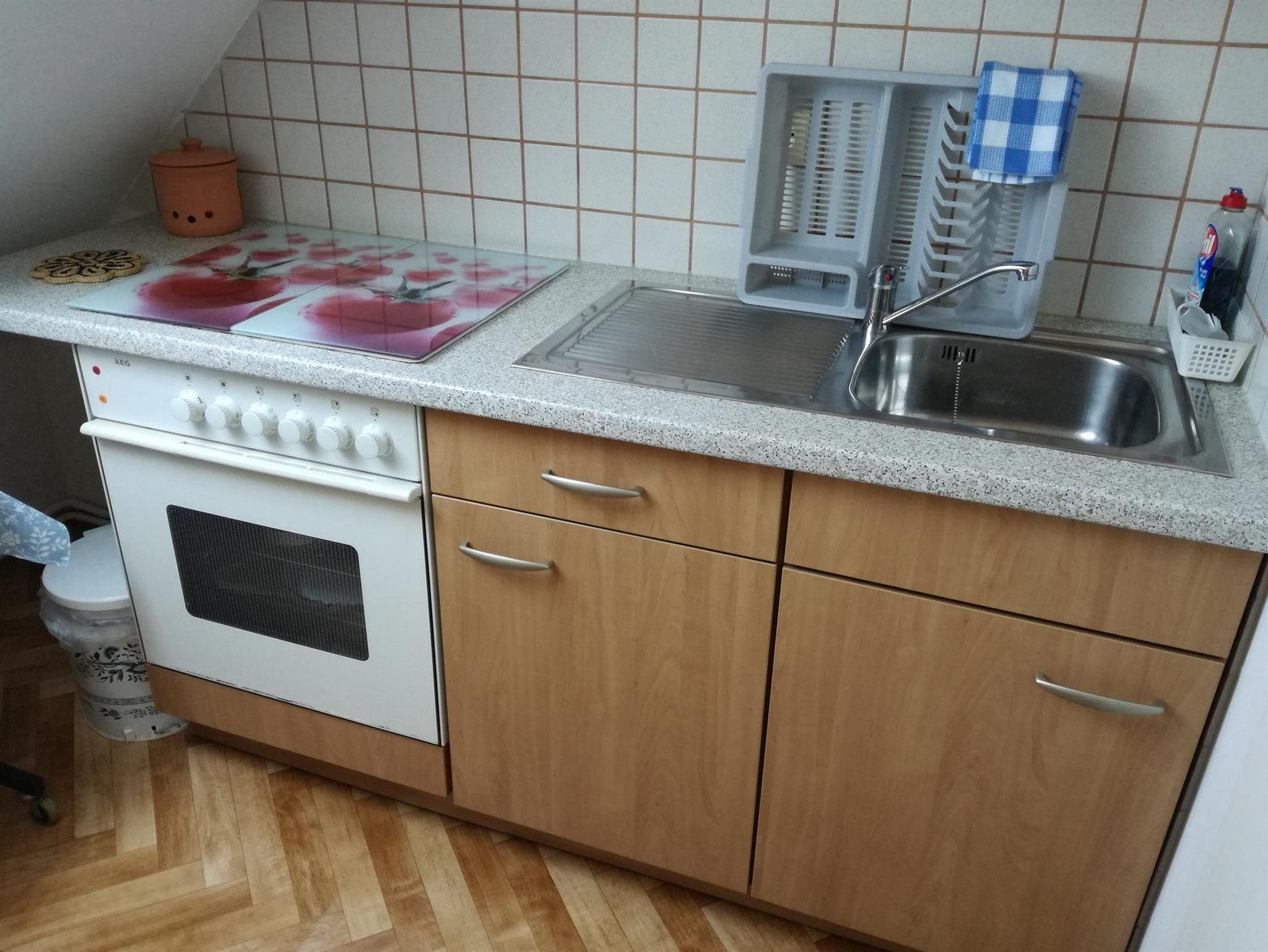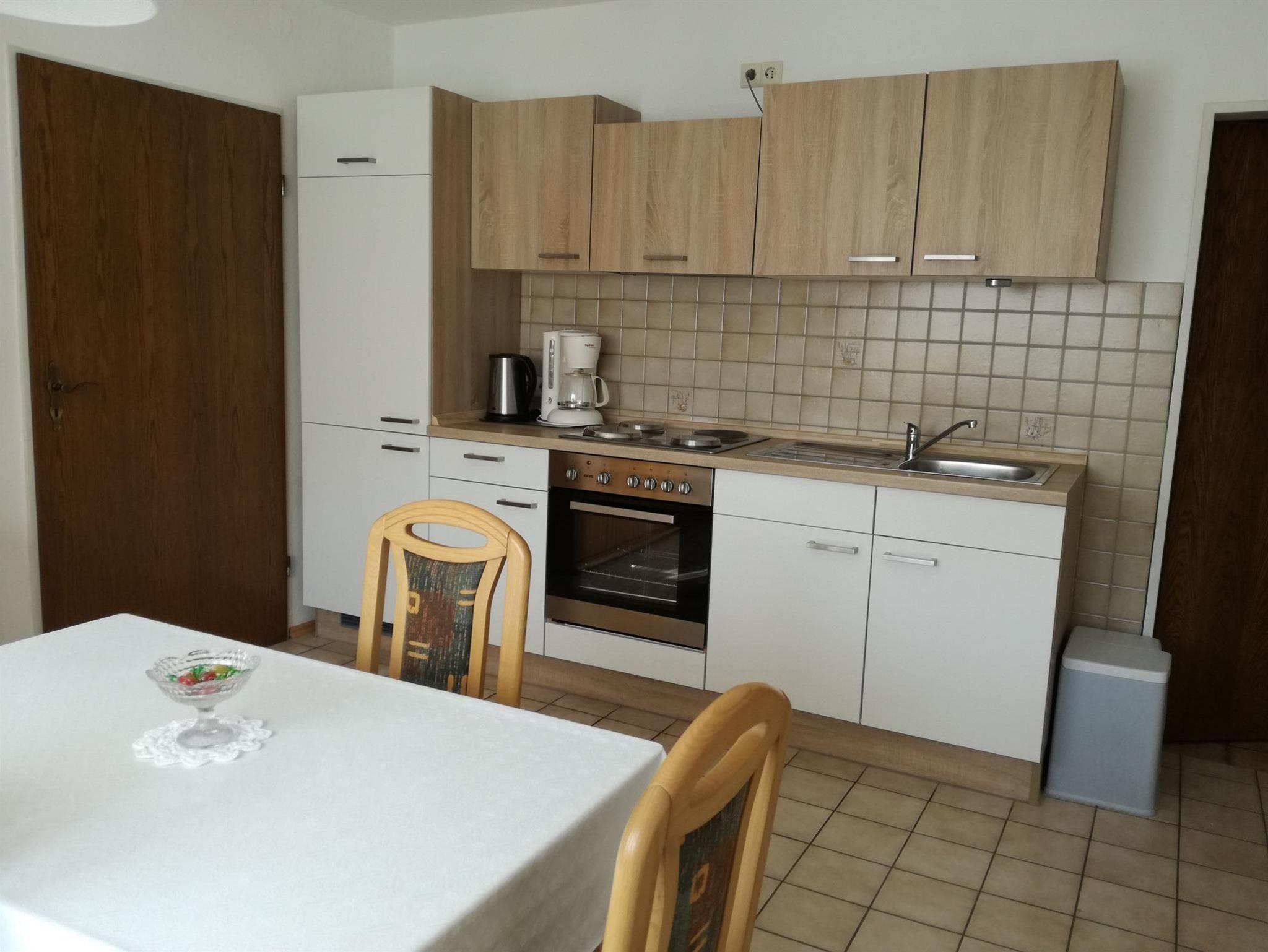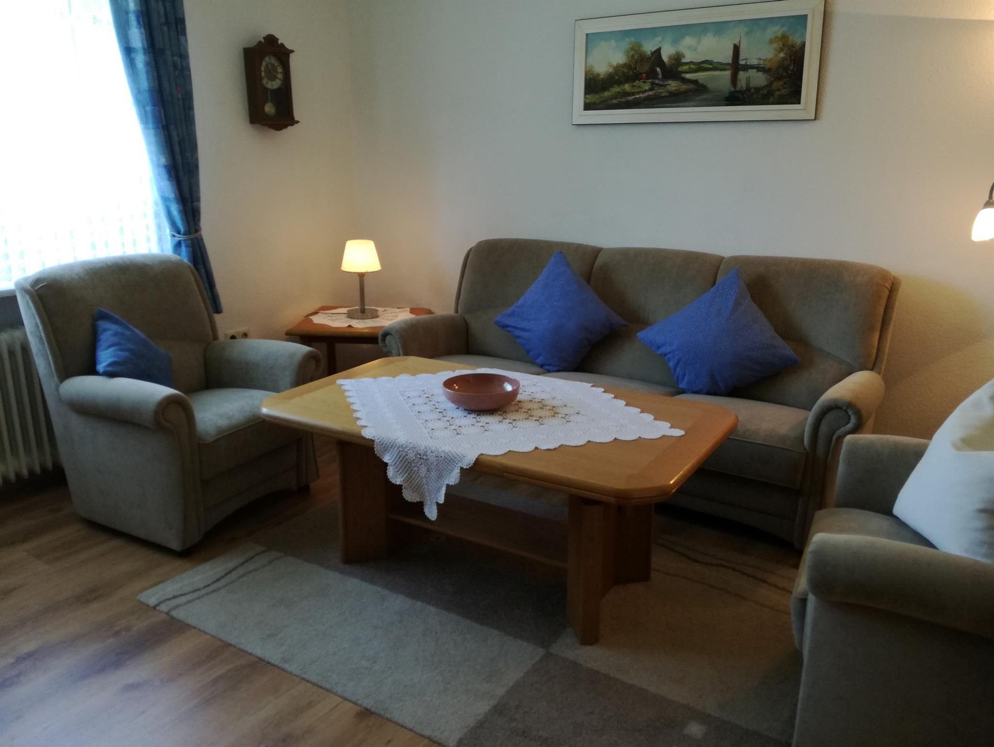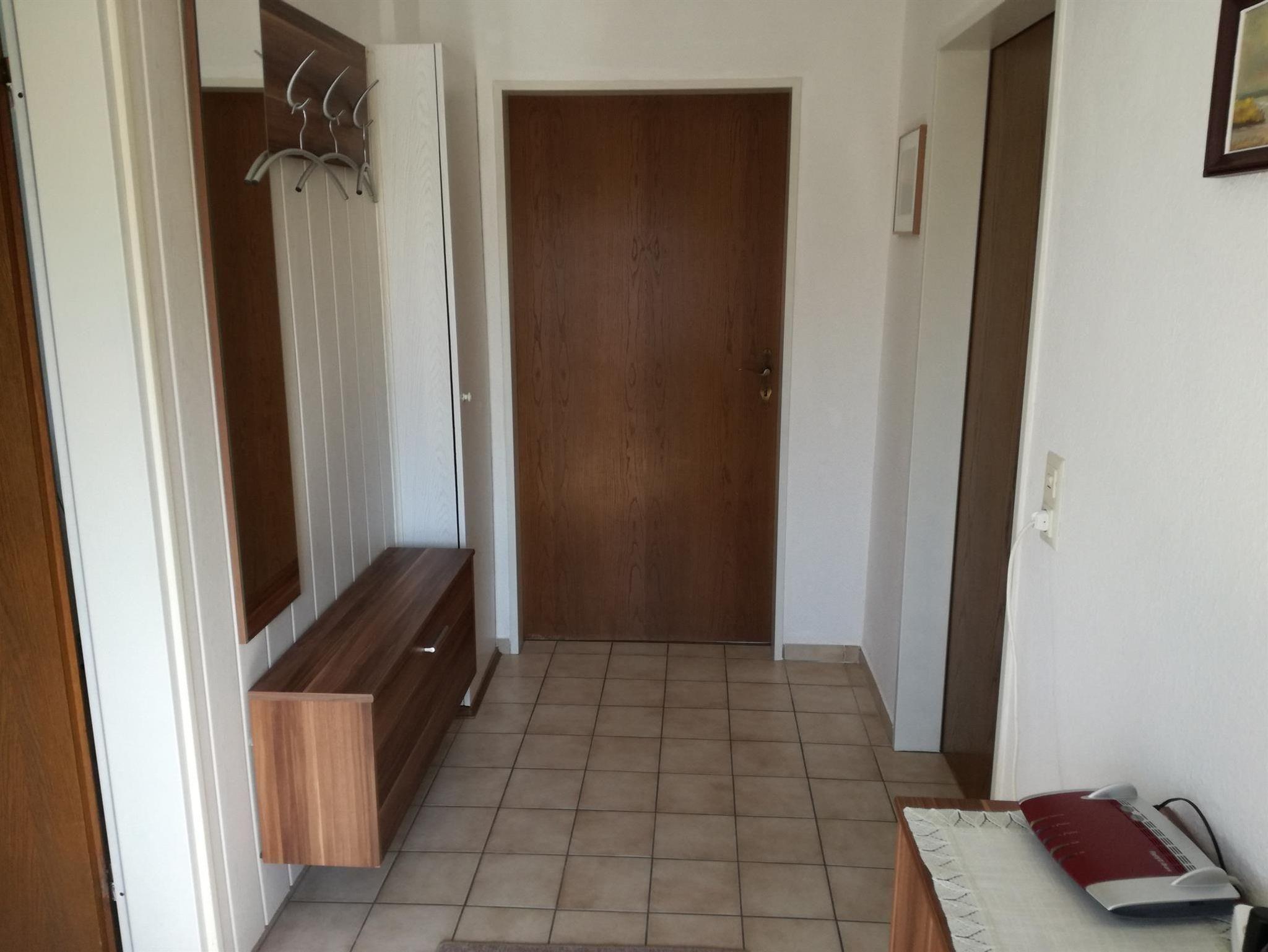 Die ca. 50 qm große Ferienwohnung in der 1. Etage hat ein Wohnzimmer mit Couchgarnitur, Sat TV, Radio und Schrank. Eine separate Küche mit Backofen, Ceranfeld, Kühlschrank, Kaffemaschine usw. finden Sie ebenfalls. Die Schlafzimmer sind aufgeteilt in einem Doppelzimmer mit kompletter Einrichtung und ein Einzelzimmer bei dem auf Wunsch ein Zustellbett (für Kleinkinder) mit rein gestellt werden kann. Im Badezimmer befindet sich eine Dusche. Handtücher werden kostenlos gestellt. Großer Garten mit Grillmöglichkeit zur Verfügung.