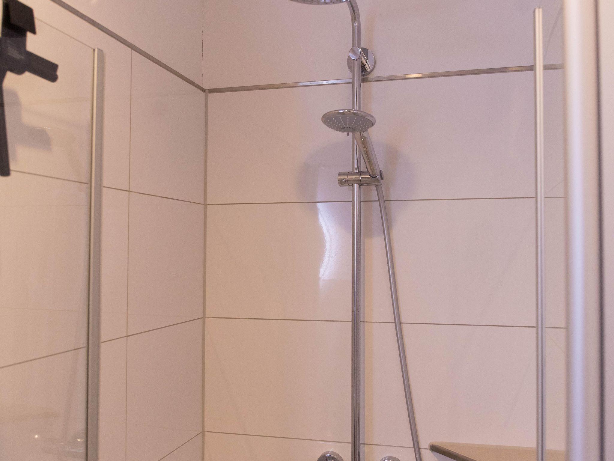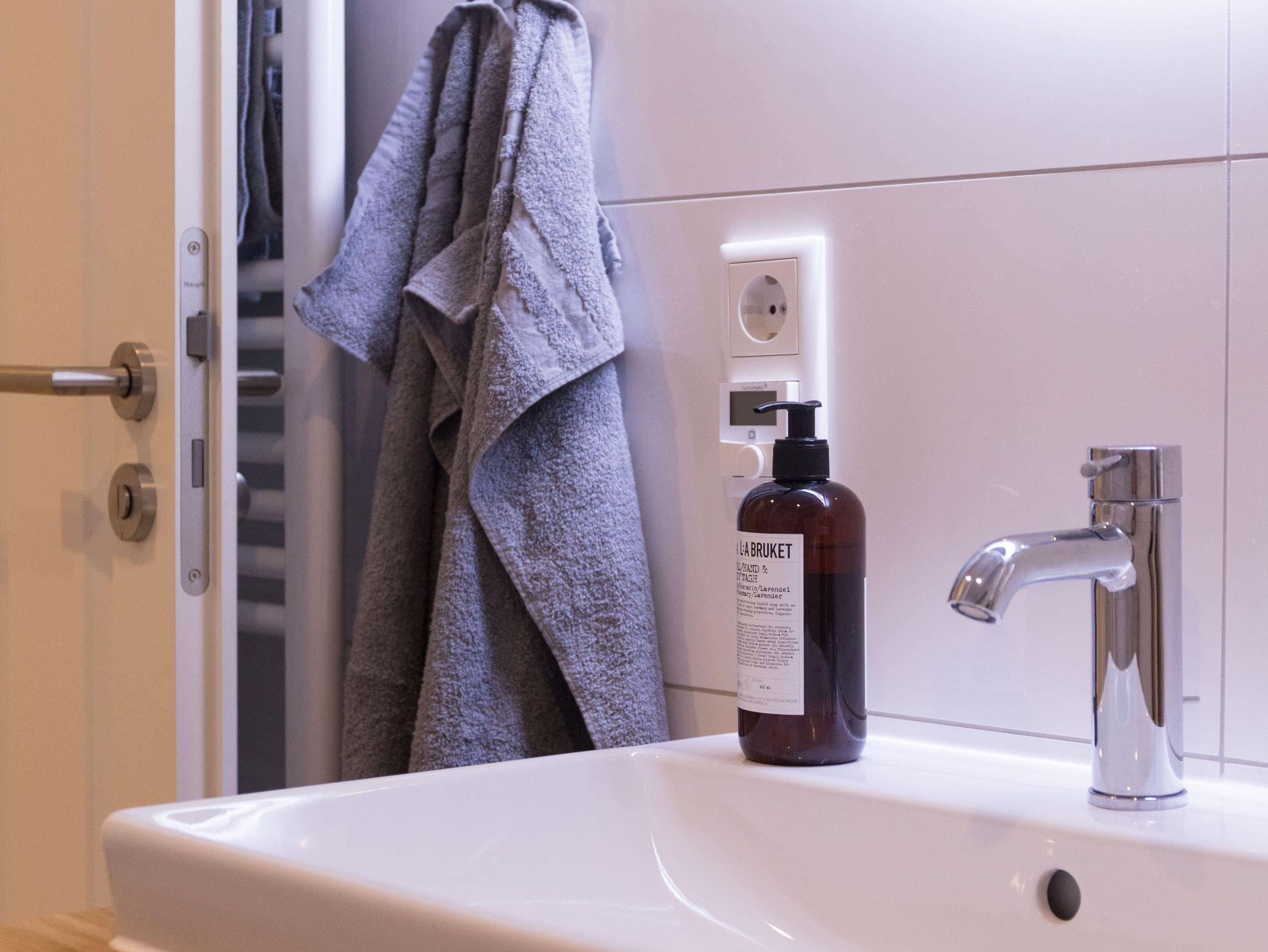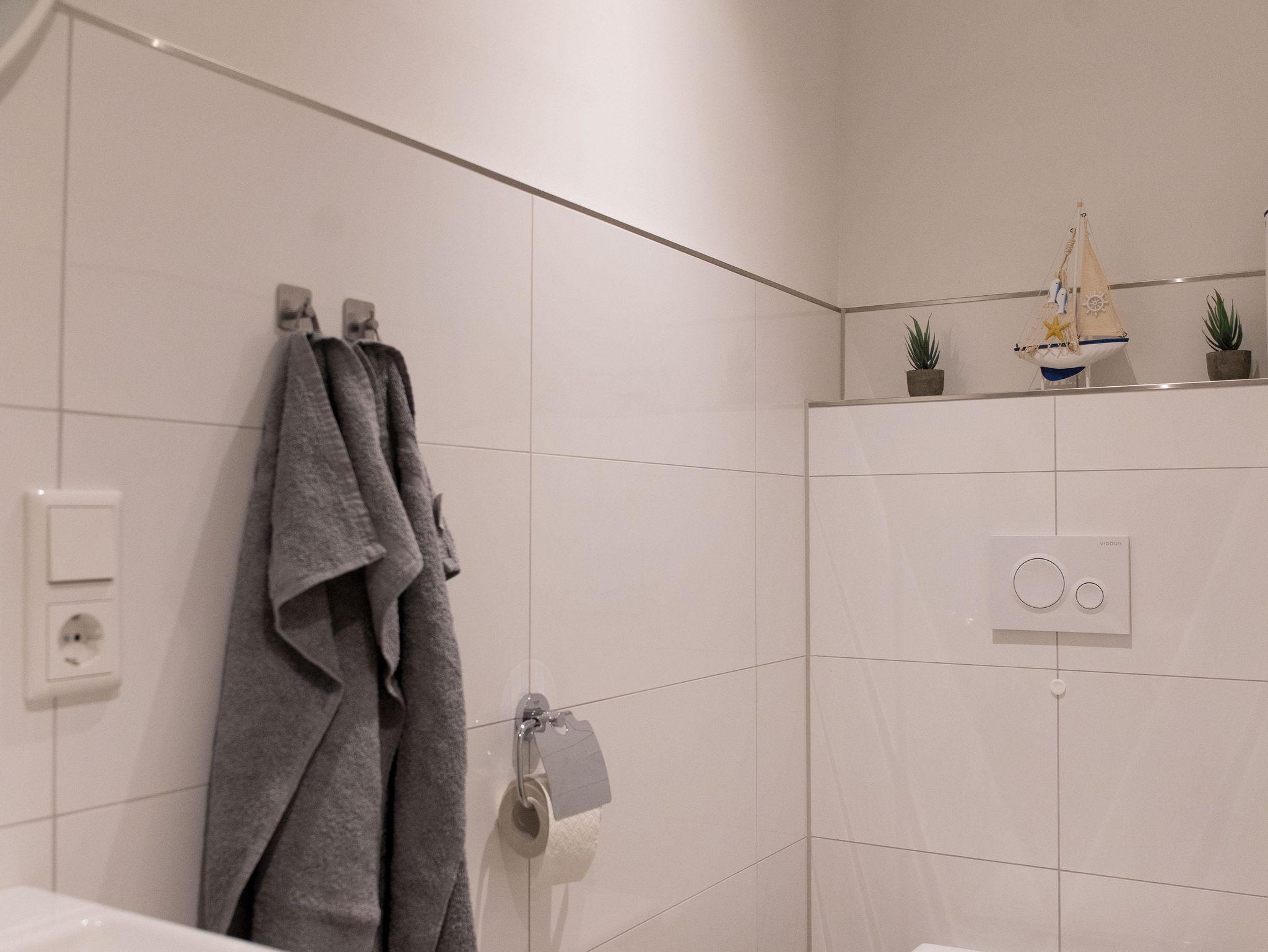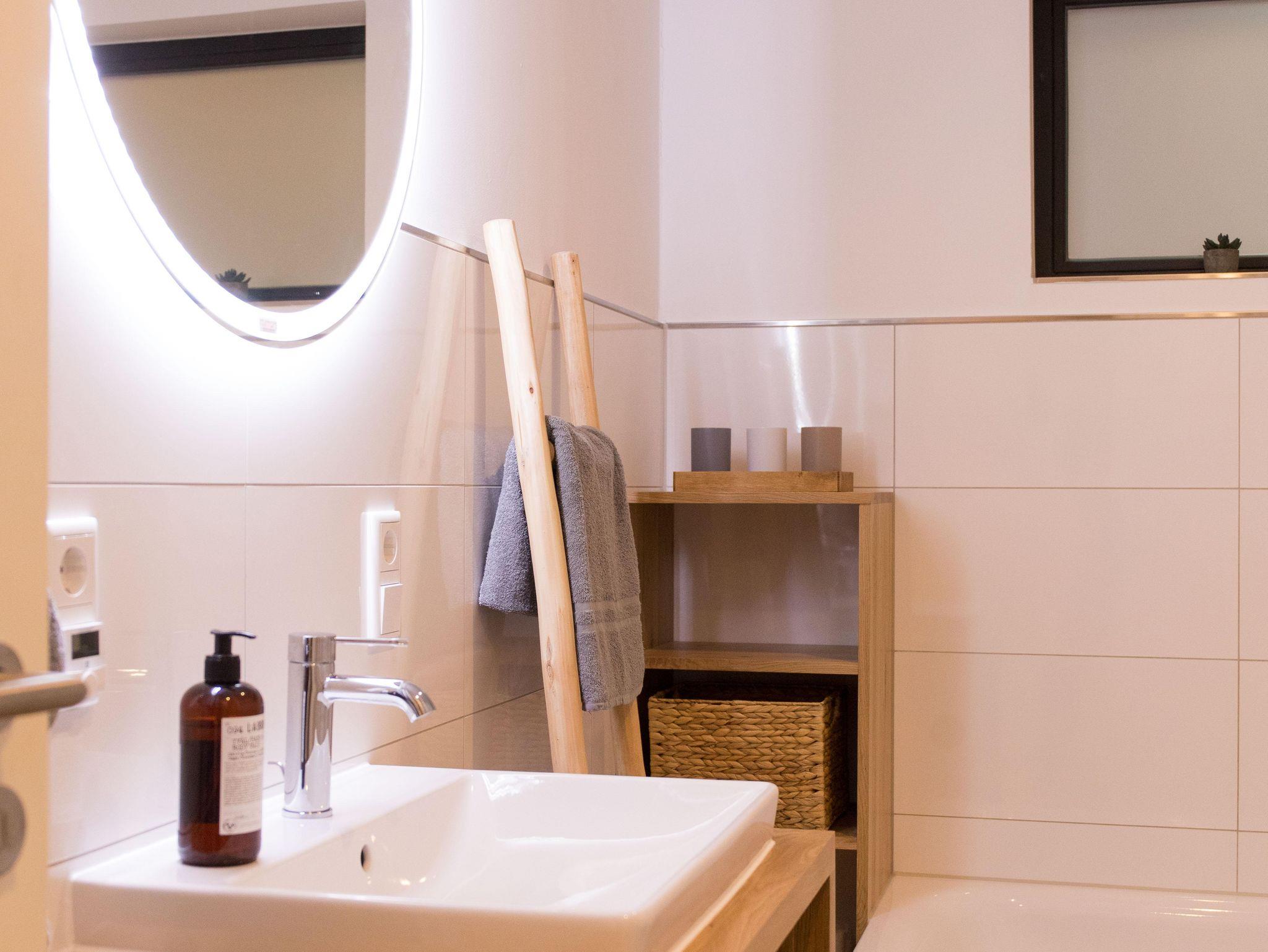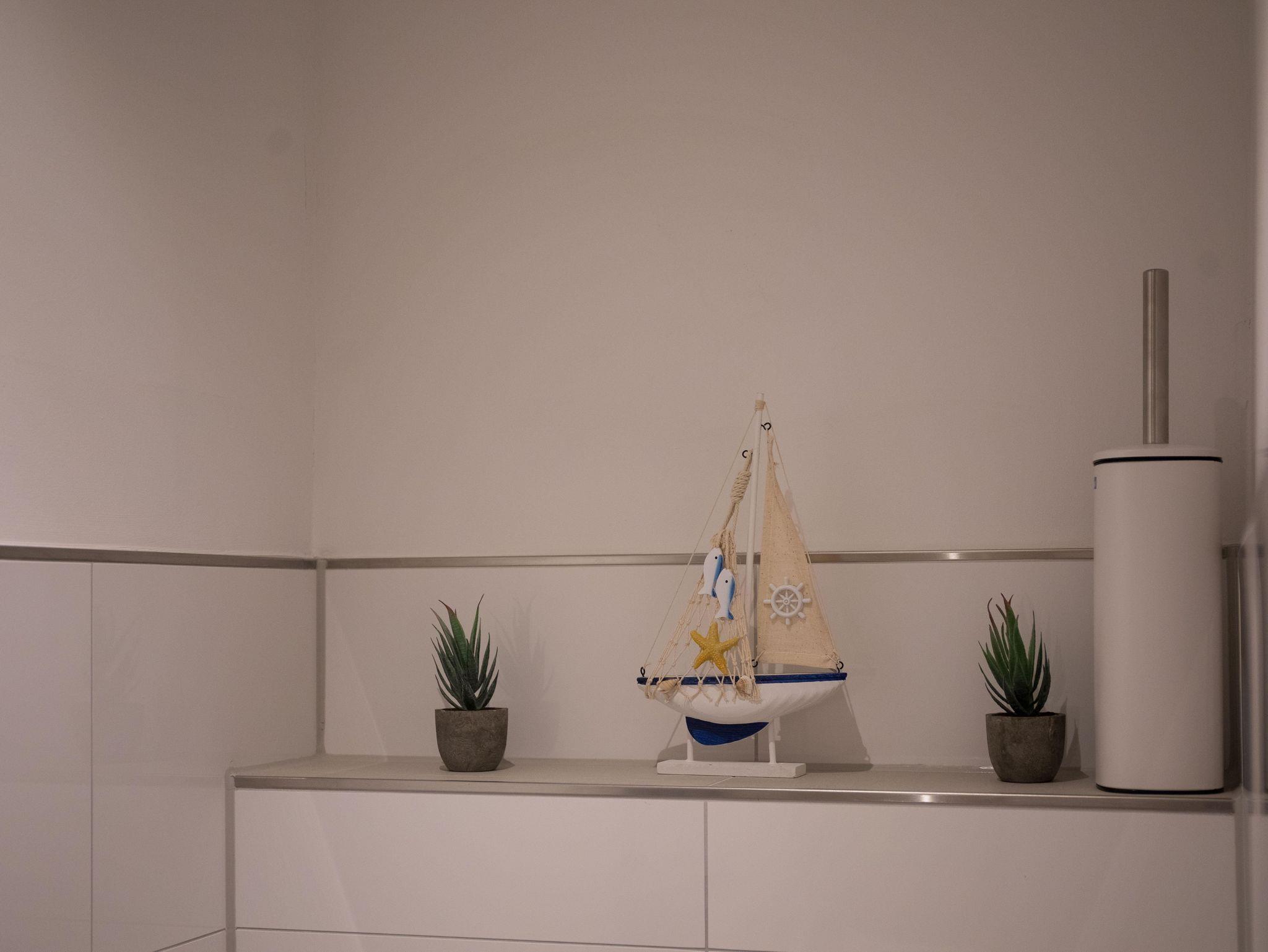 Die Wohnung verfügt über eine gut ausgestattete Küche im Eingangsbereich. Hier stehen Ihnen alle wesentlichen Küchenutensilien zur Verfügung, von der Induktionsherdplatte über eine moderne Espressomaschine bis hin zu einer Heißluftfritteuse.