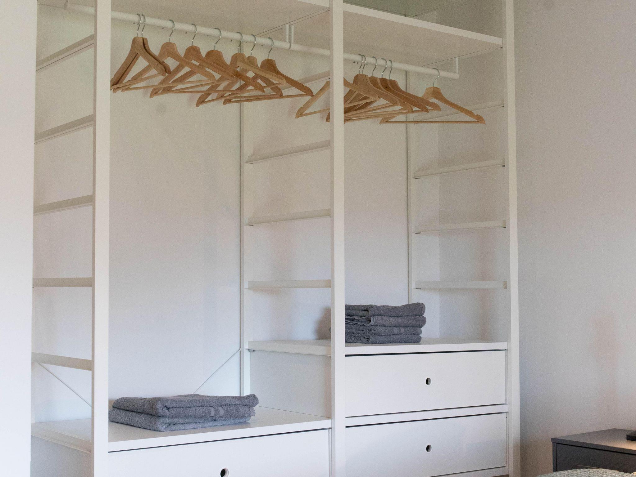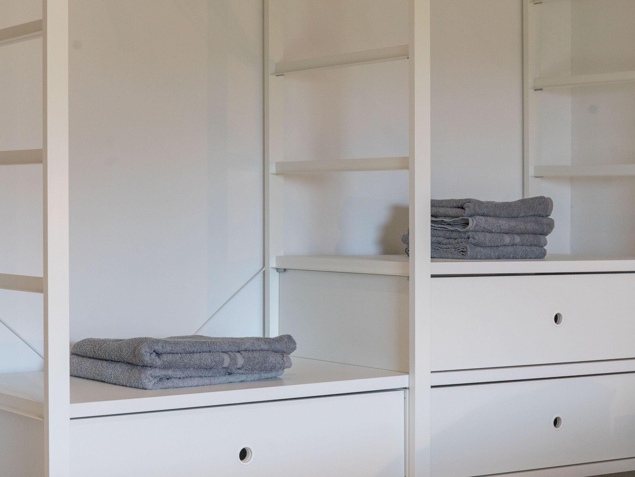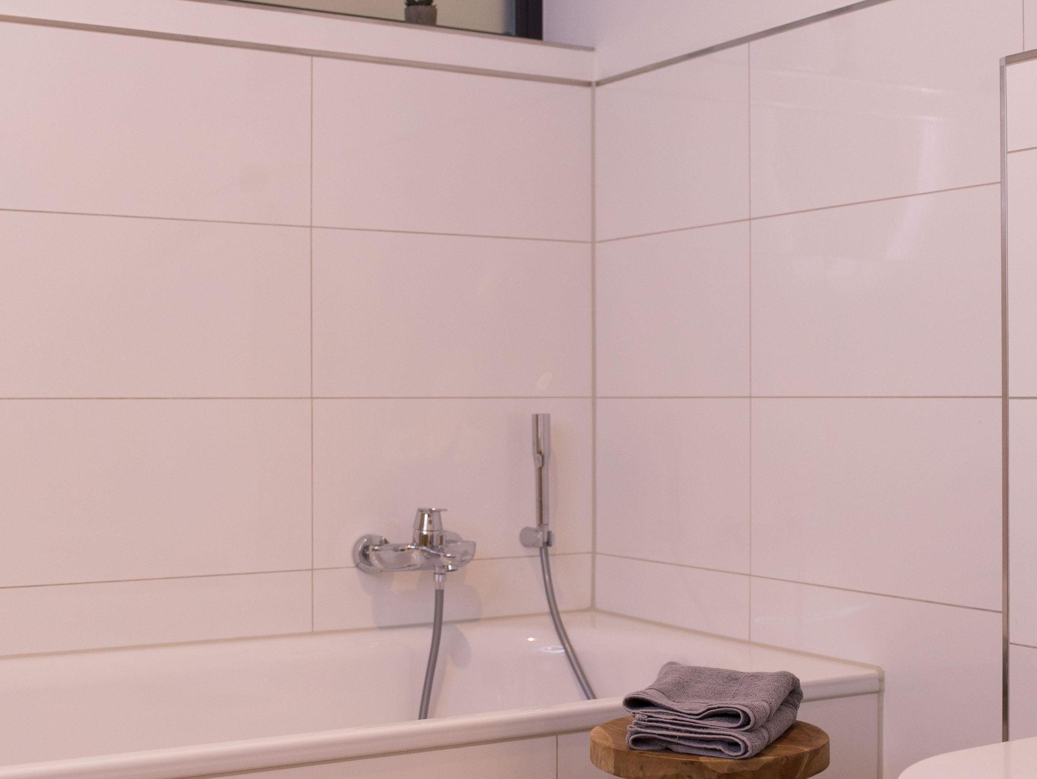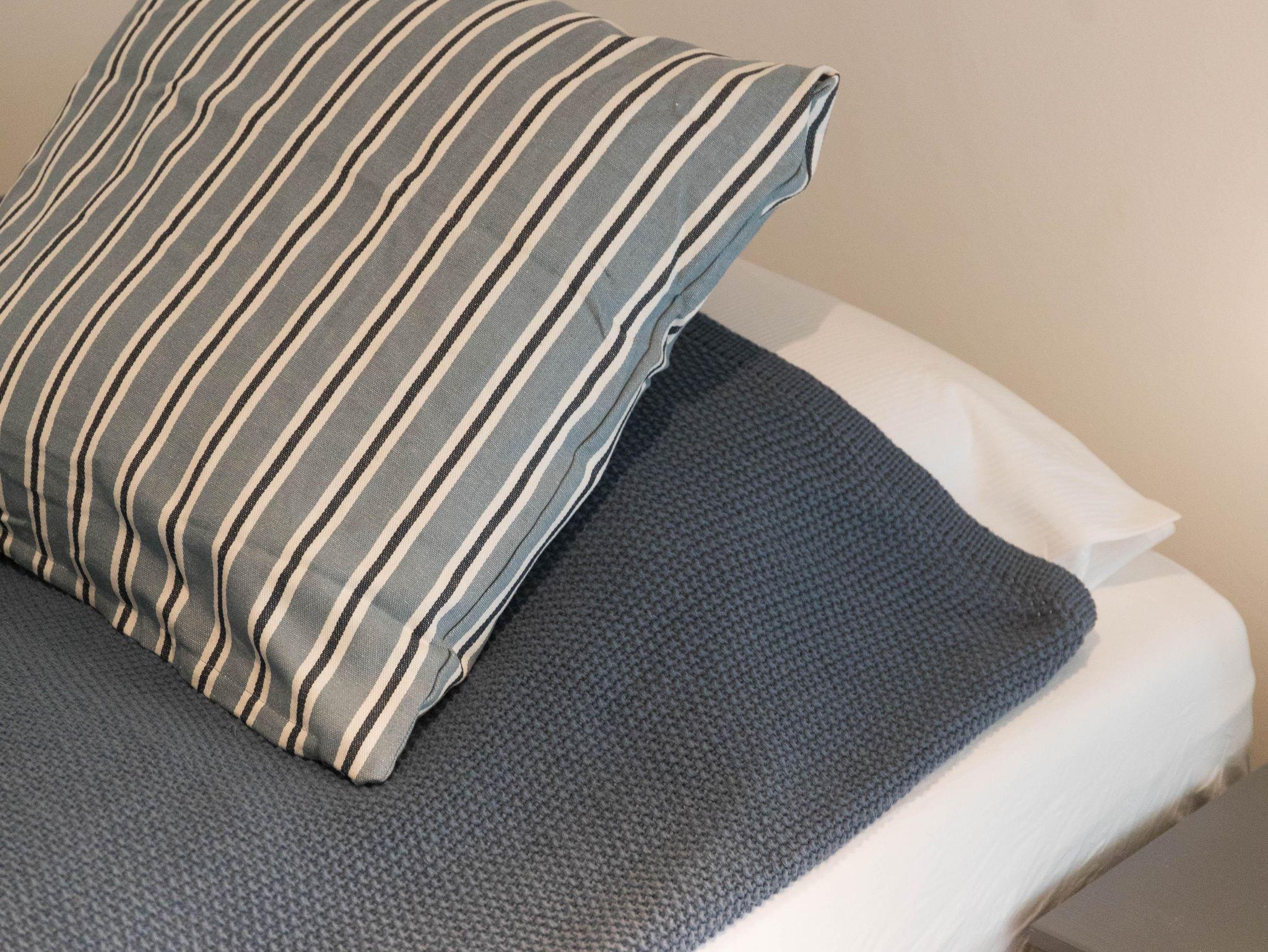 Das Obergeschoss verfügt über zwei geschmackvoll eingerichtete Schlafzimmer. Das Elternschlafzimmer verfügt über ein bequemes Doppelbett sowie einen ausreichenden Kleiderschrank. Im Kinderzimmer stehen bei Bedarf bis zu vier Schlafmöglichkeiten (inkl. zweier Stapelbetten) sowie eine Kommode zur Verfügung. Beide Schlafzimmer verfügen über Verdunklungsrollos. Das moderne Bad ist mit einer Badewanne, einer bodenebenen Dusche, WC und einer Handtuchheizung ausgestattet.