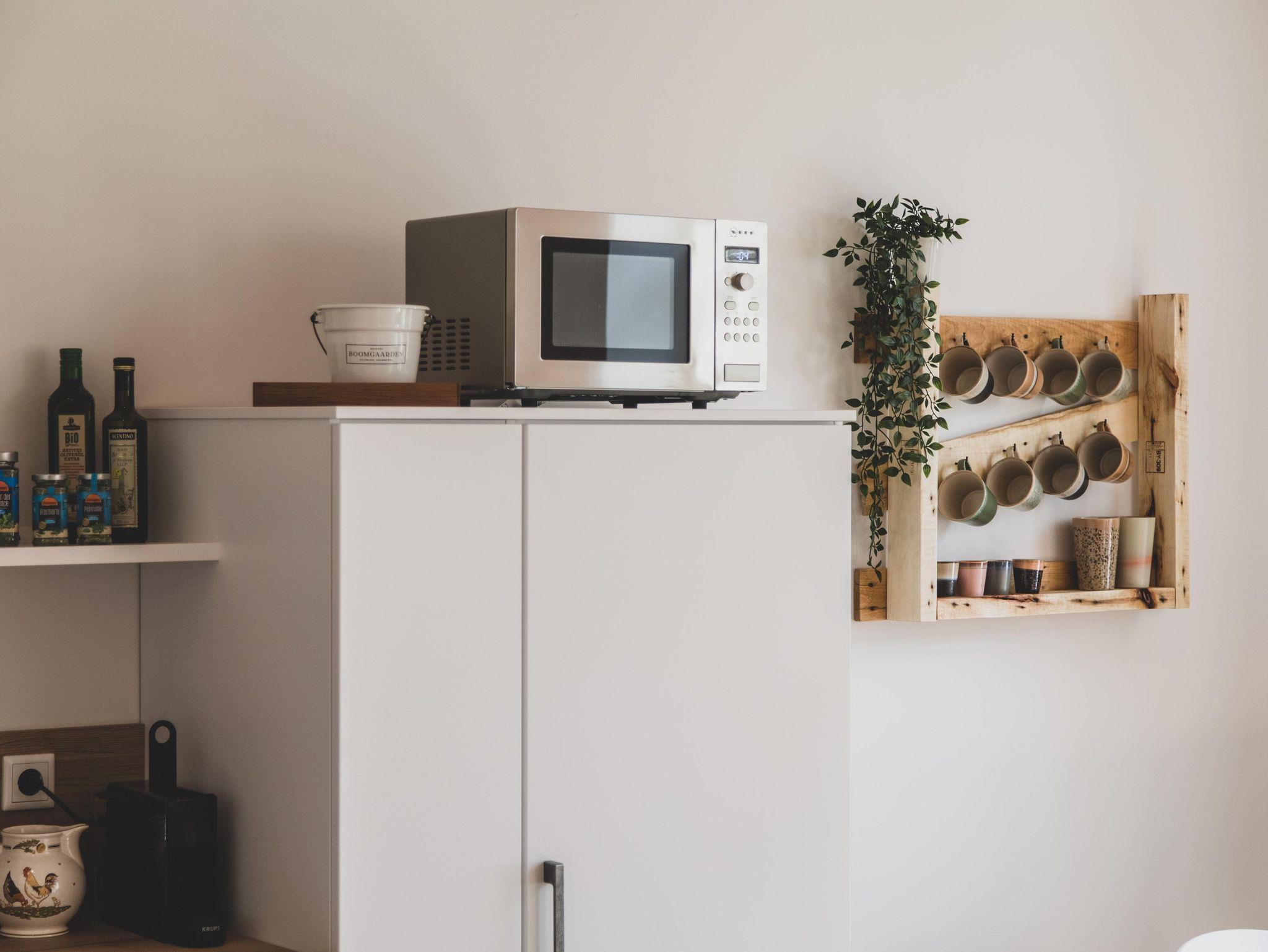 Der offene Wohnbereich gliedert sich in Küche, Ess- und gemütlicher Kuschelecke. Die voll ausgestattete Küche lässt für Hobby-Köche keine Wünsche offen. Für Liebhaber original Ostfriesen-Tee mit Kluntje oder Kaffee mit aufgeschäumter Milch.