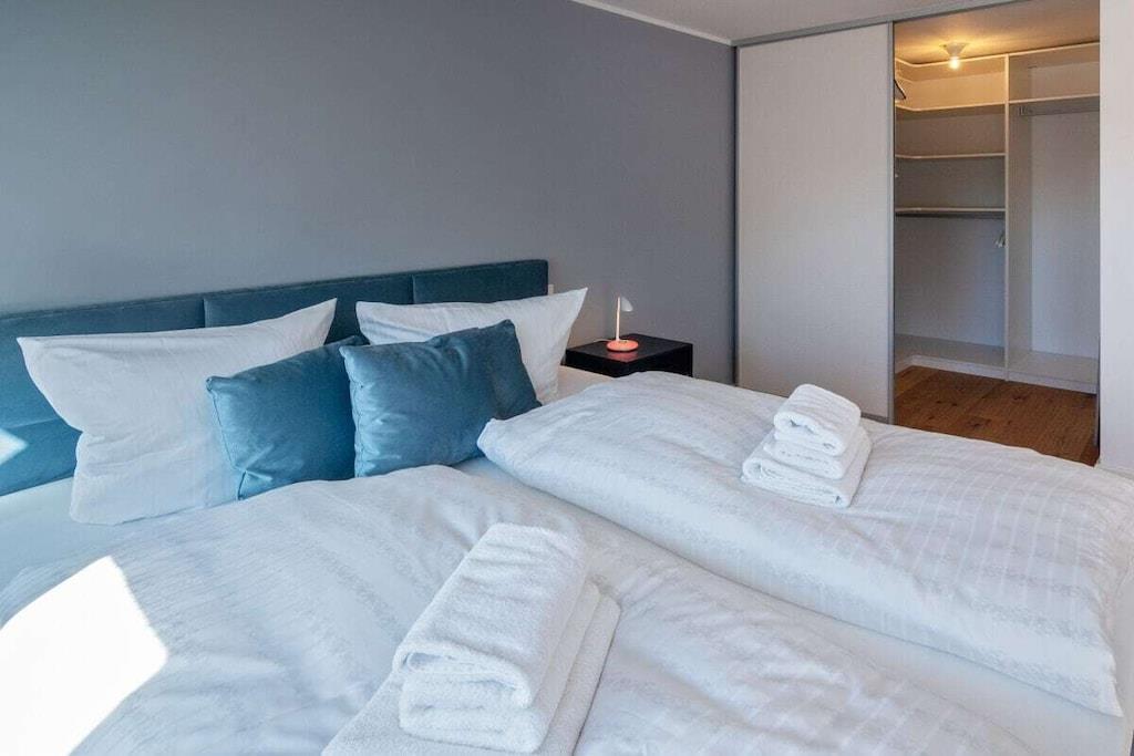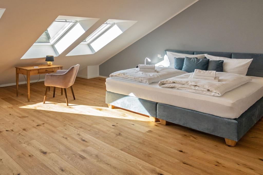 Denne smukke, lyse lejlighed blev færdiggjort i 2022 og udlejes nu til gæster for første gang. Den ligger på en Gulfhof-gård i Krummhörn-landsbyen Pilsum. Greetsiel ligger cirka 3 km væk og er let tilgængelig på cykel. Direkte fra parkeringspladsen fører en stor, lys gang til lejligheden på første sal. Den består af en meget rummelig opholds- og spisestue med køkken. Slap af i den komfortable sofa og det store fladskærms-tv. De store ovenlysvinduer sikrer masser af lys. Herfra har du også adgang til balkonen. Det smagfuldt indrettede soveværelse har et walk-in closet. Det moderne badeværelse med bruser har et stort, handicapvenligt brusebad, håndvask og toilet.