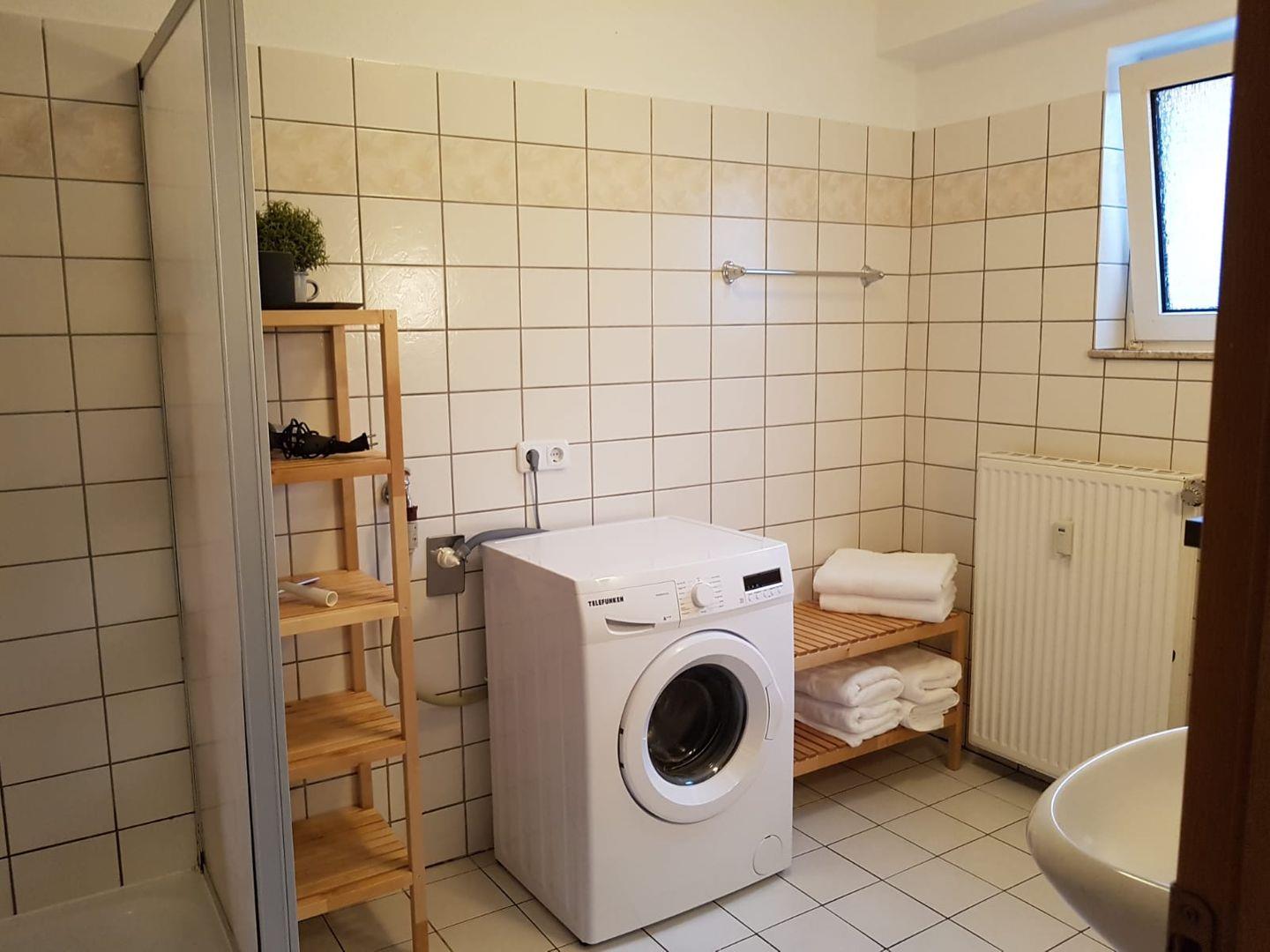 Ein gemütliches Sofa, ein Esstisch mit ausreichend Platz für gemeinsame Mahlzeiten und eine vollständig ausgestattete Küche laden zum Verweilen ein. In der Küche finden Sie alles, was Sie für die Zubereitung Ihrer Lieblingsgerichte benötigen: von einem Cerankochfeld über eine Mikrowelle und einen Kühlschrank mit Gefrierfach bis hin zu nützlichen Küchenutensilien. Nach einem erlebnisreichen Tag können Sie im angrenzenden Badezimmer mit Dusche und Badewanne entspannen, das mit einem Haartrockner und einem Kosmetikspiegel ausgestattet ist.