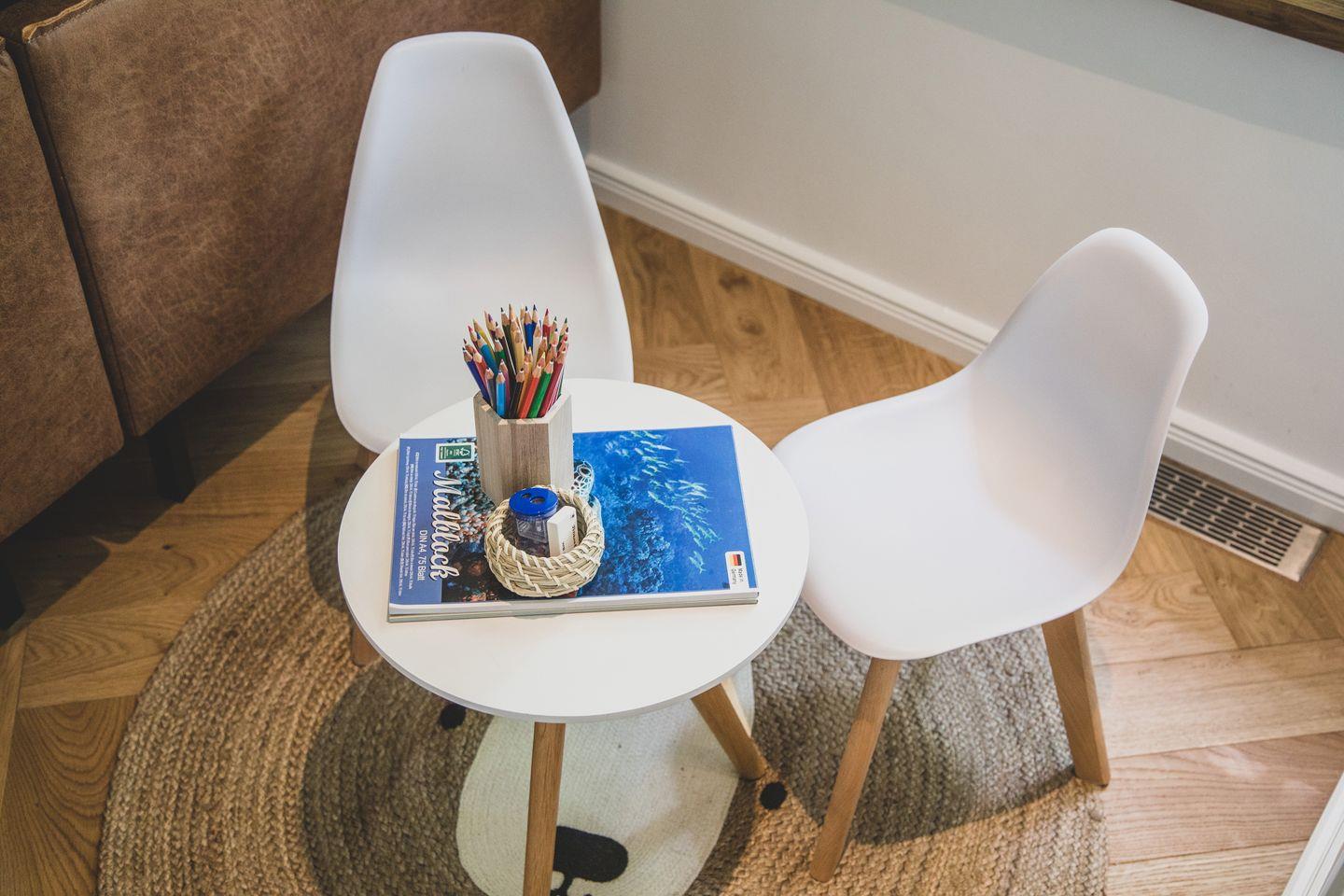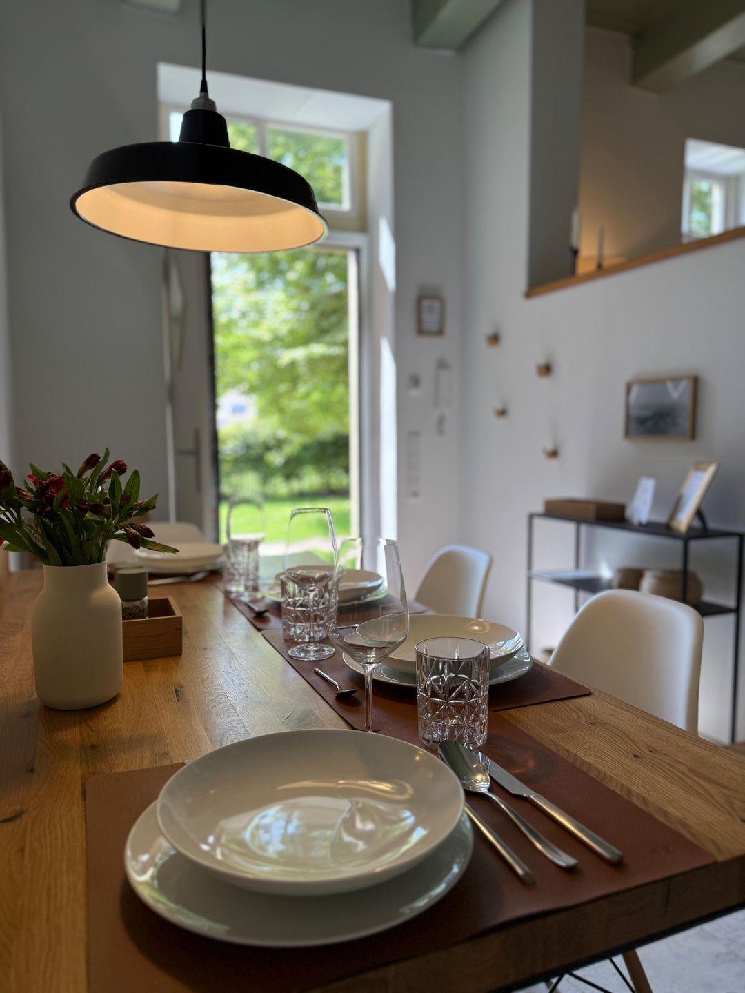 Ein besonderes Highlight der Unterkunft ist die große Terrasse, die einen atemberaubenden Blick in den Garten und die umliegende ländliche Landschaft ermöglicht. Genießen Sie hier die Sonnenstrahlen, während Sie mit Ihrer Familie grillen oder einfach nur entspannen. Für die kleinen Gäste gibt es zahlreiche Spielmöglichkeiten – ein Spielzimmer mit Kinderspielzeug, Tischtennisplatte und Kicker sorgt für Freude und Spaß. Auch Babybetten und Hochstühle sind für Ihre Kleinsten vorhanden.