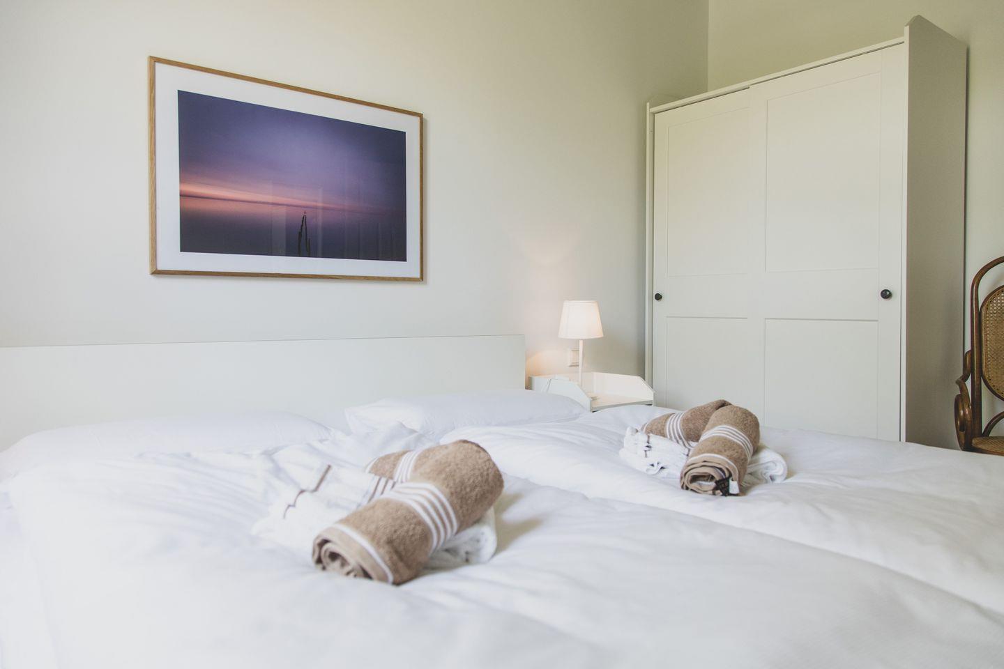 Die großzügige Wohnung erstreckt sich über 67 m² und bietet Platz für bis zu 4 Personen. Mit zwei behaglichen Schlafzimmern, die mit Parkett ausgestattet sind, finden Sie hier den erholsamen Schlaf, den Sie nach einem aufregenden Tag am Strand benötigen. Der moderne Wohnbereich mit Sofaecke und Essbereich lädt zum Verweilen ein und schafft eine behagliche Atmosphäre. Hier können Sie entspannen, Spiele spielen oder gemeinsame Mahlzeiten zubereiten.