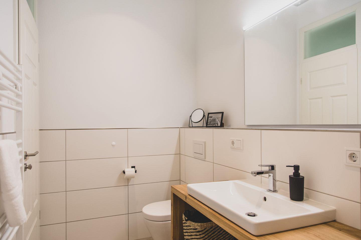 Die moderne Badausstattung bietet Ihnen eine bodengleiche Dusche, einen Kosmetikspiegel und einen Haartrockner. Frische Handtücher sowie Seife sind selbstverständlich Teil der Erstausstattung. Zudem verfügt die Ferienwohnung über WLAN, sodass Sie auch in Ihrem Urlaub mit der Welt verbunden bleiben können.
