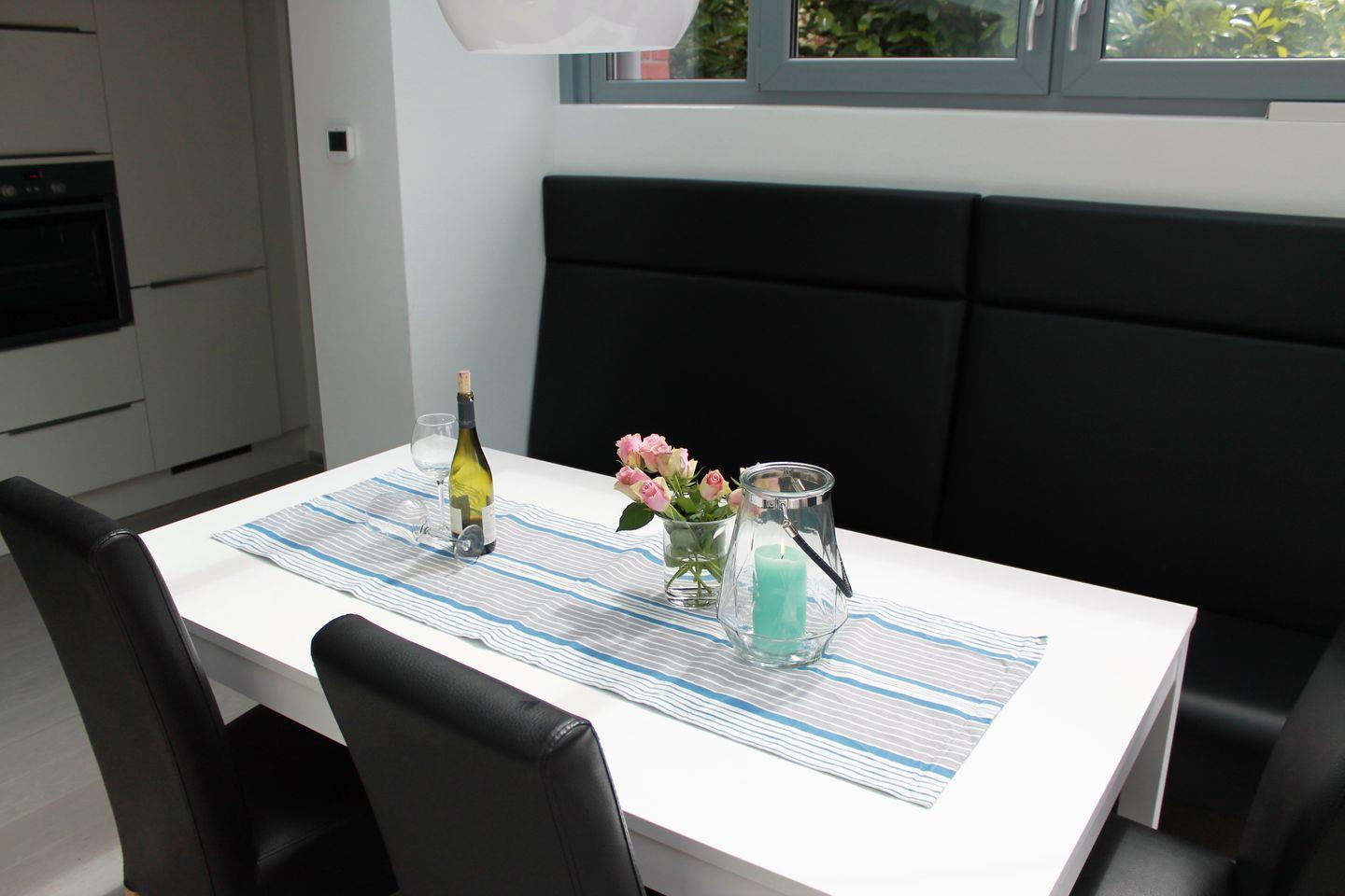 Das im modernen Landhausstil eingerichtete Haus verfügt über ein Elternschlafzimmer, ein Kinderzimmer mit einem 1.40 Meter breiten Bett und einem Rennauto-Bett für kleine Autofans. Im großzügigen, offenen Wohnbereich finden Sie einen Holzpellet-Kaminofen, eine komfortable Sofalandschaft, Großbildfernseher, Blu-ray-Player und kostenloses WLAN (Für uneingeschränkte Verfügbarkeit und ausreichende Geschwindigkeit übernehmen wir keine Gewähr). Die große Wohnküche im außergewöhnlichen Wintergarten mit Zugang zur Terrasse ist komplett ausgestattet mit Induktions-Kochfeld, Geschirrspüler, Umluftherd auf Stehhöhe und allen wichtigen Haushaltsgeräten.