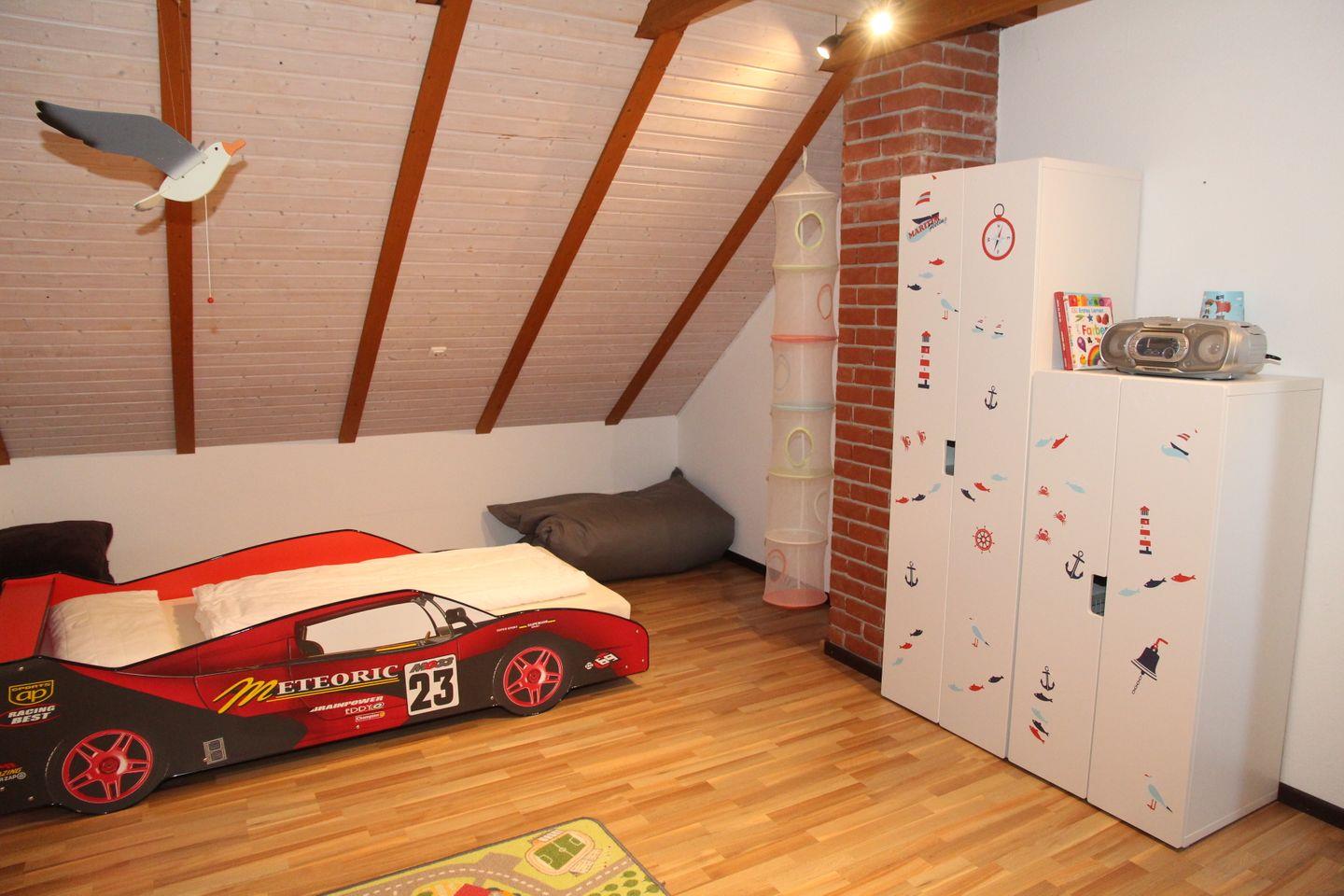 Das im modernen Landhausstil eingerichtete Haus verfügt über ein Elternschlafzimmer, ein Kinderzimmer mit einem 1.40 Meter breiten Bett und einem Rennauto-Bett für kleine Autofans. Im großzügigen, offenen Wohnbereich finden Sie einen Holzpellet-Kaminofen, eine komfortable Sofalandschaft, Großbildfernseher, Blu-ray-Player und kostenloses WLAN.