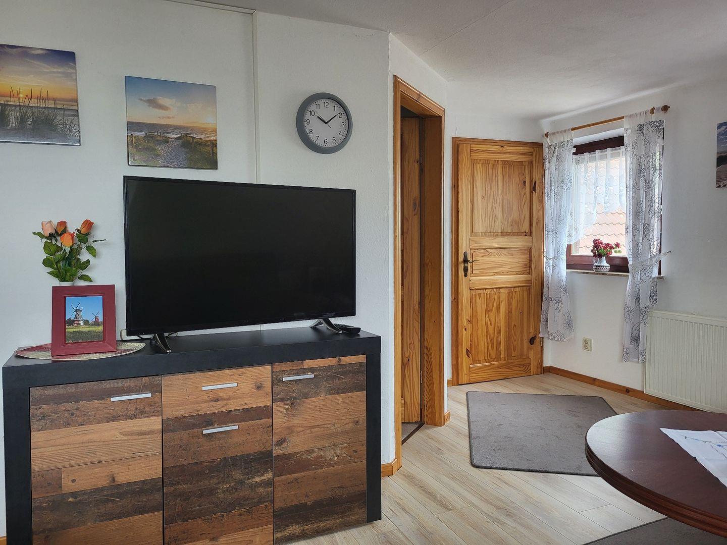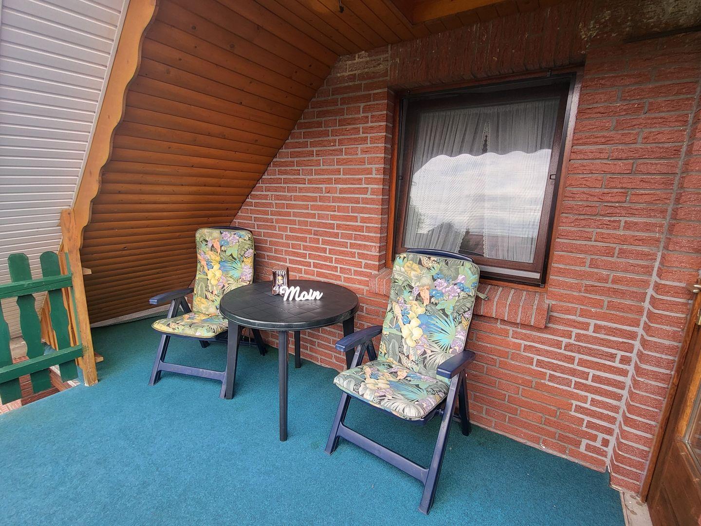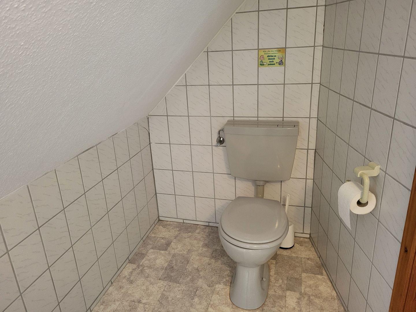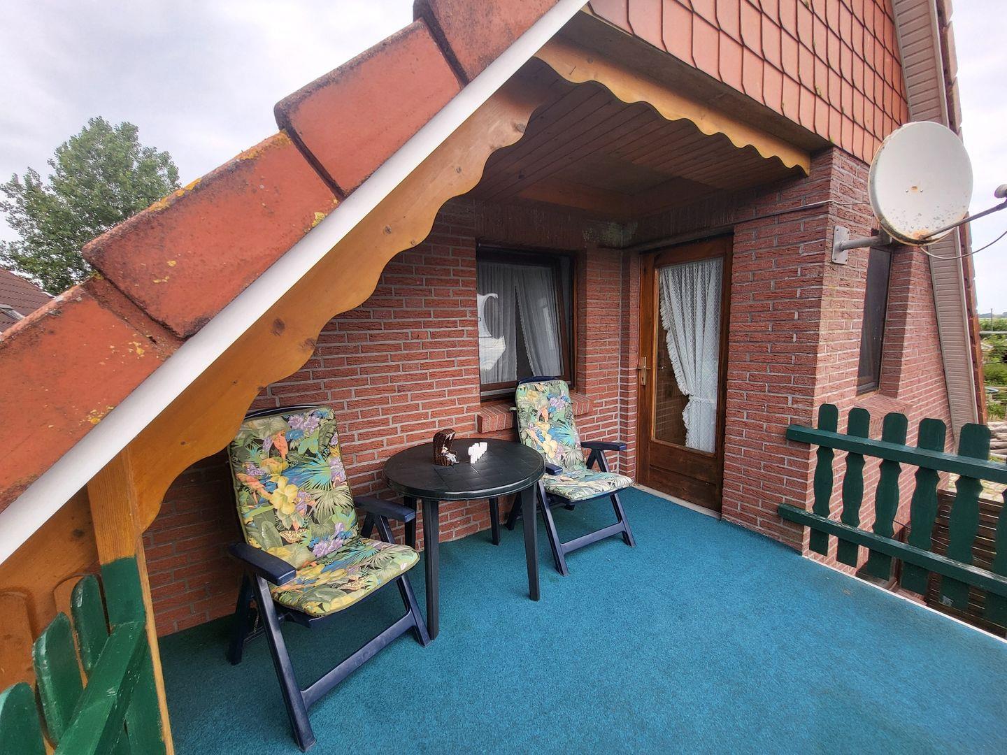 Die Oberwohnung erreichen Sie über einen separaten Eingang. Kommen Sie herein! Die bequeme Couch mit Sessel im Wohnbereich lädt zu gemütlichen Abenden ein. Genießen Sie einen spannenden Film bei einem Gläschen Wein. Nebenan finden Sie eine kleine Essecke mit Eckbank. Hier kann gegessen oder bei einer Tasse Ostfriesentee geklönt werden.