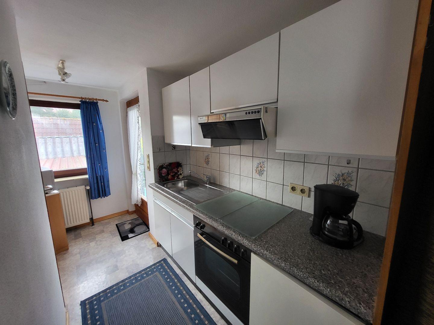 Vom Wohn-/Essbereich erreichen Sie die beiden Schlafzimmer, eines mit einem Doppelbett und eines mit 2 Einzelbetten. Nach hinten raus finden Sie die Küchenzeile. Eine Mikrowelle ist vorhanden. Das Bad mit Tageslicht verfügt über eine Dusche und ein WC. Das Highlight der Wohnung ist der geräumige Balkon. Genießen Sie hier die Ruhe und Entspannung. Der Blick in den Garten der Eigentümer ist wunderschön. In der Ferne entdecken Sie auch die Visquarder Kirche und den Dorfkern. WLAN ist verfügbar. Ein Parkplatz befindet sich vor dem Haus. E-Bikes können untergestellt werden. Haustiere sind nicht gestattet. In der Wohnung ist das Rauchen nicht erlaubt.