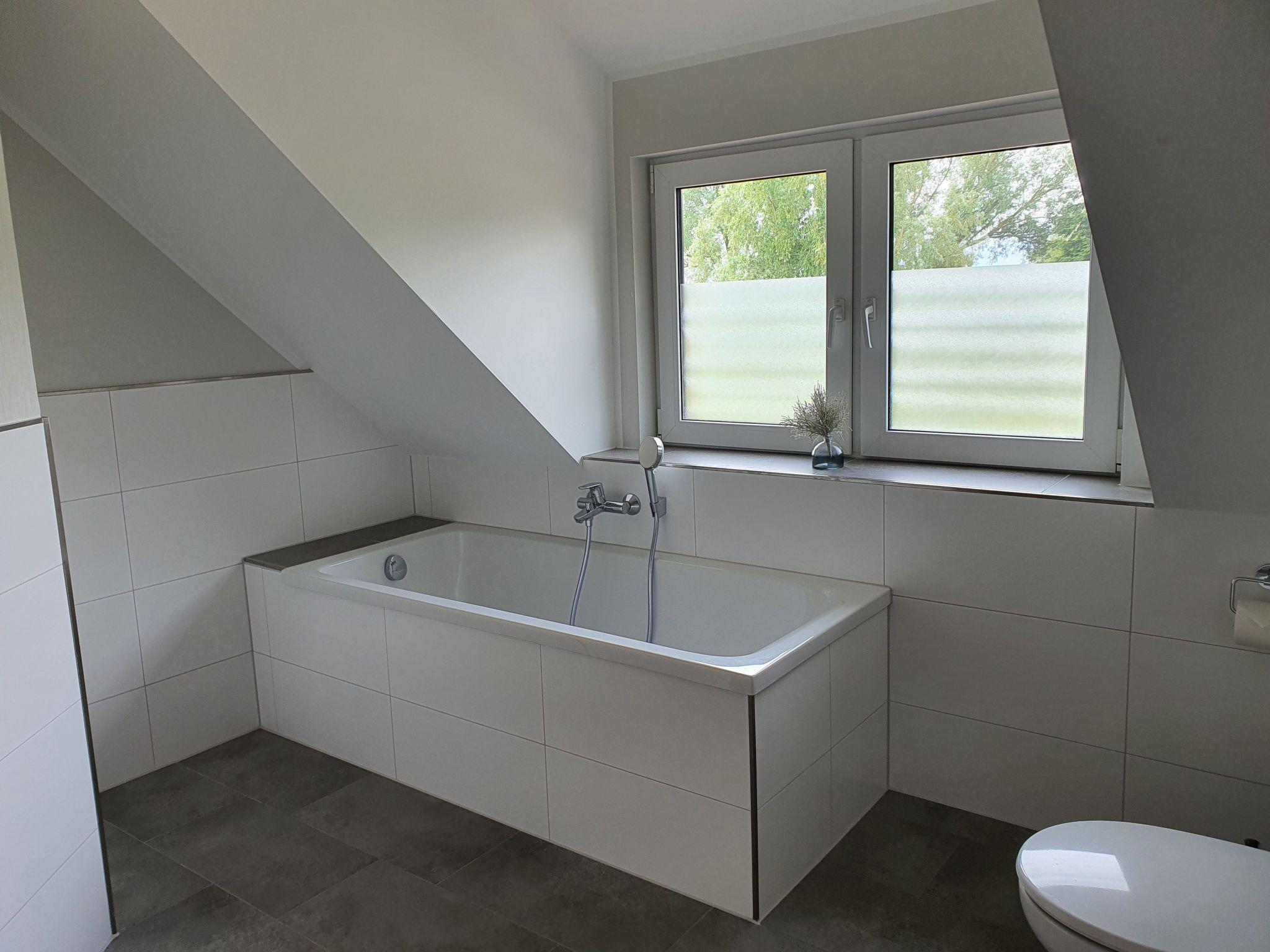 Your holiday flat on the first floor has a living space of approx. 100 m² and is ideal for accommodating four adults (and 2 small children). A large, combined living and dining area with a cosy sofa corner awaits you on the upper floor. There is also a large kitchen and a bathroom on this floor. On the top floor are the two bedrooms, each with a large box-spring bed 1.80 m wide (with full-length mattress) and a beautiful shower room with natural light.