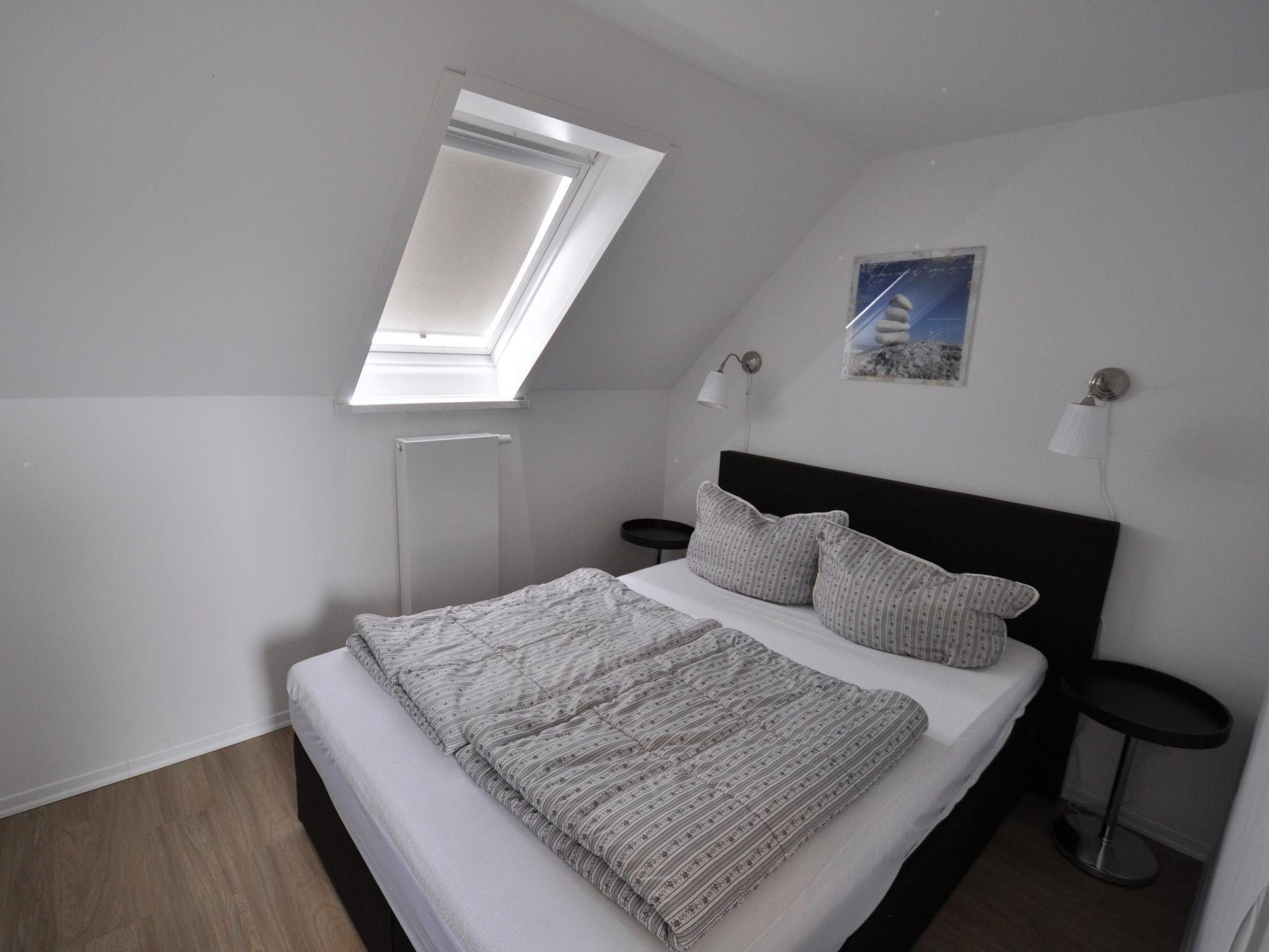 The holiday flat is located on the ground and first floor. It has a living space of approx. 105 m² and is ideal for accommodating 4 adults with 2 children (up to 8 years). On the ground floor you will find a large, combined living and kitchen area with a cosy sofa corner, a large dining table with modern chairs and enough space for six people as well as a fully equipped kitchen. One of the three bedrooms is also located on the ground floor. It has a 160 cm wide box-spring bed with separate mattress and a wardrobe. There are two further bedrooms on the upper floor. The first room has another 160 cm wide box-spring bed with a separate mattress. The other bedroom also has a box-spring bed, but it is 140 cm wide and has a full-length mattress. Two well-designed bathrooms, one on the ground floor and one on the upper floor, are also part of the flat. They are equipped with a shower and WC and have natural light. A baby cot and high chair are available free of charge. Extra beds are possible. All rooms can be heated.