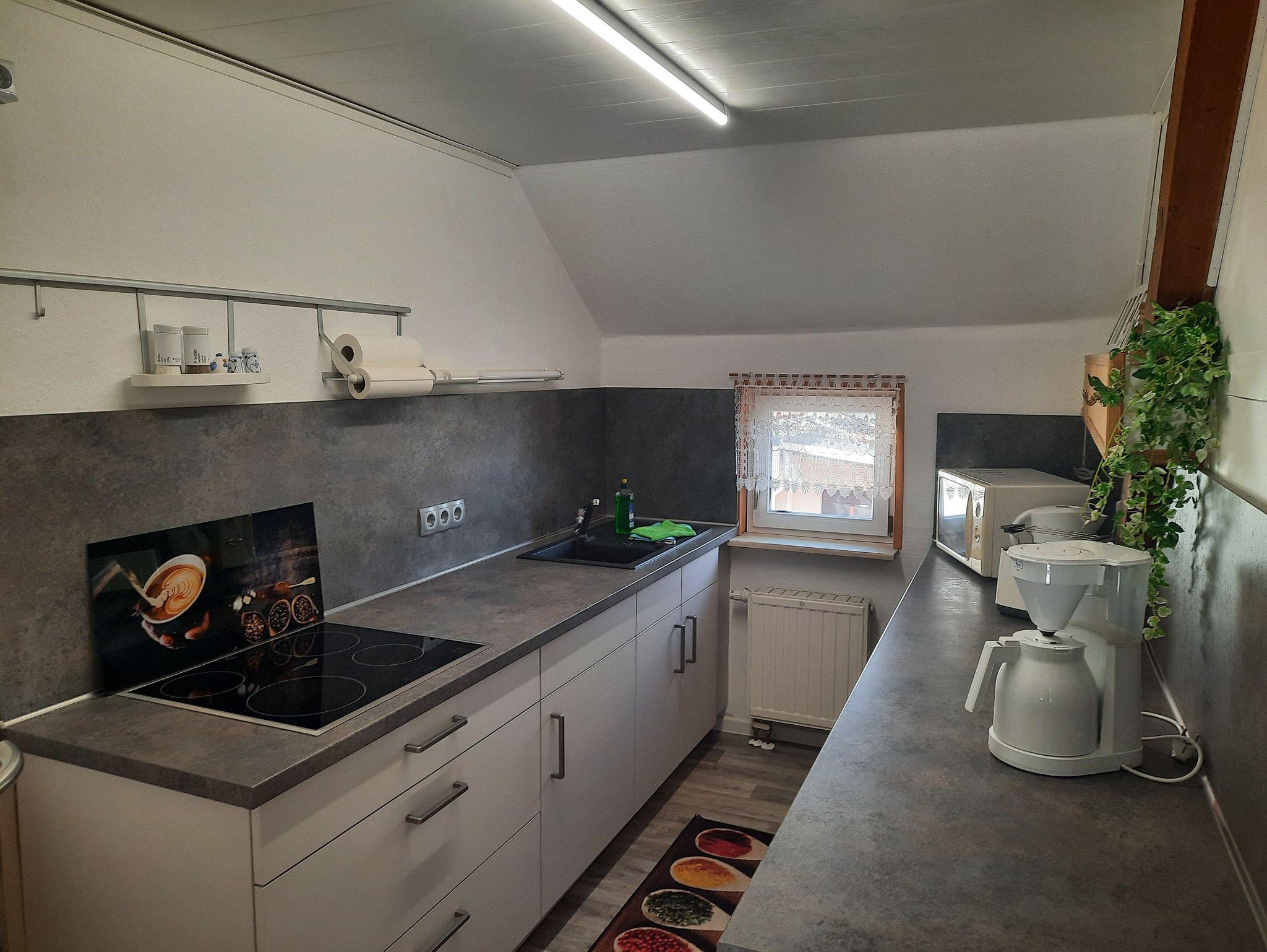Die separate Küche ist mit einem Kühlschrank inklusive Gefrierfach, einem Cerankochfeld, einer Mikrowelle, einer Kaffeemaschine, einem Wasserkocher und einem Toaster ausgestattet ? so können Sie sich jederzeit selbst versorgen und Ihre Mahlzeiten zubereiten.