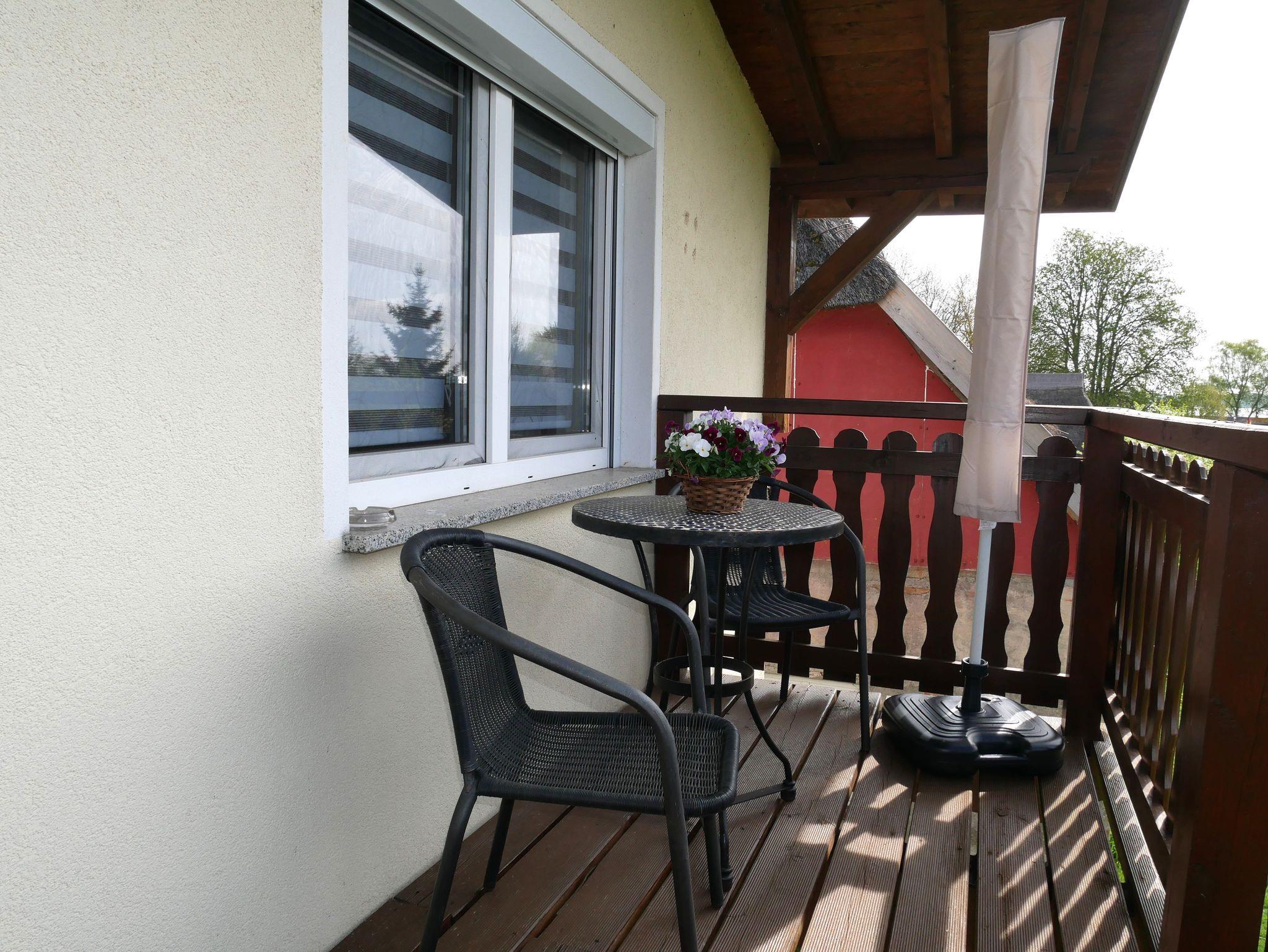 Der Balkon lädt zum Verweilen ein und bietet eine schöne Sitzmöglichkeit, um die frische Luft zu genießen. Vom Balkon aus haben Sie einen Seeblick auf das Krumminer Wiek, der den Aufenthalt noch besonderer macht.