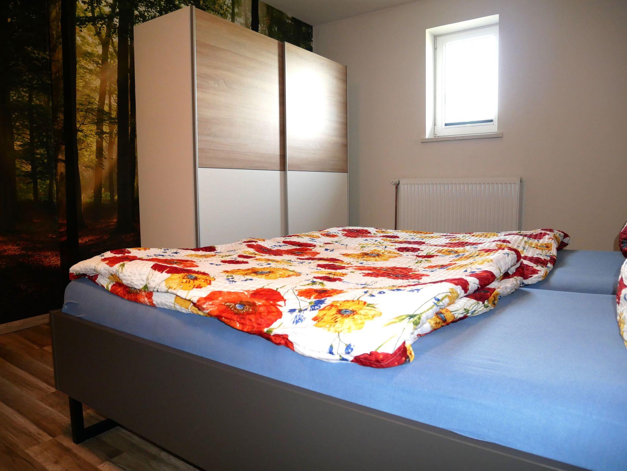Es gibt zwei Schlafzimmer: eines mit einem gemütlichen Doppelbett und das andere mit zwei Einzelbetten und jeweils einem Kleiderschrank. Das Badezimmer verfügt über eine Dusche, WC und Badewanne ? perfekt, um sich nach einem erlebnisreichen Tag zu entspannen.
