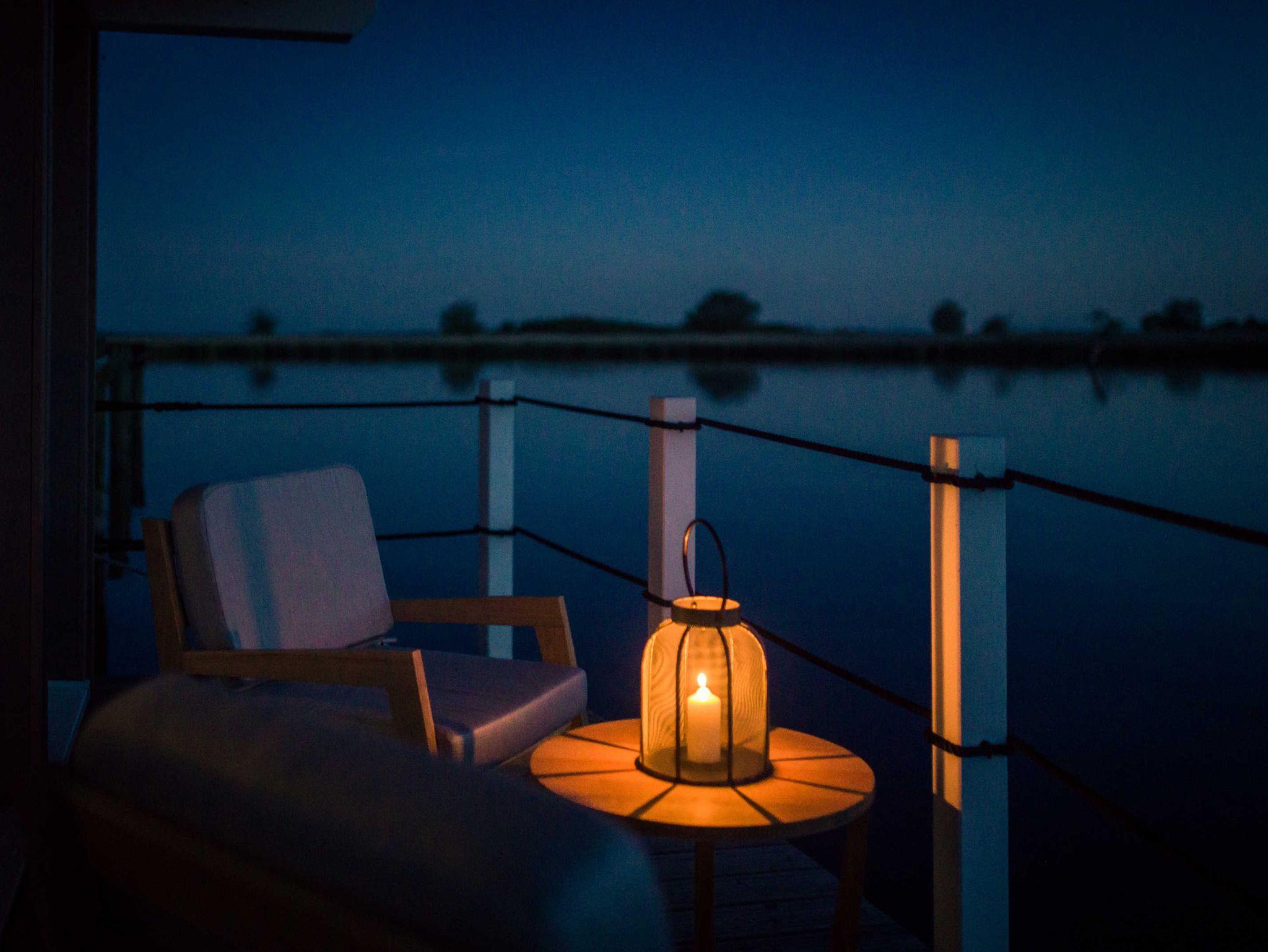Viele Details und eine exklusive Einrichtung sorgen für ein Wohlfühlen im Hausboot auf den ersten Blick. Morgens lächelt die Sonne durch die bodentiefen Fenster und lässt den Tag mit viel Sonnenschein beginnen. Abends lädt die Terrasse mit einem Panorama-Blick über die Krumminer Wiek zu einem Glas Wein und einen Blick in den Sternenhimmel ein.