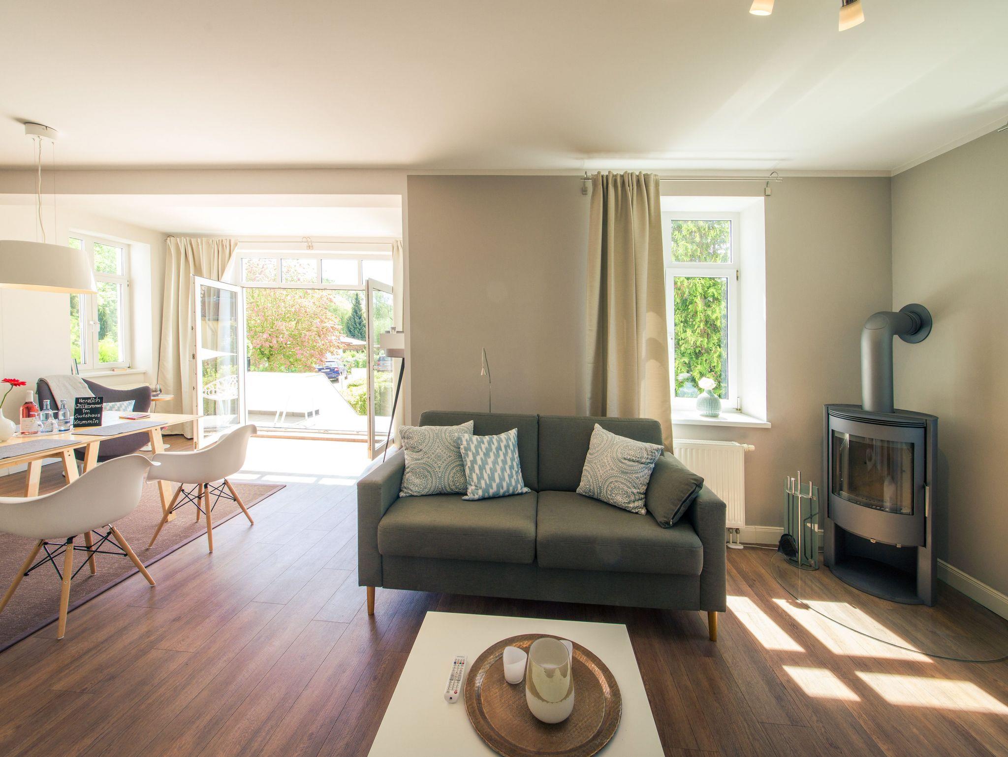 Diese lichtdurchflutete Wohnung befindet sich in Krummin im Gutshaus Krummin auf der Insel Usedom. Liebevoll eingerichtet bietet diese Ferienwohnung (61 qm) alles für einen Usedomurlaub zu zweit.