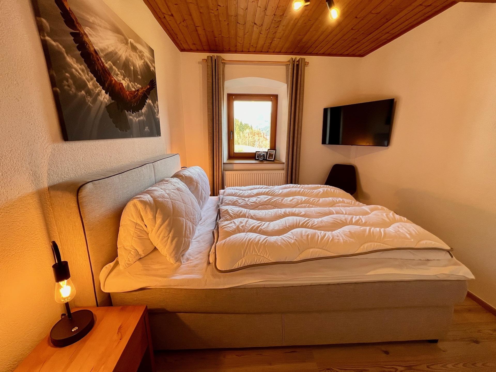 Die hervorragende Raumaufteilung mit einer gemütlichen Stube, separater Küche und einem extra Wohnzimmer mit Schlafcouch, TV und Kachelofen sowie den vier Schlafzimmern mit Doppelbett, bietet sehr viele Platz für Familien oder kleine Gruppen. Genießen Sie den einzigartigen Ausblick von einer der drei sonnigen Terrasse oder dem Balkon – für einen gemütlichen Grillabend ist hier alles vorhanden.