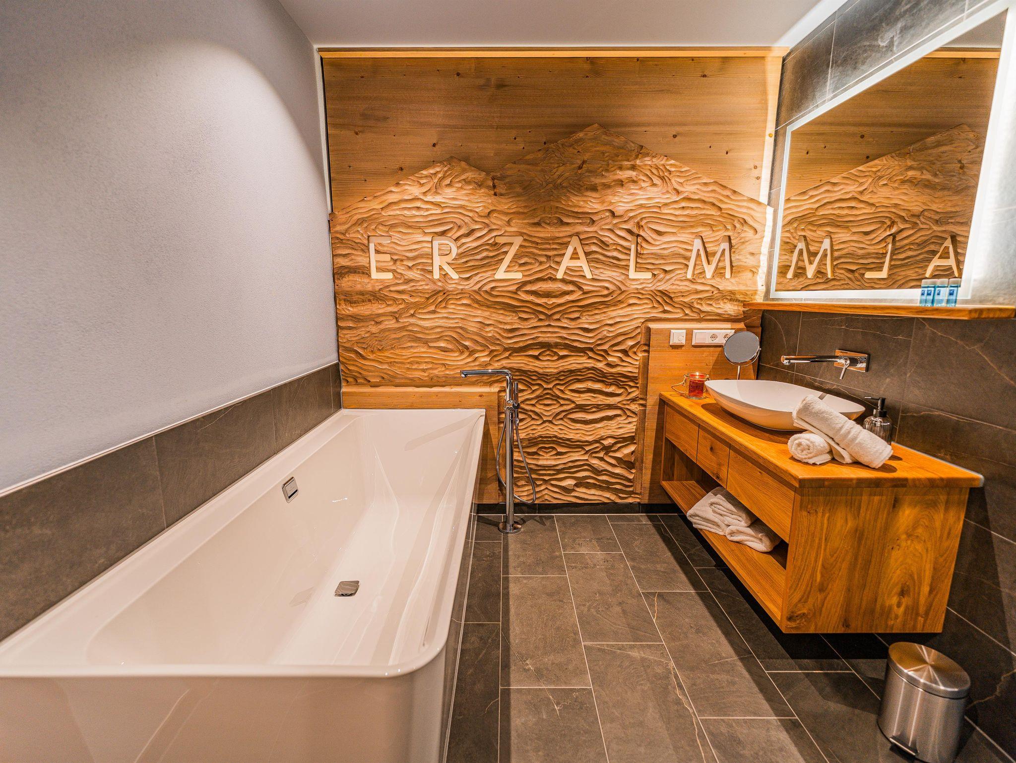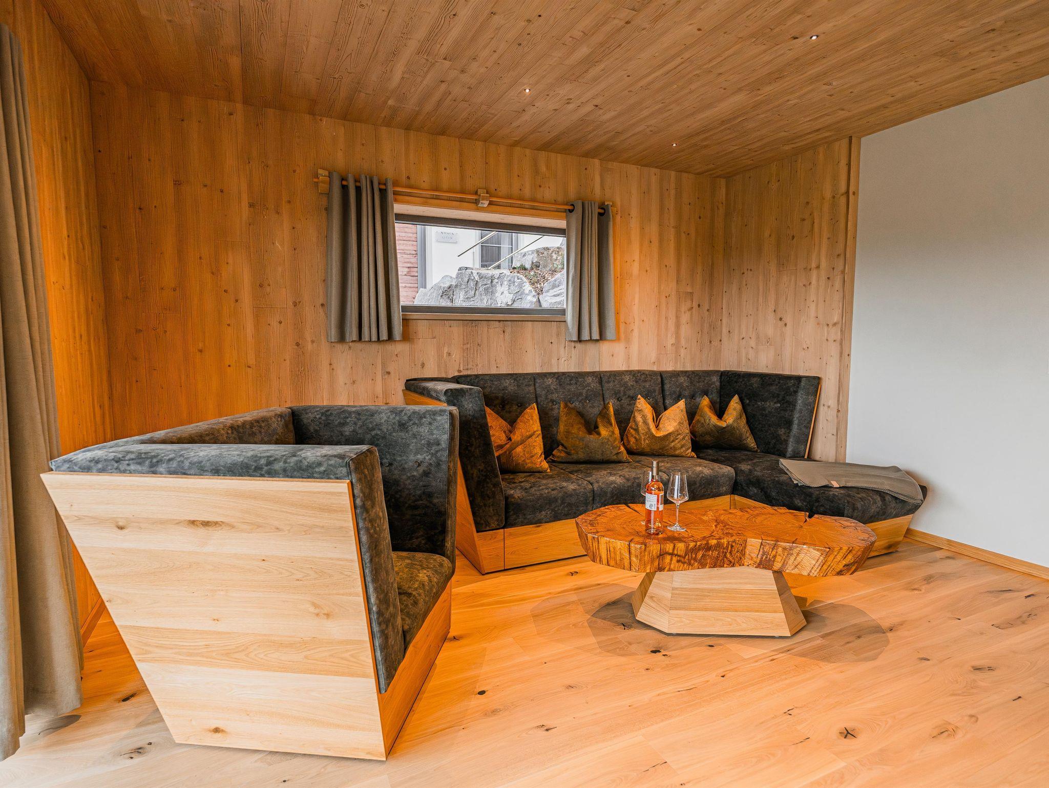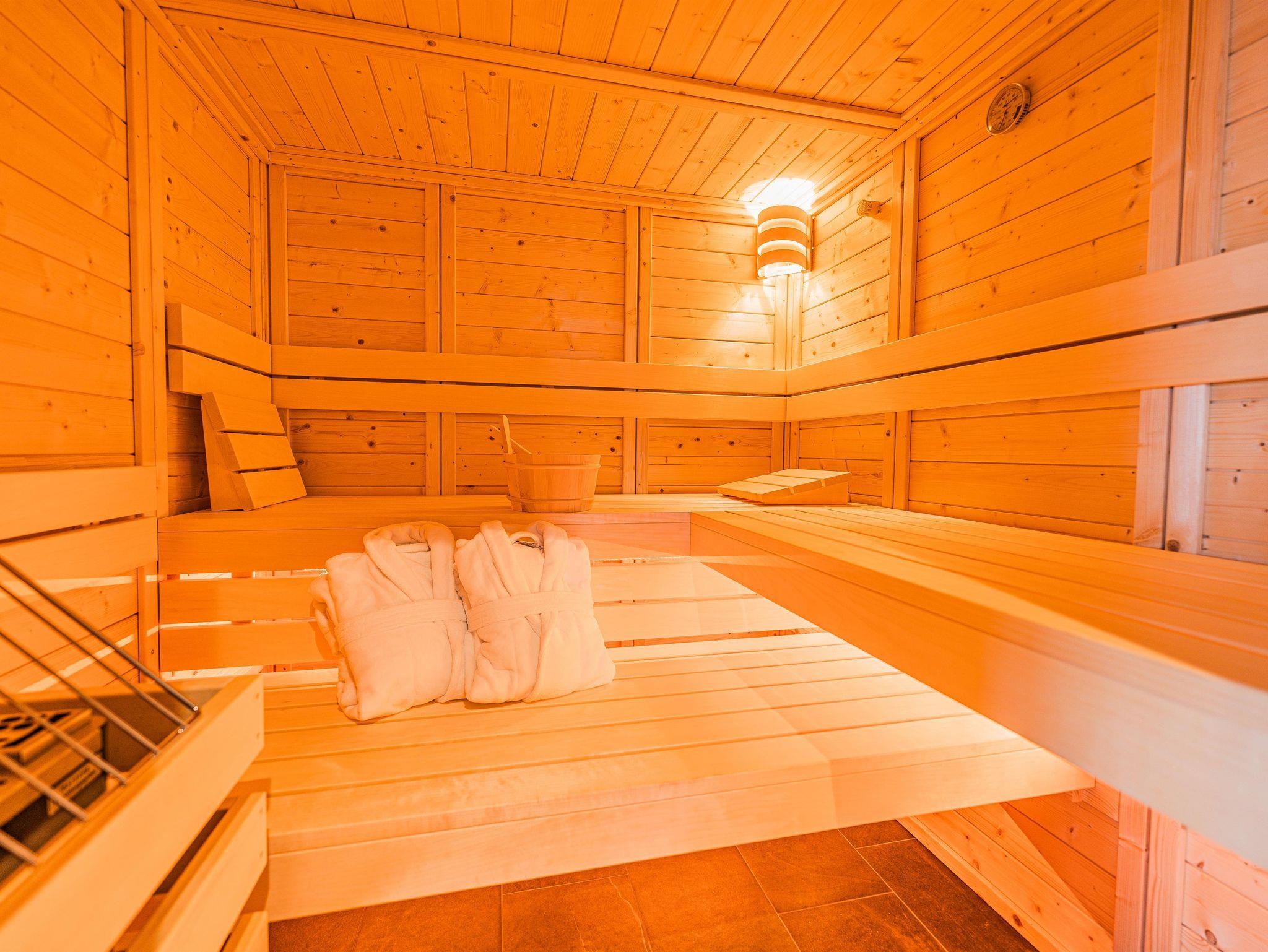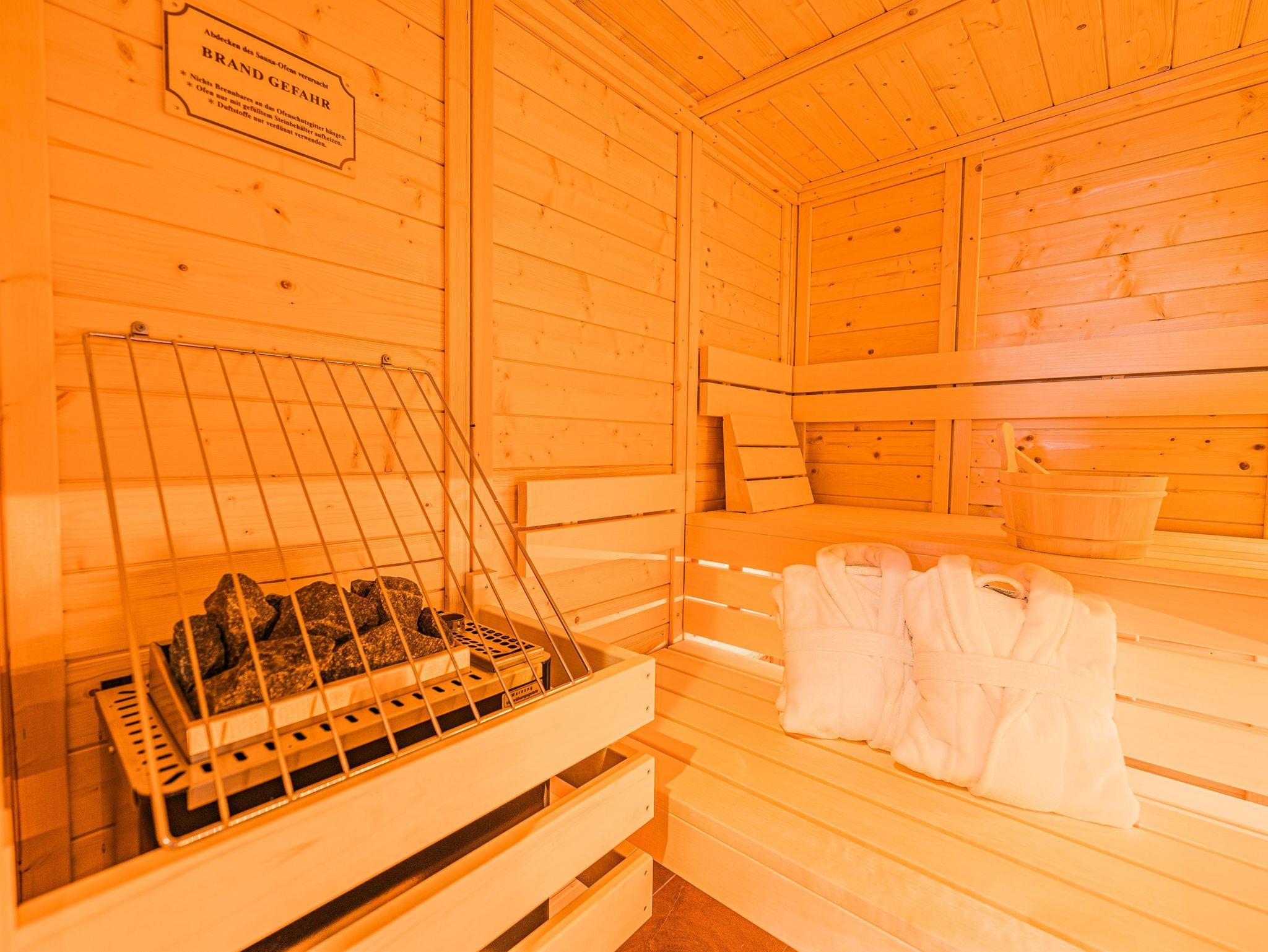 Noch mehr Entspannung findest du in einer der 3 privaten Biosaunas in den großen Wohnungen oder im separaten Erzalmhaus im Wellnessbereich Stollengrotte mit gemütlichem Saunabereich, eigenem Ruheraum und Außenbereich.