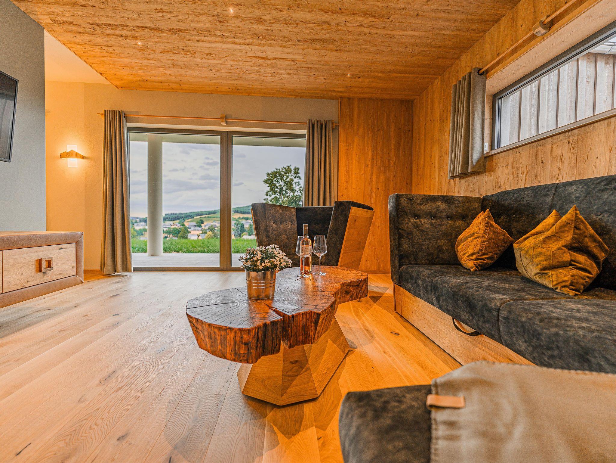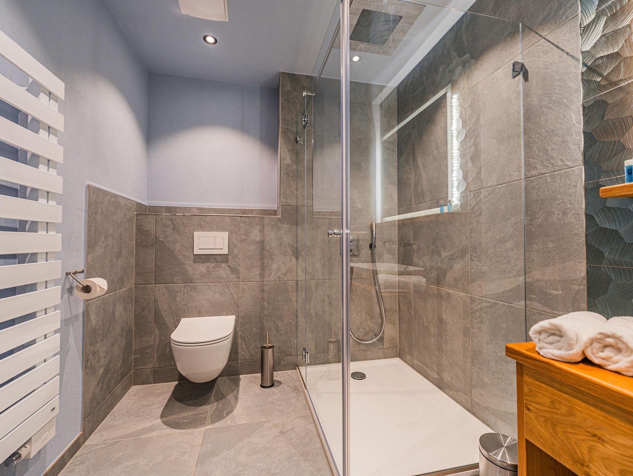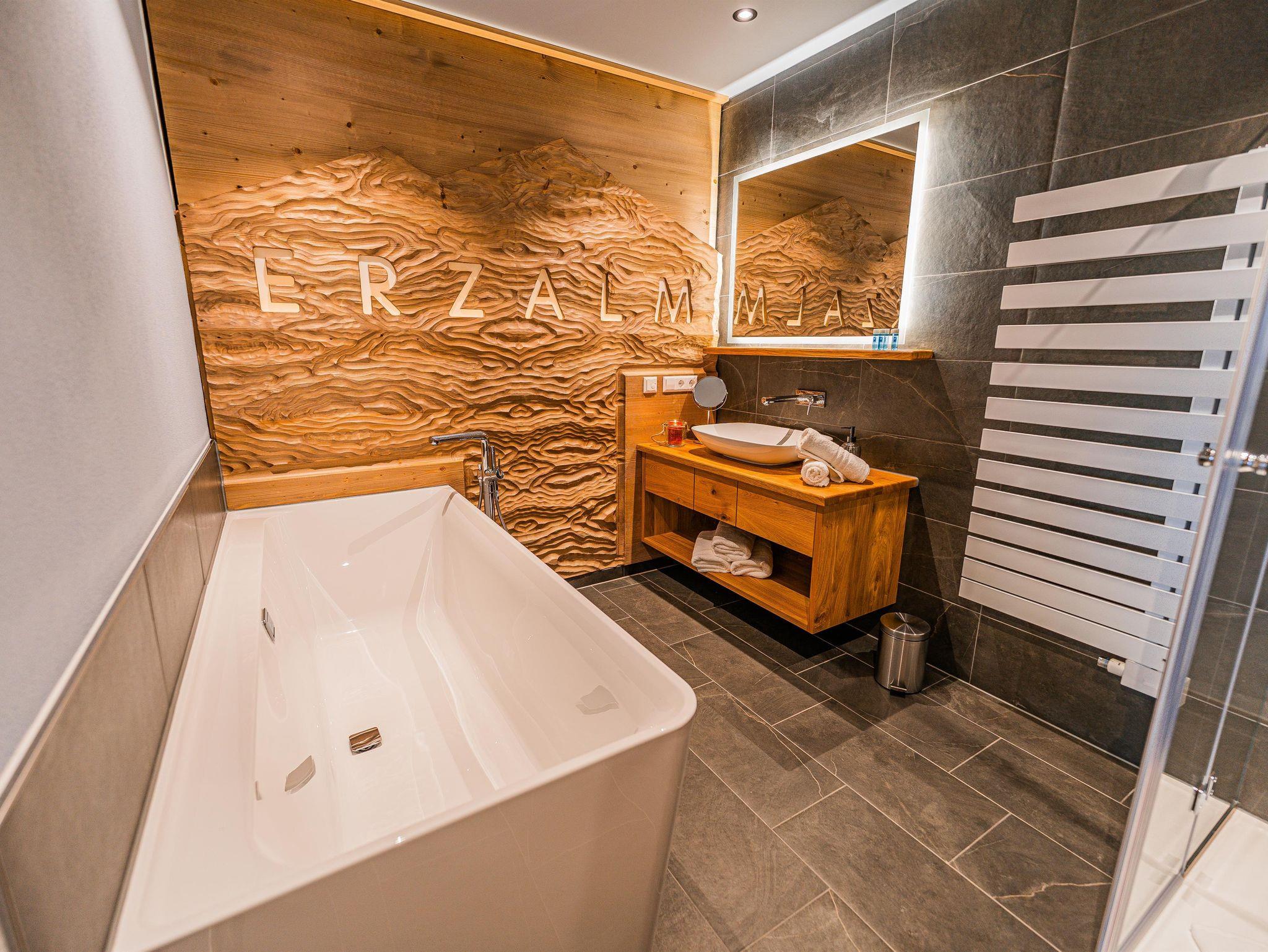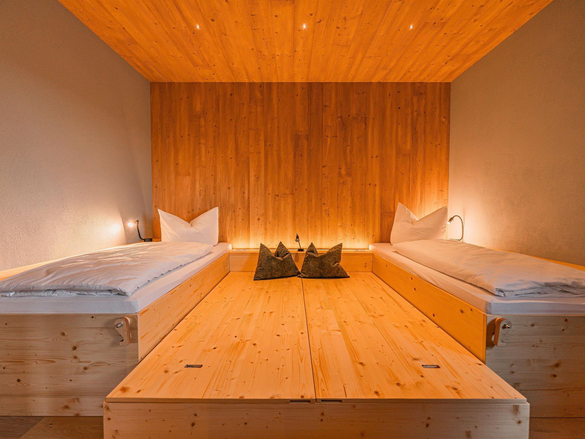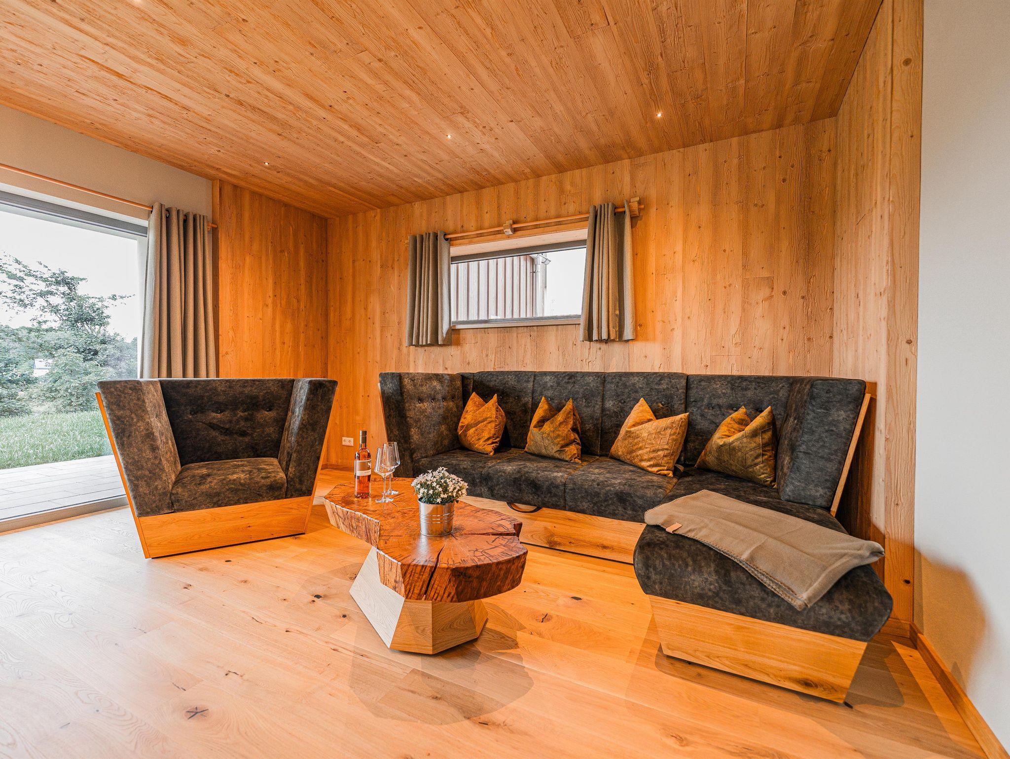 Noch mehr Entspannung findest du in einer der 3 privaten Biosaunas in den großen Wohnungen oder im separaten Erzalmhaus im Wellnessbereich Stollengrotte mit gemütlichem Saunabereich, eigenem Ruheraum und Außenbereich.
