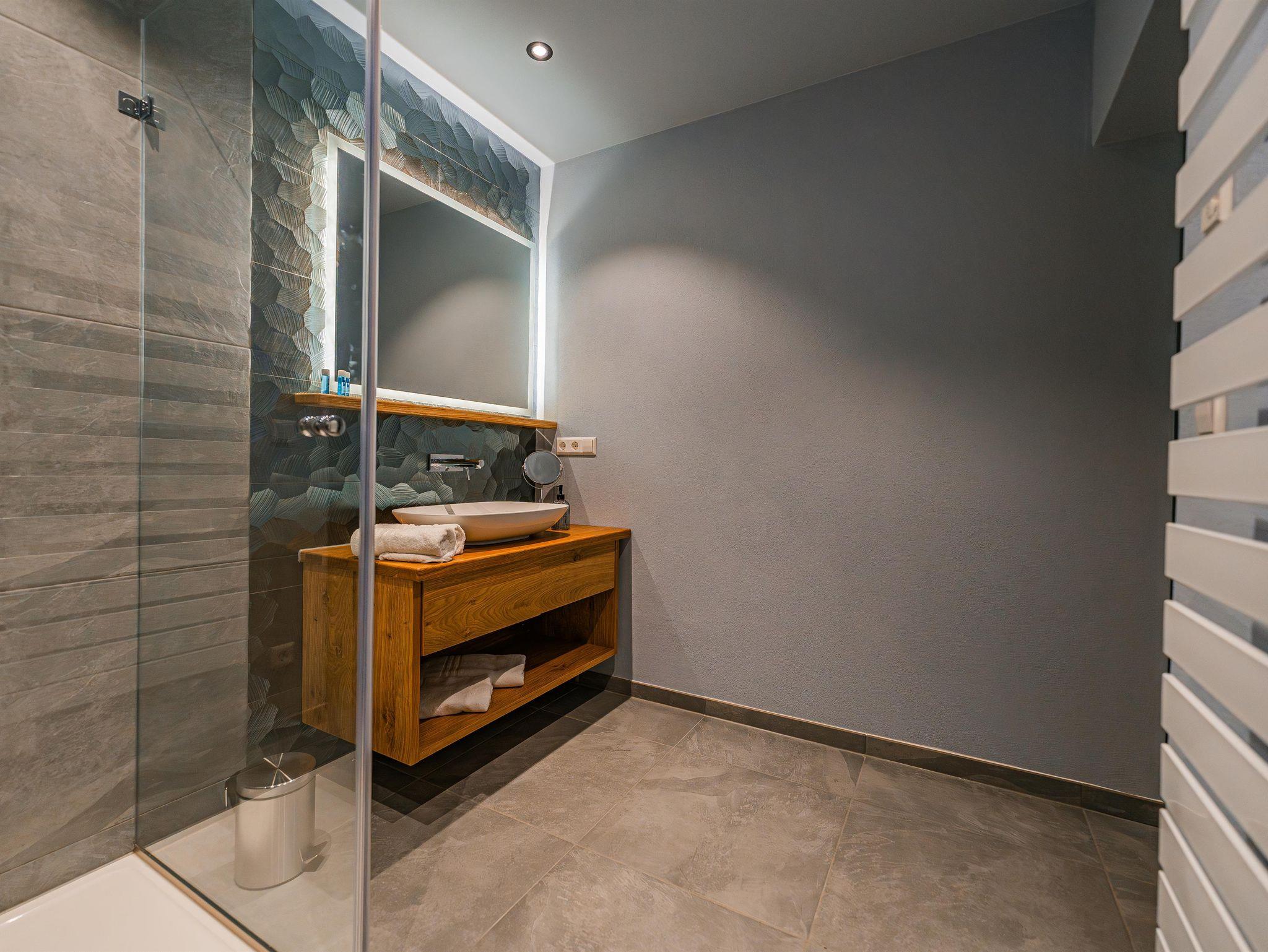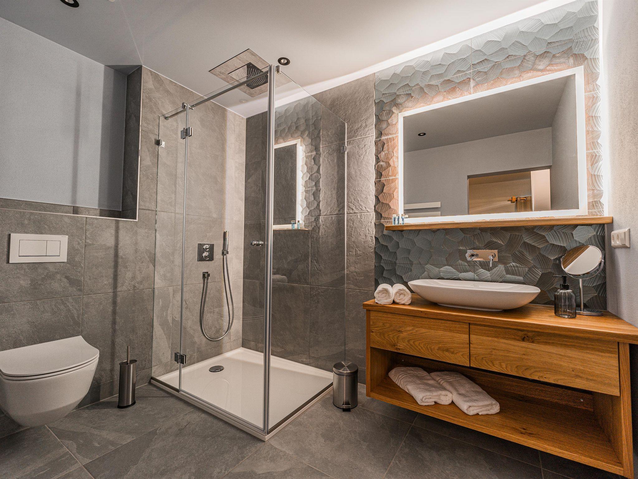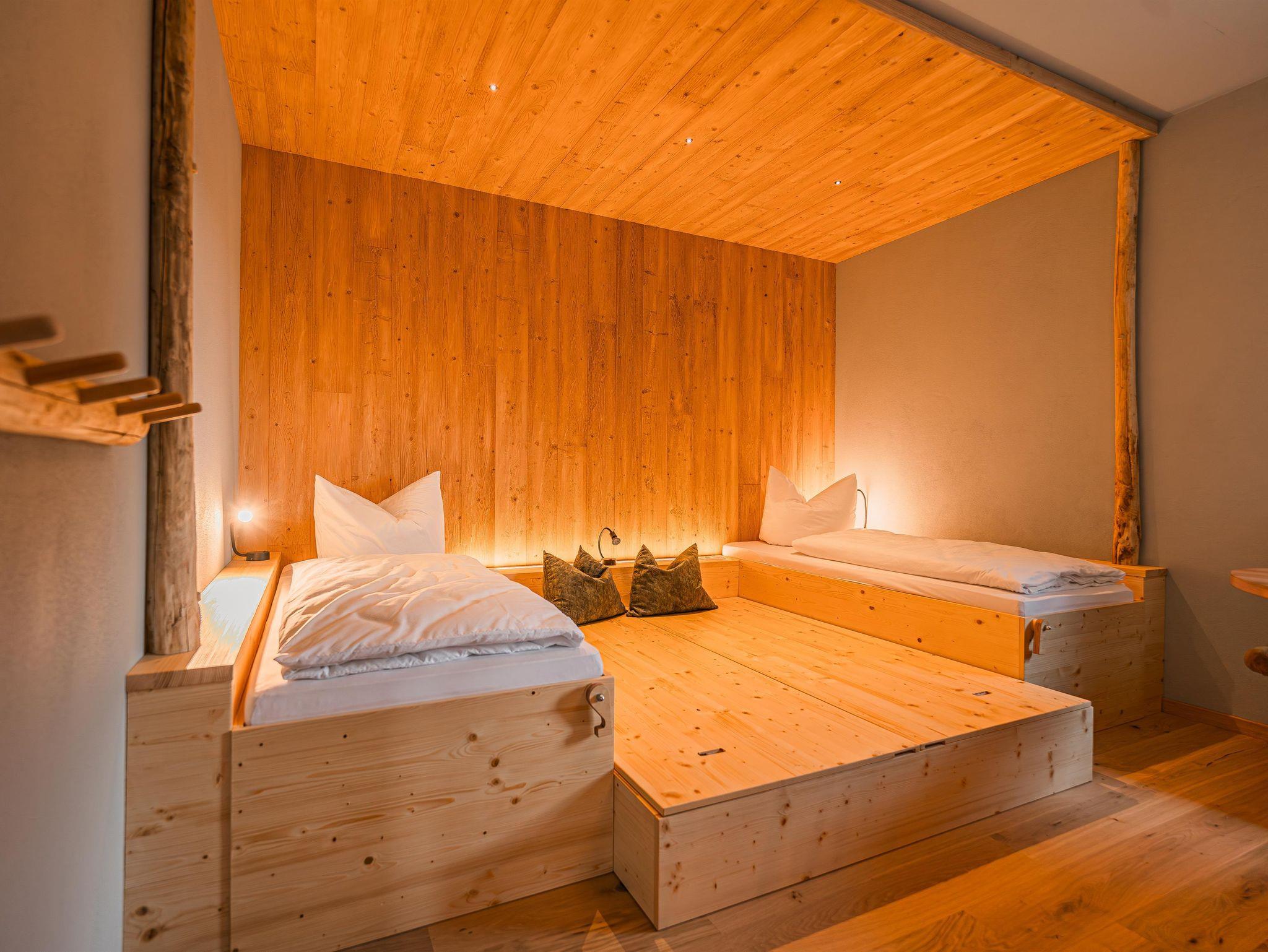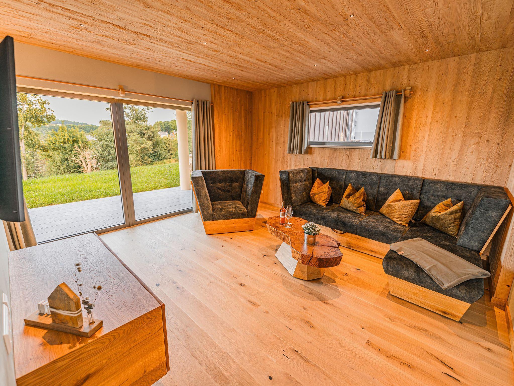 Noch mehr Entspannung findest du in einer der 3 privaten Biosaunas in den großen Wohnungen oder im separaten Erzalmhaus im Wellnessbereich Stollengrotte mit gemütlichem Saunabereich, eigenem Ruheraum und Außenbereich.
