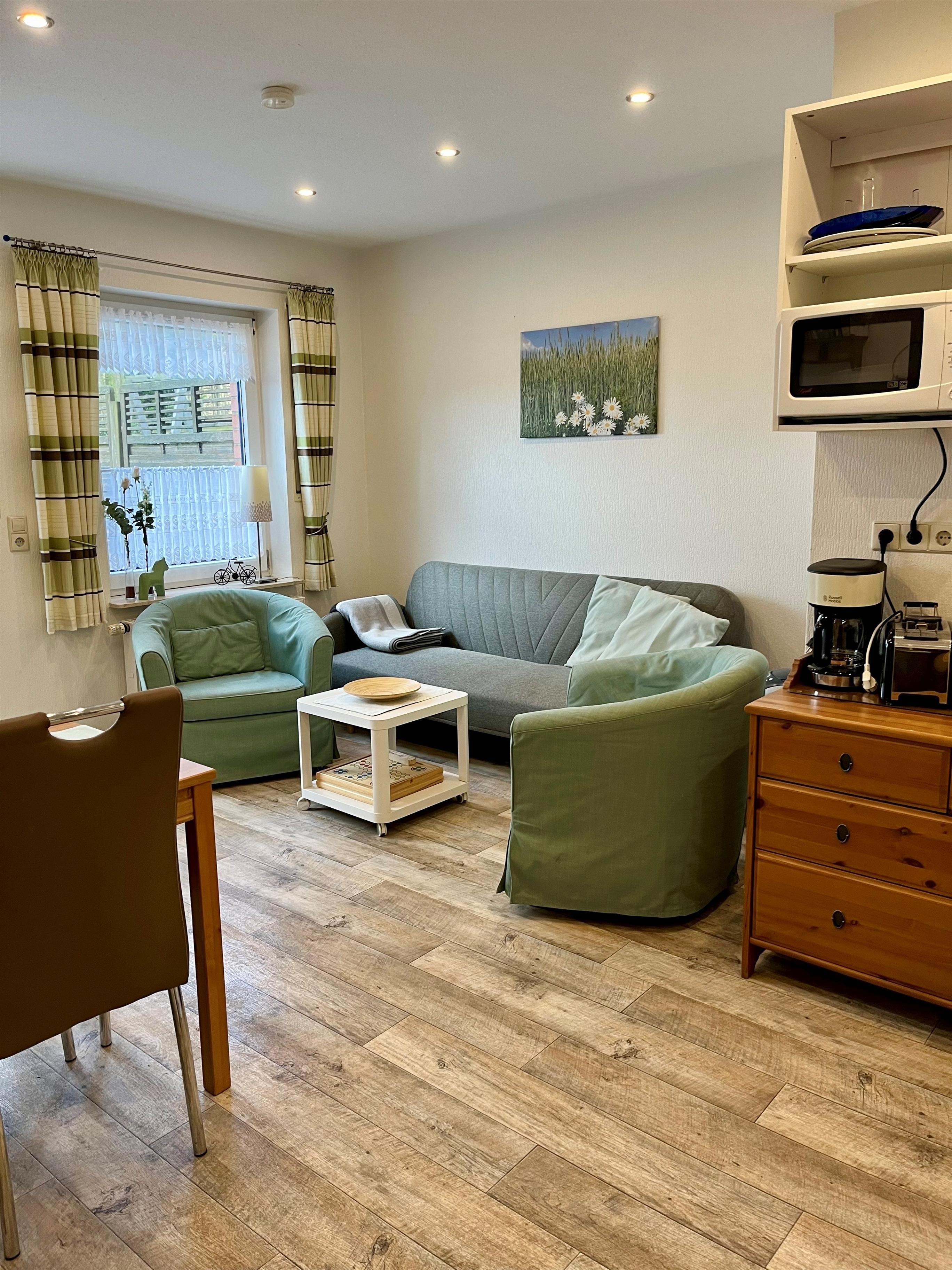 Ab an die frische Luft und den Urlaub im Garten der Ferienwohnung ganz entspannt genießen. Für alle Gäste, die an einem warmen Sommertag entspannt zusammen essen möchten, gibt es einen Grill.