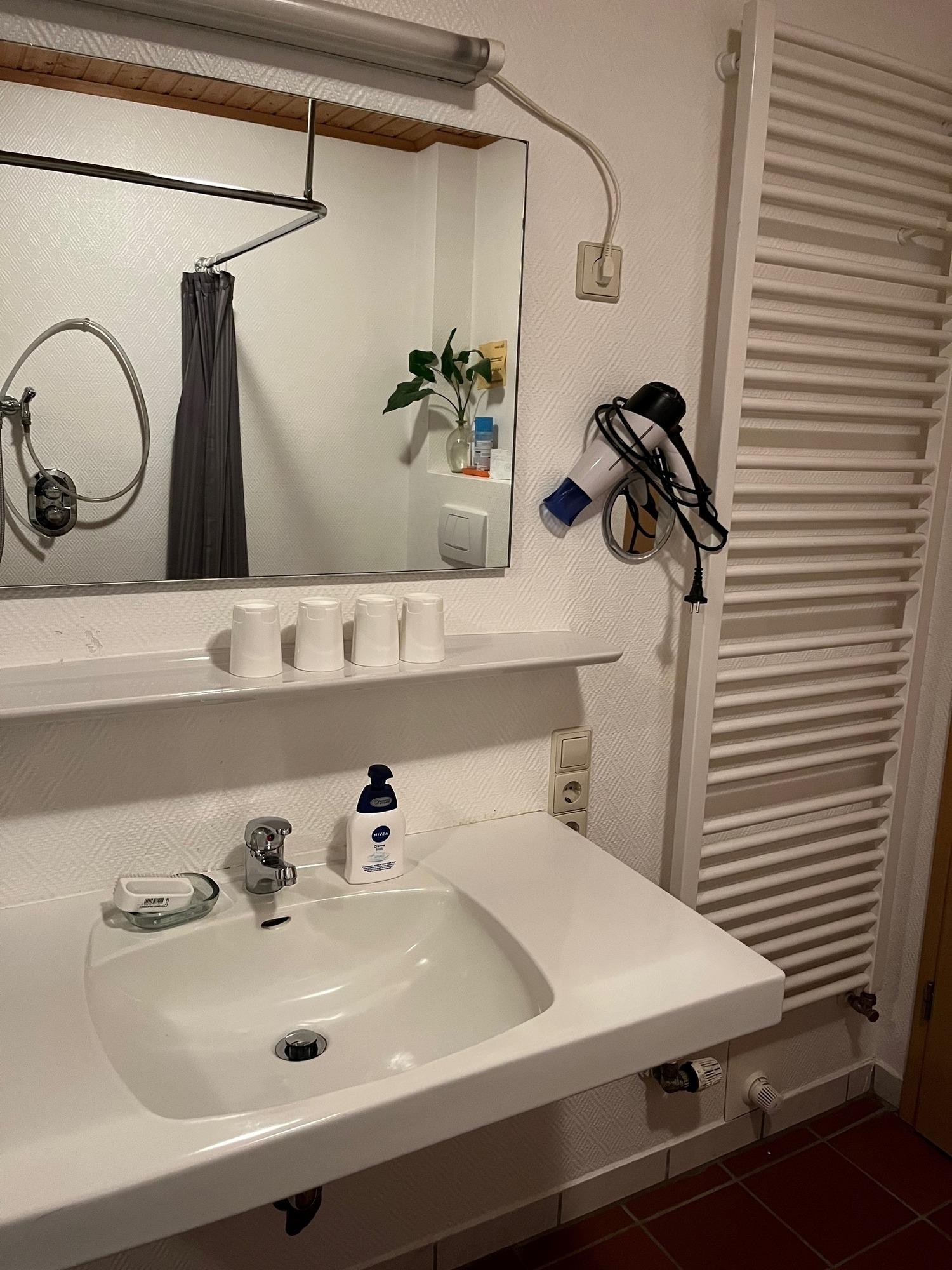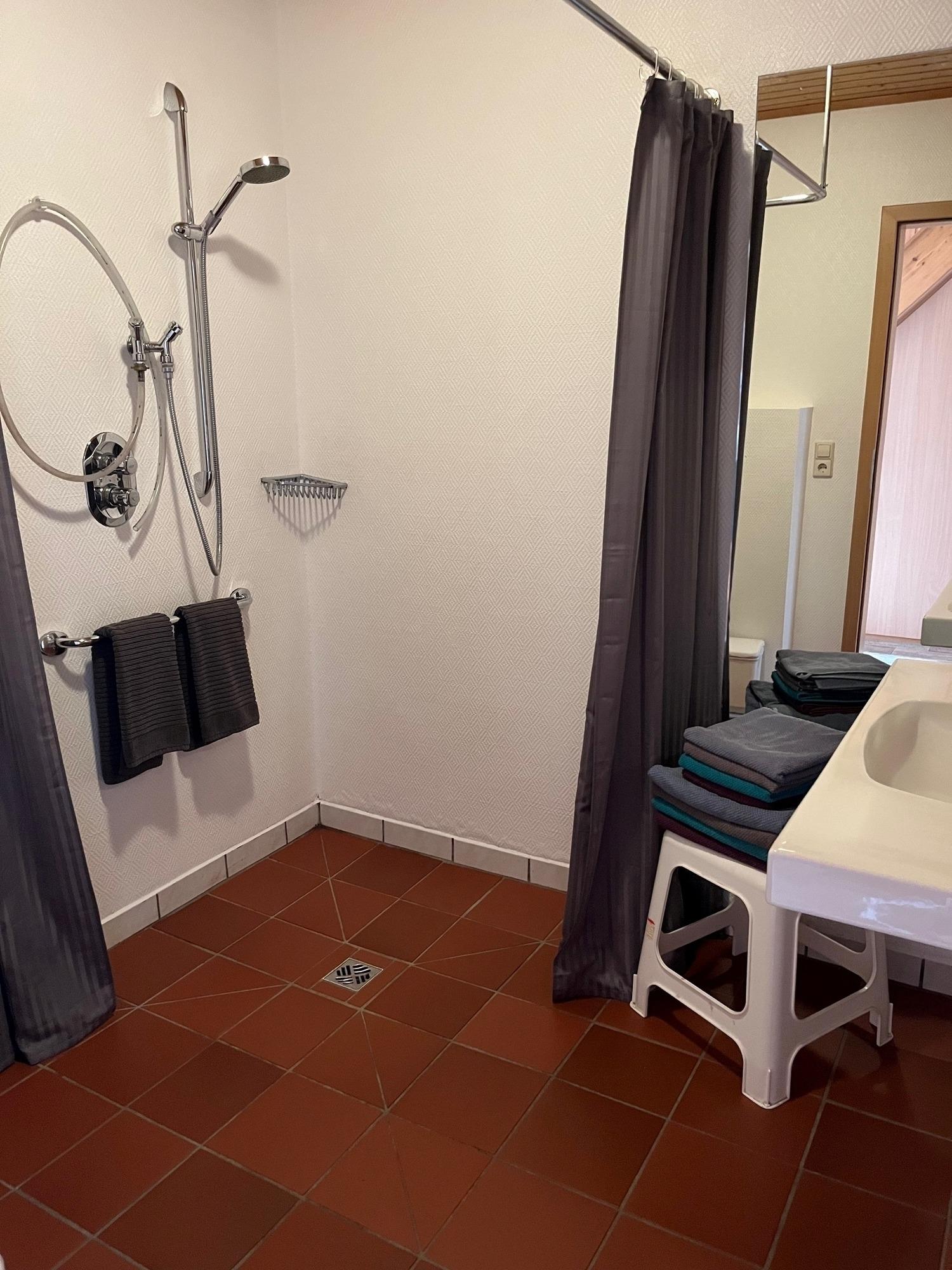 Im Badezimmer finden Sie eine Dusche und einen Haartrockner.