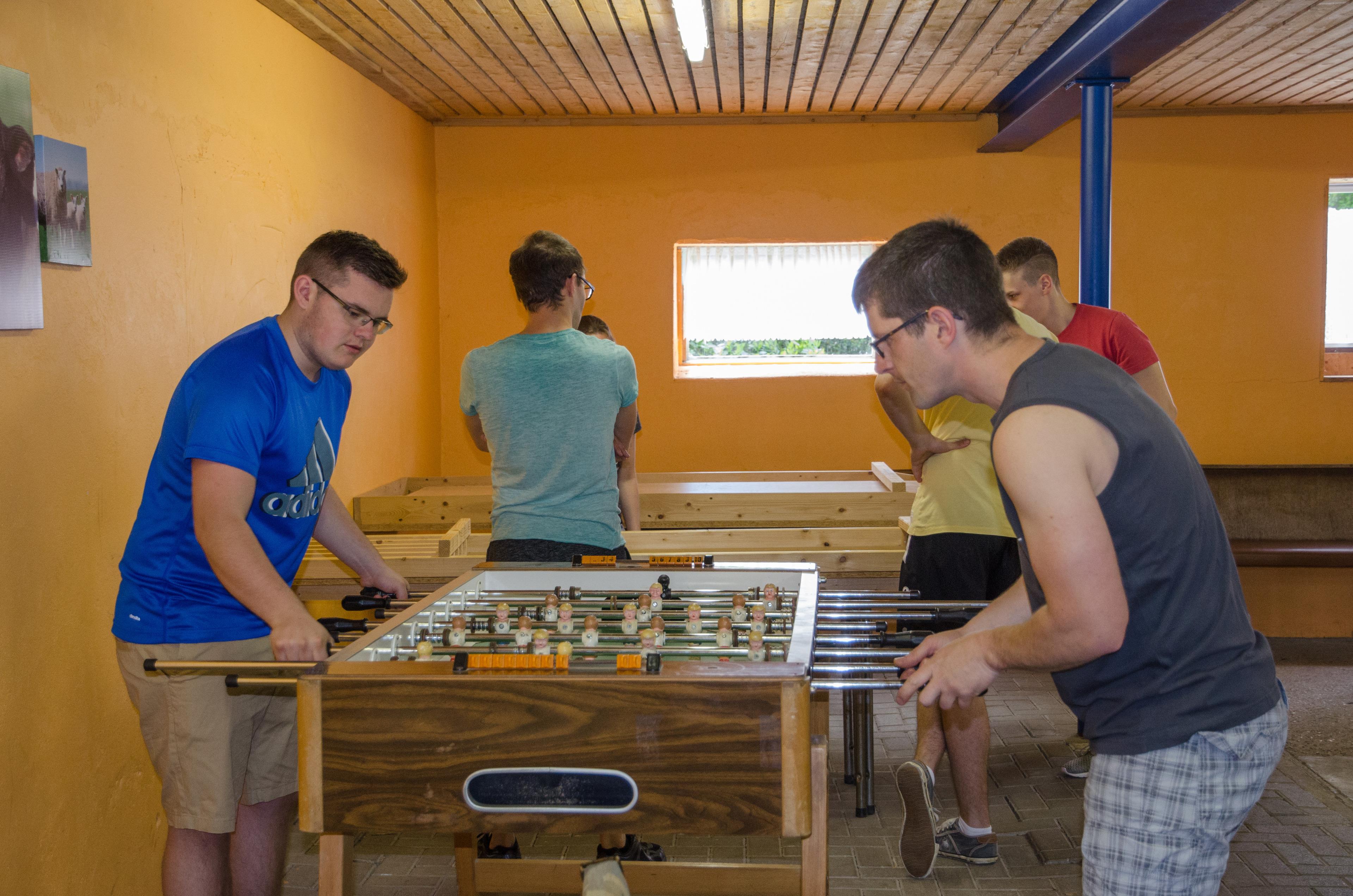 Ein großer Freizeitraum mit Kamin und Küchenzeile auch für Gruppen