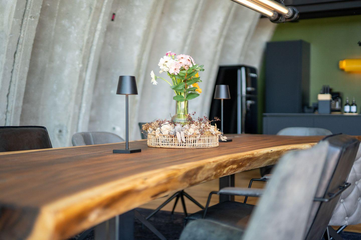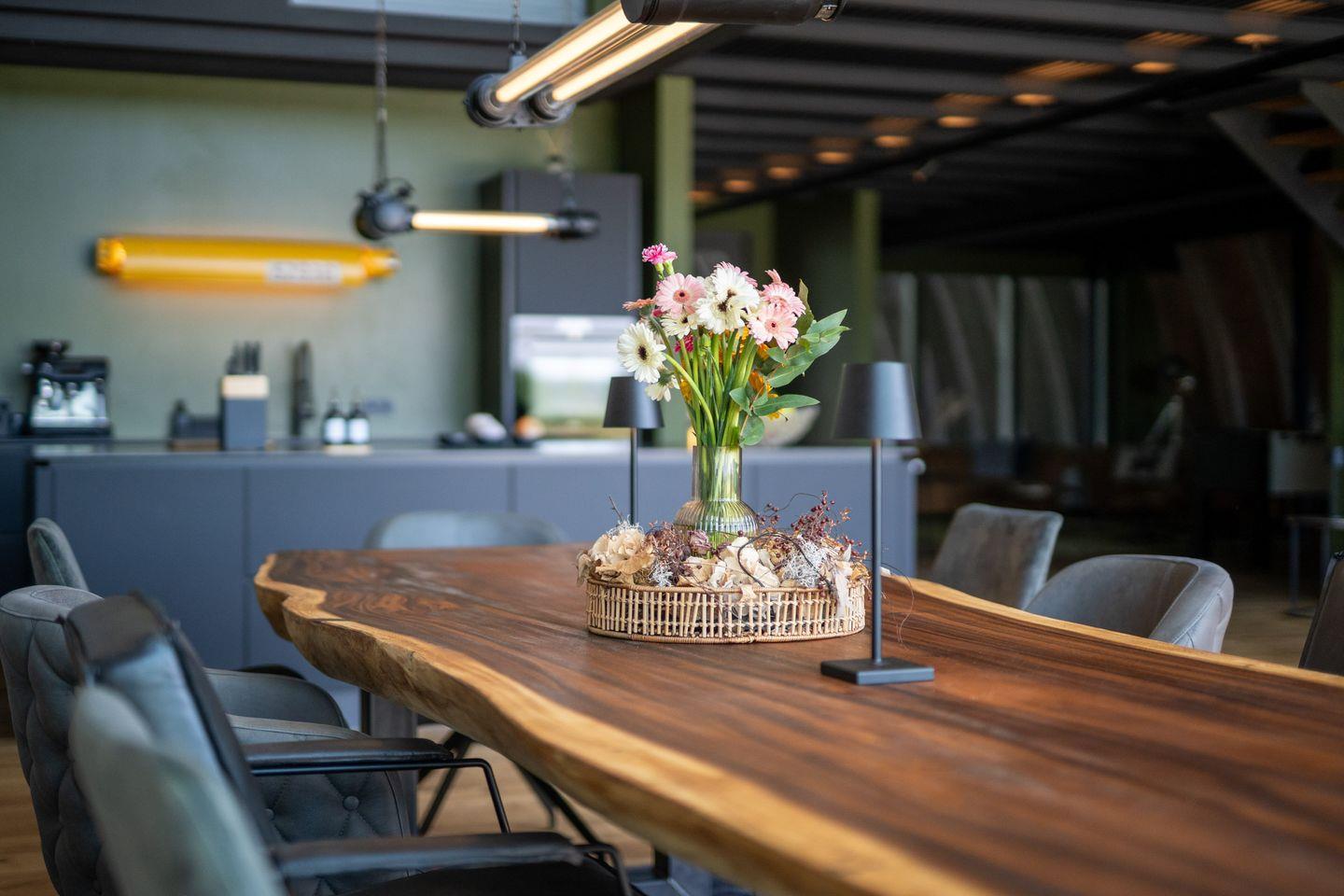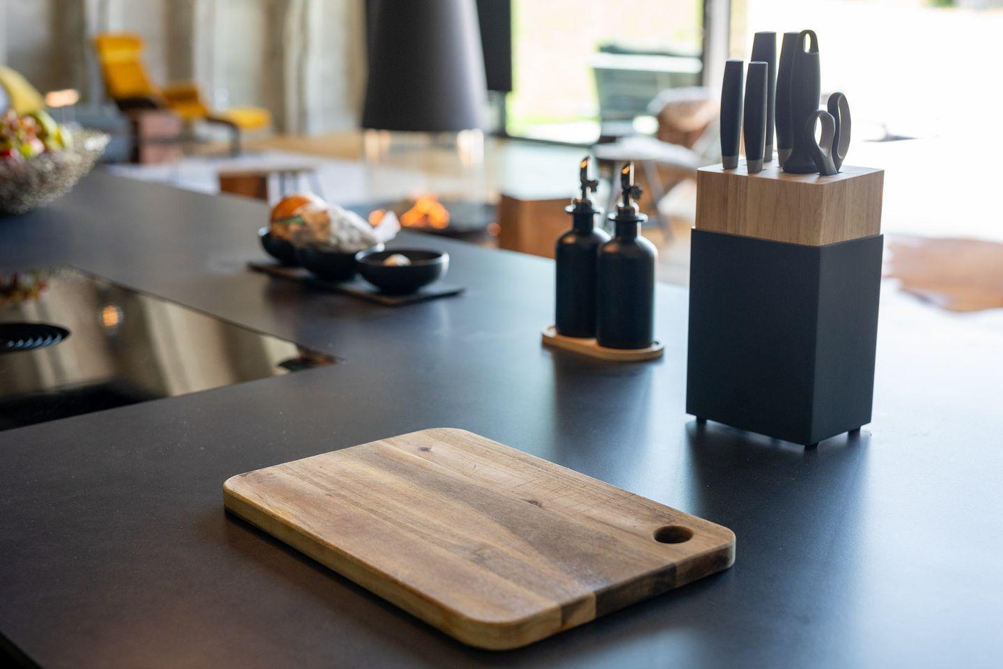 Die hervorragend ausgestattete, offene Küche lässt keine Wünsche offen und ist direkt mit dem Wohnzimmer verbunden. Sie finden hier neben Herd (Induktion), Backofen, Mikrowelle, Kühlschrank und extra Gefrierschrank auch Spülmaschine, Toaster, Wasserkocher, Kaffeemaschine und zahlreiche Küchenutensilien. Geschirr, Besteck, Gewürze sowie Reinigungstücher sind ebenfalls vorhanden, sodass Ihnen für die Zubereitung gemeinsamer Mahlzeiten und geselliger Abende alle Möglichkeiten offenstehen. Der großzügige Esstisch bietet ausreichend Platz für die gesamte Reisegruppe.