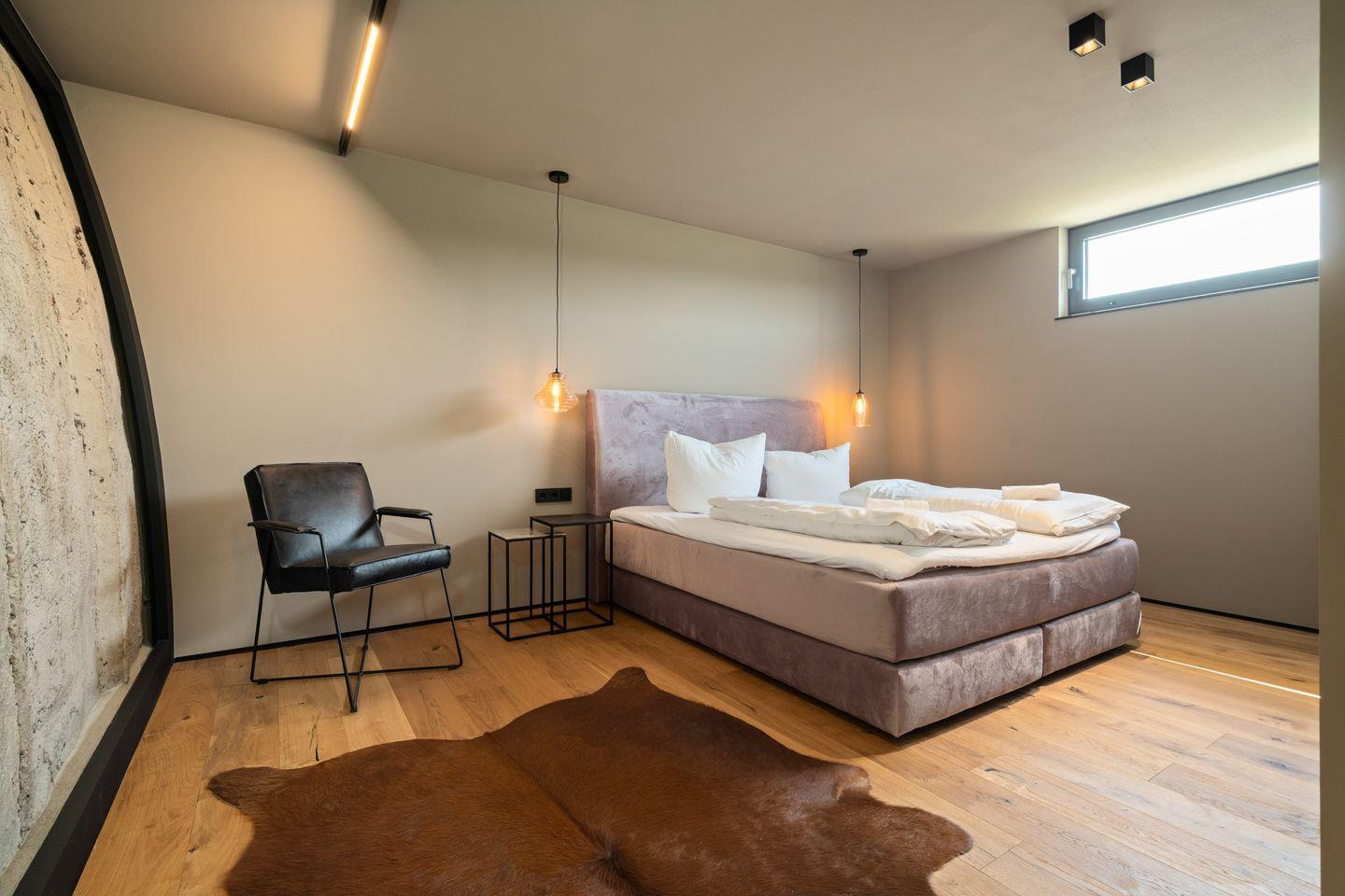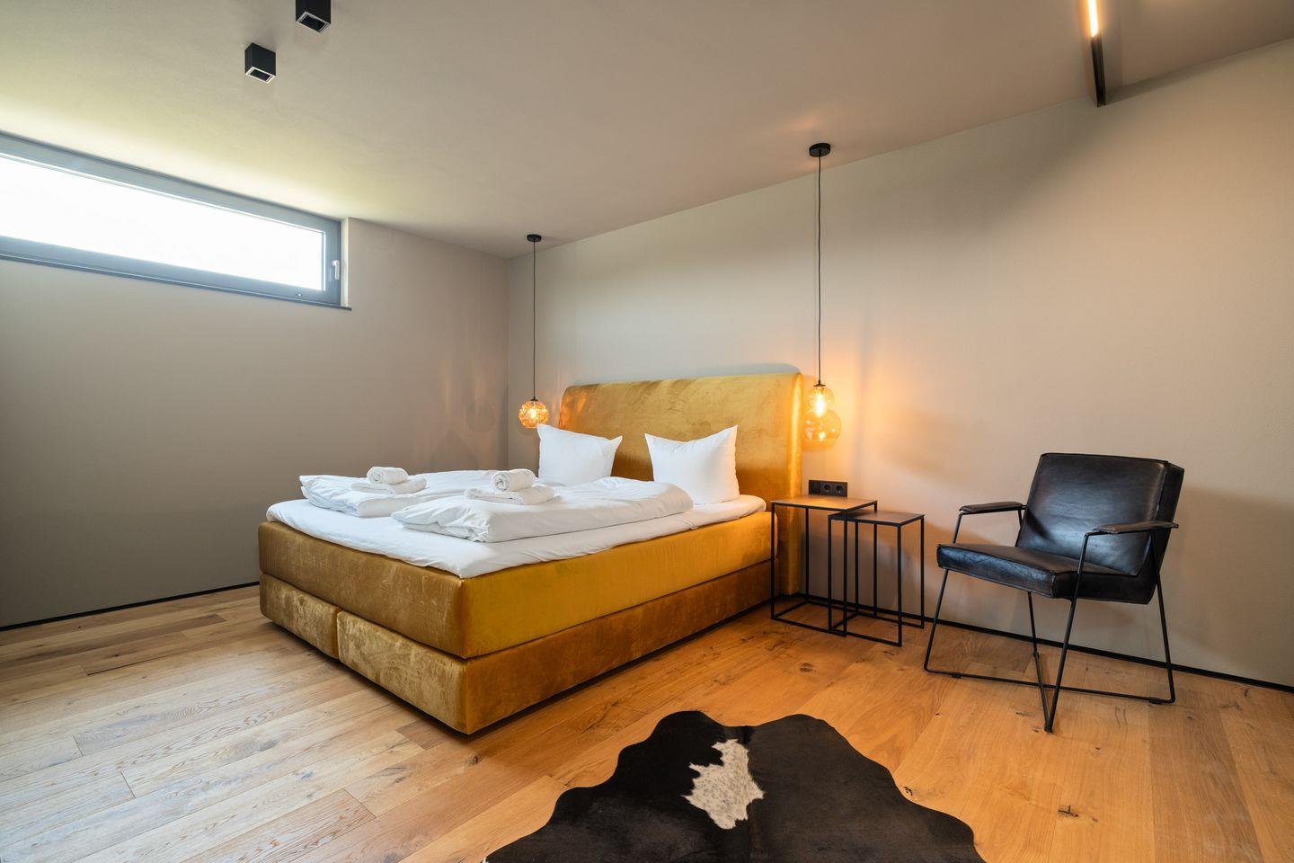 Die Unterkunft verfügt über 6 großzügige Zimmer, darunter fünf separate Schlafzimmer, die jeweils für erholsame Nächte konzipiert sind. Fünf moderne Badezimmer mit bodengleichen Duschen, hochwertigen Badutensilien sowie ein zusätzliches Gäste-WC sorgen für Privatsphäre und Komfort, selbst bei einer größeren Gruppe. Der offene Wohn- und Essbereich lädt durch seine klaren Linien und das umfassende Platzangebot zum Verweilen ein. Die Sofaecke, Sessel, eine Vielzahl an Staumöglichkeiten und der Kaminofen schaffen eine behagliche Atmosphäre, die durch die Fußbodenheizung und die Klimaanlage zu jeder Jahreszeit abgerundet wird.