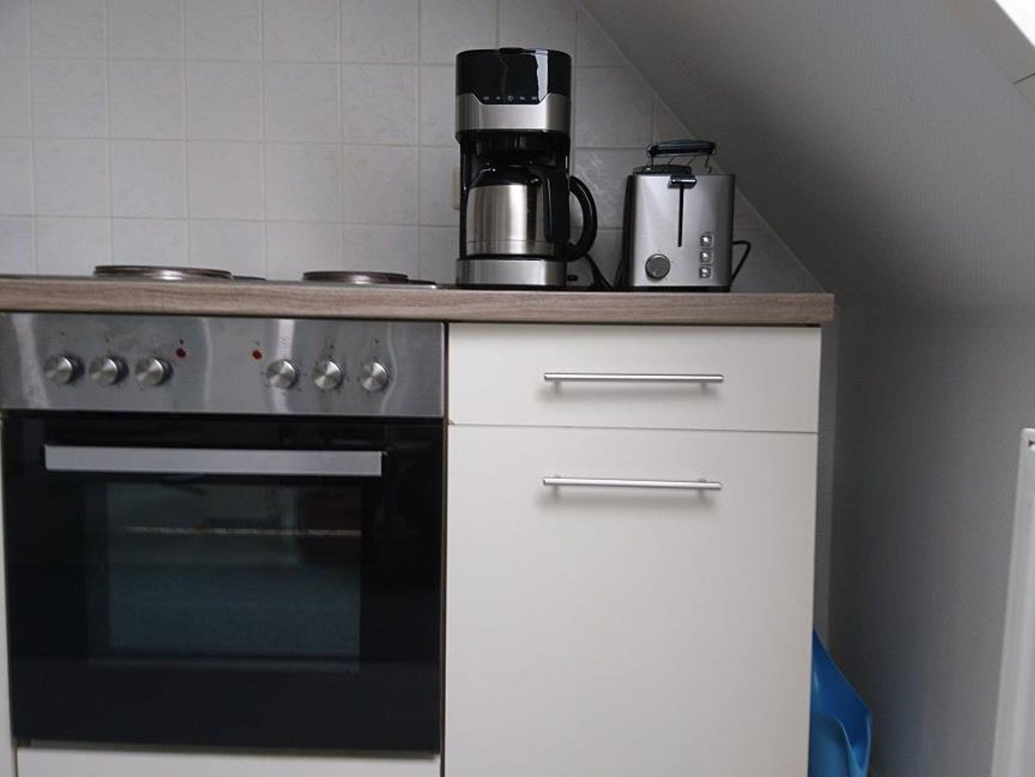 • 1 Küche ausgestattet mit Kühlschrank, Herd und Backofen, Kaffeemaschine, Geschirrspüler, Wasserkocher, Geschirr und Gläser für 4 Personen