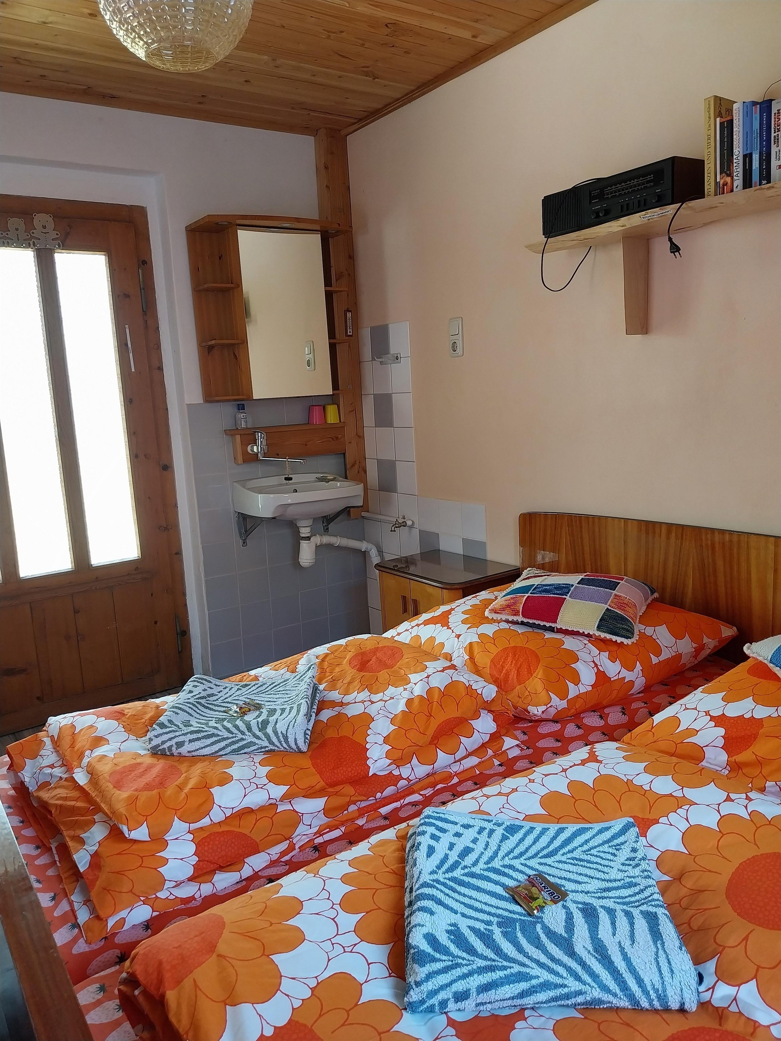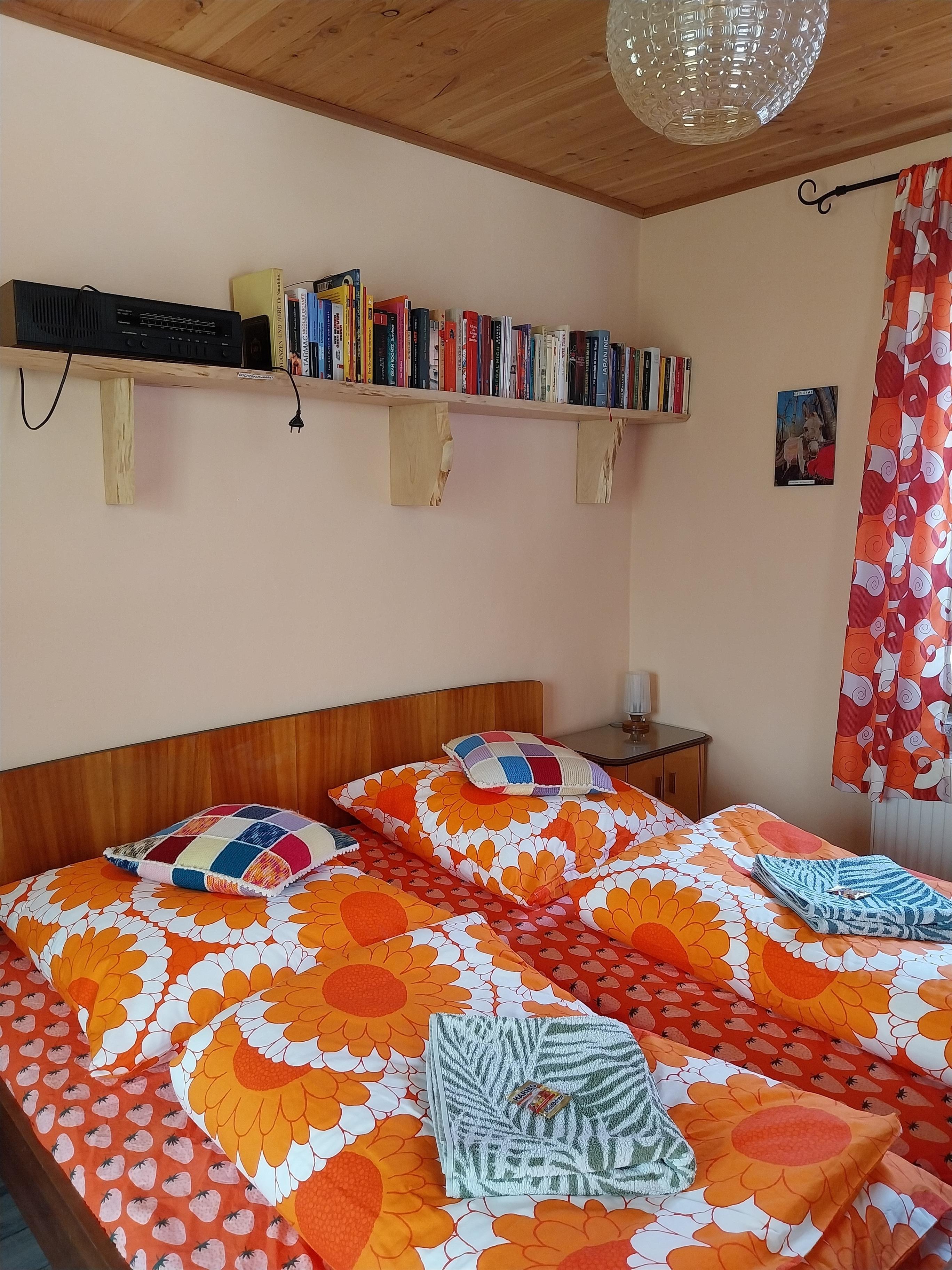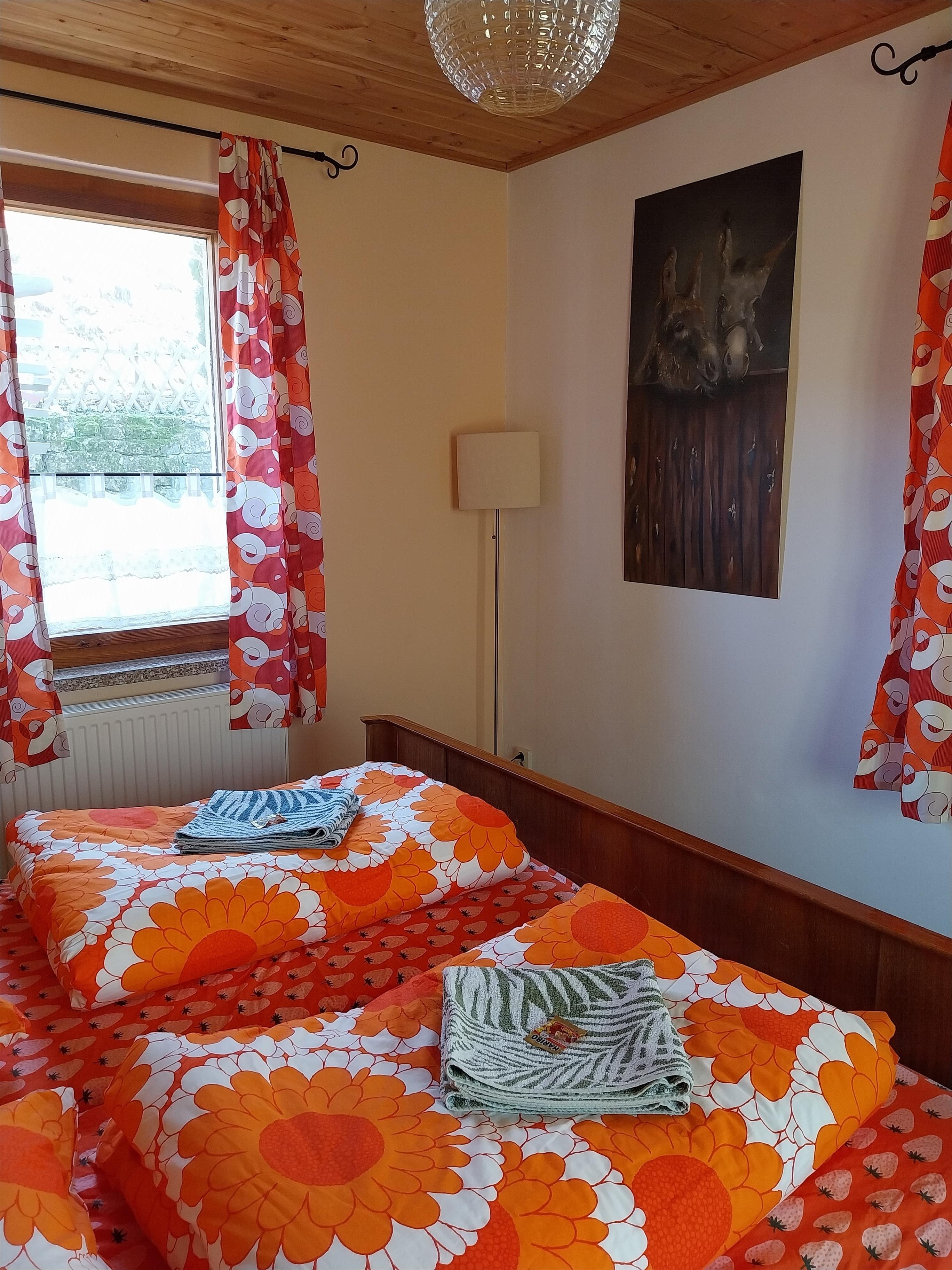 Unser Ferienhaus ist ca. 70 m2 groß und verfügt über zwei Schlafzimmer, ein Badezimmer mit Dusche und WC, sowie eine gut ausgestattete Küche mit Holzofen, Elektroherd, Spülmaschine, Kühl- und Gefrierschrank. Es können auf Nachfrage auch Yogastunden (Einzel- oder Gruppentermine) gebucht werden. Für die komplette Ferienwohnung bis zu vier Personen sind Handtücher, Bettwäsche und Holz für den Küchenofen inclusive. Die Ferienwohnung hat kein WLAN und keinen Fernseher!!! Unsere Ferienwohnung und unser Grundstück ist nicht barrierefrei!!!