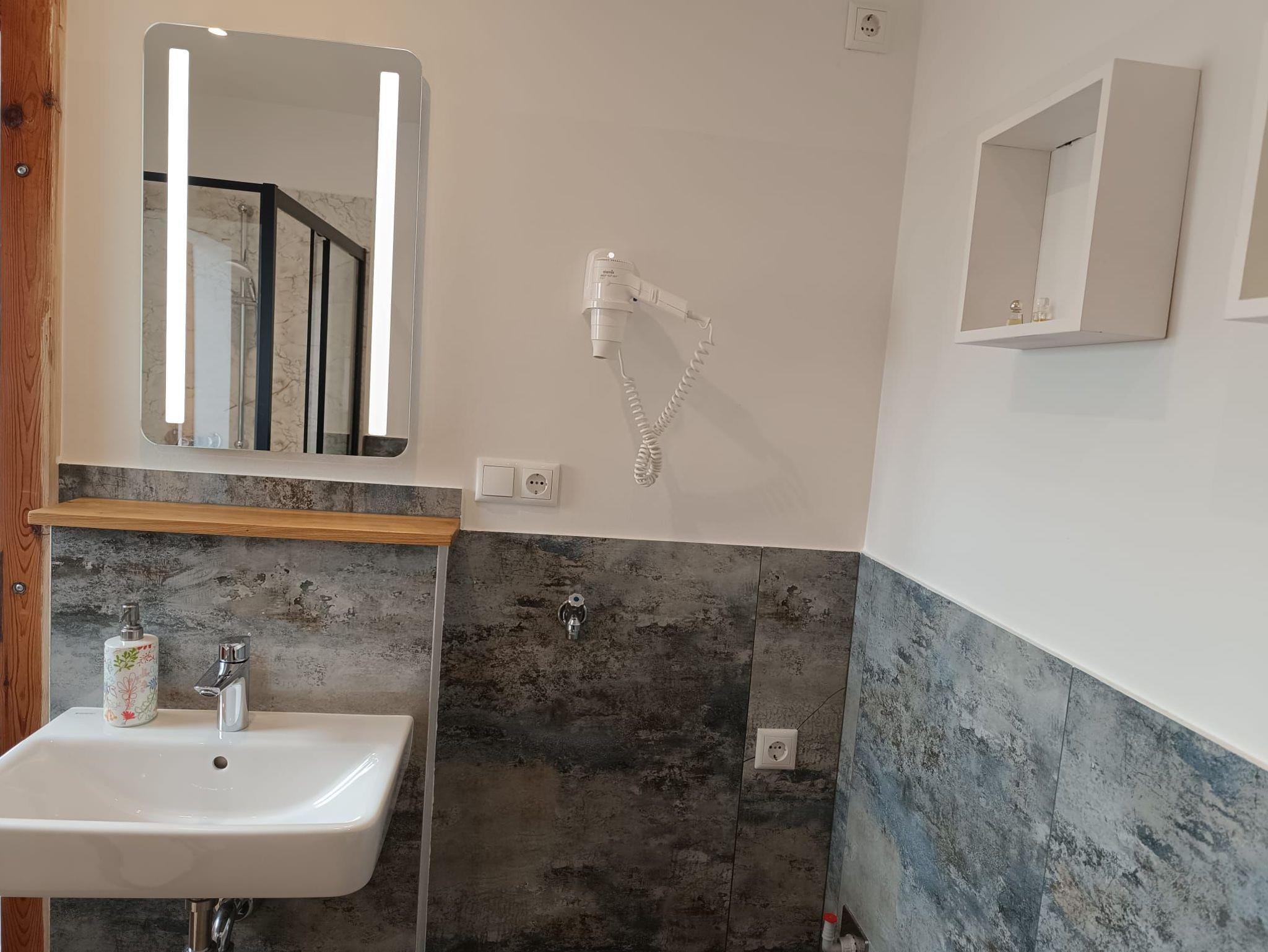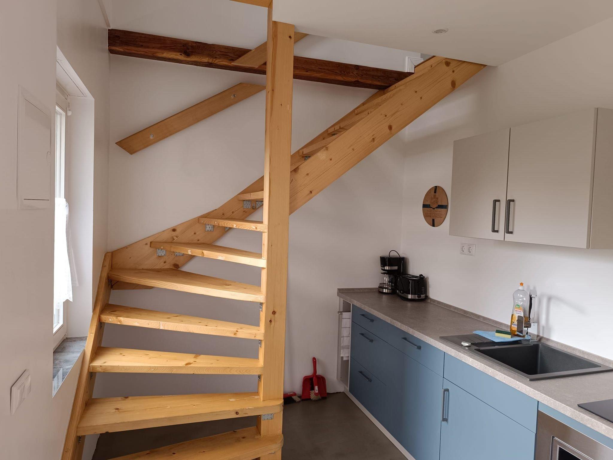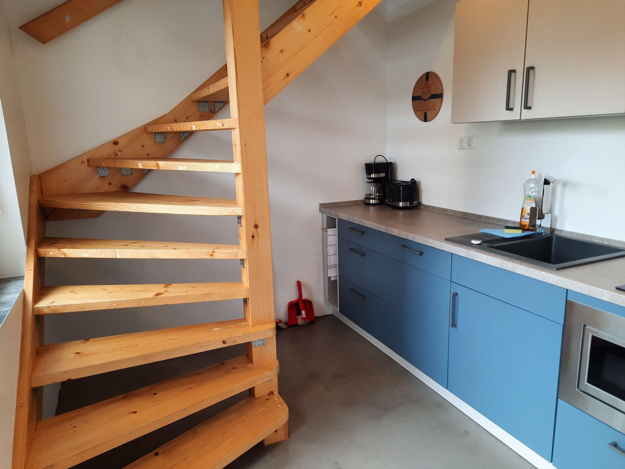 Die Ferienwohnung verfügt über eine Küche, ein Bad mit Dusche, WC, Haartrockner, ein kombinierter Wohn- und Schlafraum. SAT-TV und WLAN ist vorhanden. Die gut ausgestattete Küche und das Bad befinden sich im Erdgeschoss. Das Schlaf-/Wohnzimmer befindet sich im Obergeschoss. Dieses ist über eine Wendeltreppe zu erreichen. Die Wohnung ist nicht behindertengerecht.