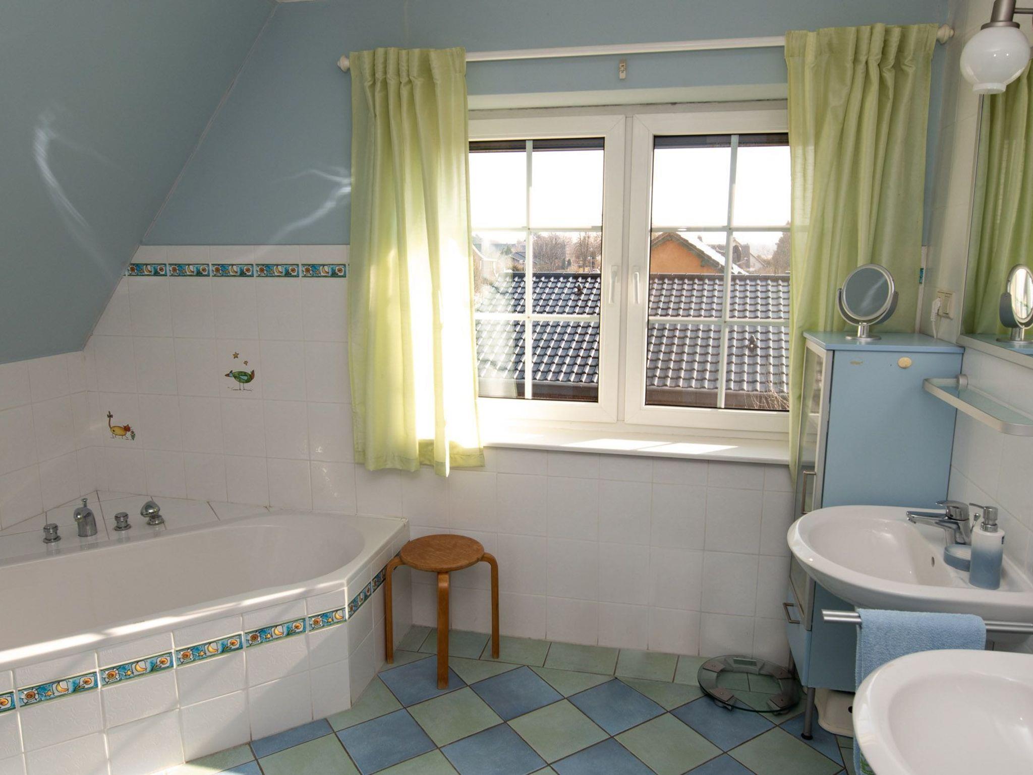 Die größere modern eingerichtete Ferienwohnung befindet sich im Obergeschoß des Wohnhauses und hat einen separaten Eingang. Sie verfügt über eine voll ausgestattete Küche, zwei Schlafbereiche, einen großen Speise- und Wohnbereich mit Balkon, TV, Radio und Telefon, ein geräumiges Bad mit Dusche, WC, Waschmaschine und Haartrockner, Fußbodenheizung und WLAN.