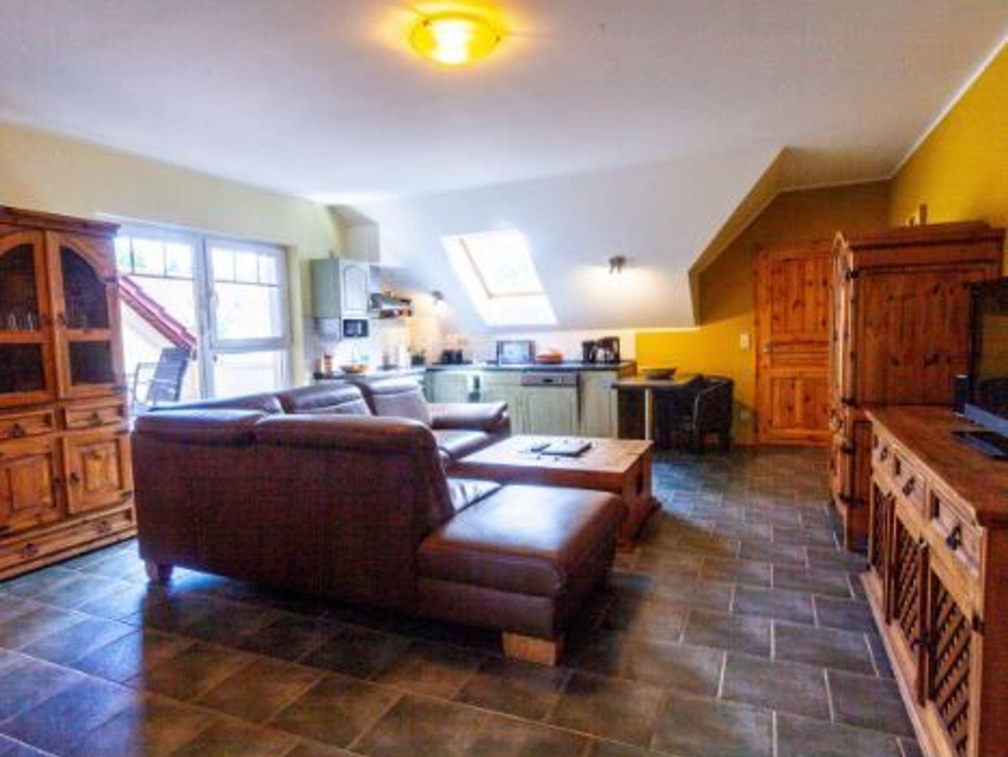 Das Apartment verfügt über einen komfortablen Wohn-Ess-Bereich, Küche, drei Schlafzimmer, Bad, TV und Radio. Die Küche bietet jeglichen Komfort, zum Beispiel Elektroherd mit Kochfeld, Mikrowelle, Kaffeemaschine, Kühlschrank und Geschirrspüler. Entspannen kann man sich unter anderem auf der zughörigen Dachterrasse.