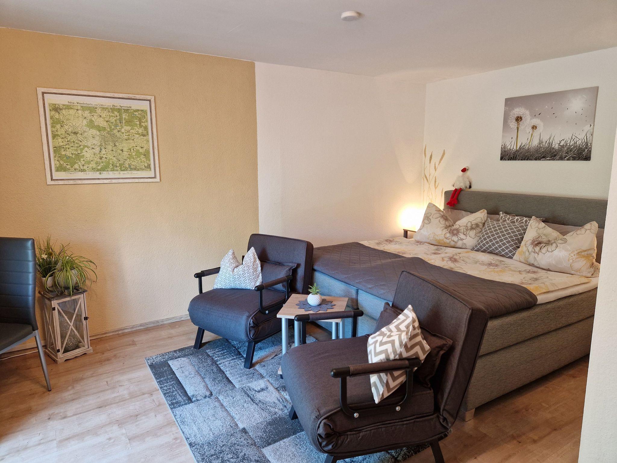 Unterteilt ist die Ferienwohnung in Wohn- & Schlafbereich, Küche und Badezimmer mit Dusche/WC.