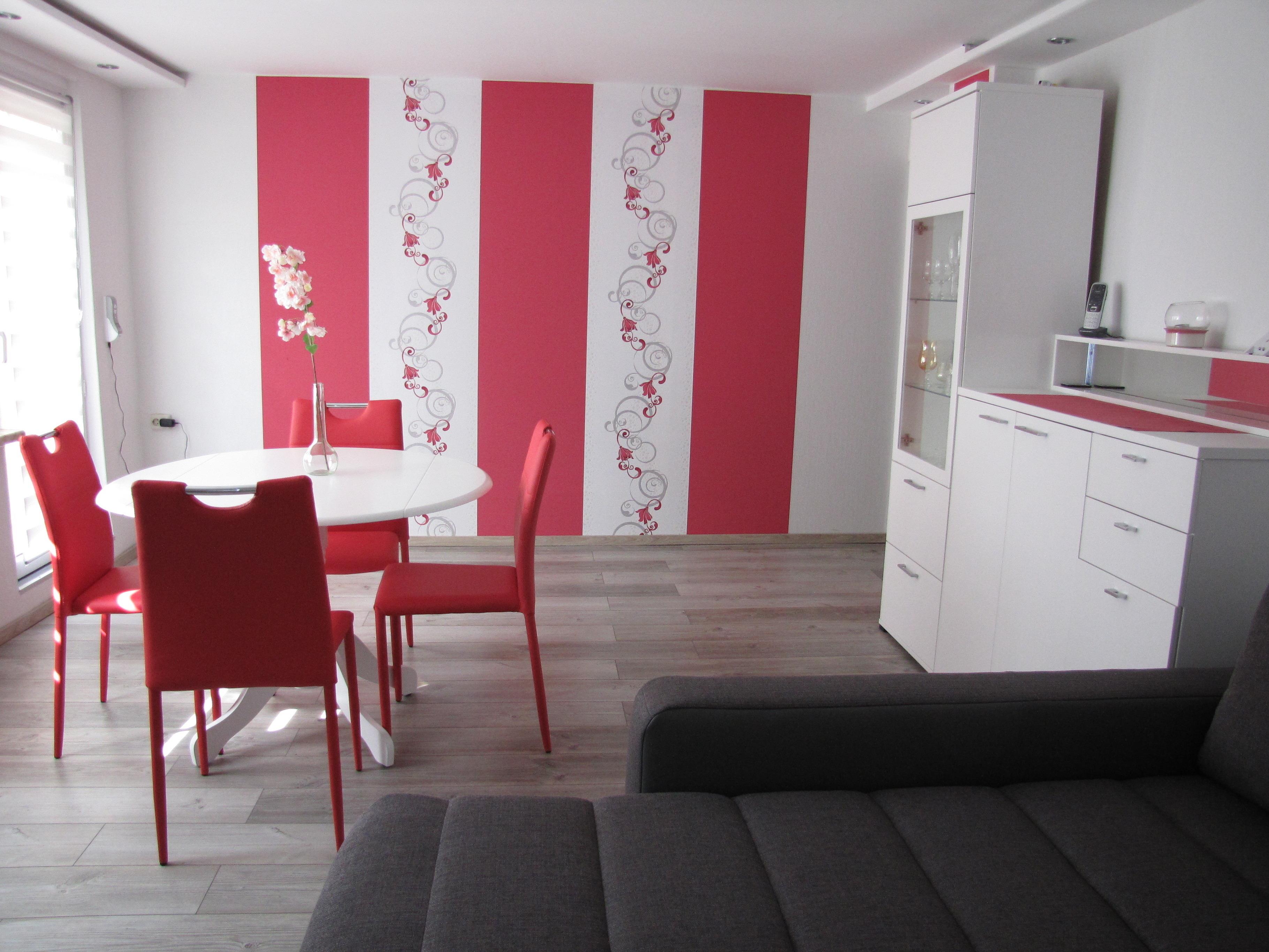 Das Wohnzimmer ist sehr geräumig und verfügt über eine Sitzgruppe und eine chillige Couch-Landschaft zum Entspannen (und nach Umwandlung in eine Schlafcouch auch zum Übernachten). Großbild-TV mit BluRay-Player und Sat-TV steht Ihnen auch zur Verfügung. Im Wohnzimmer ist Laminat als Fussboden verlegt.