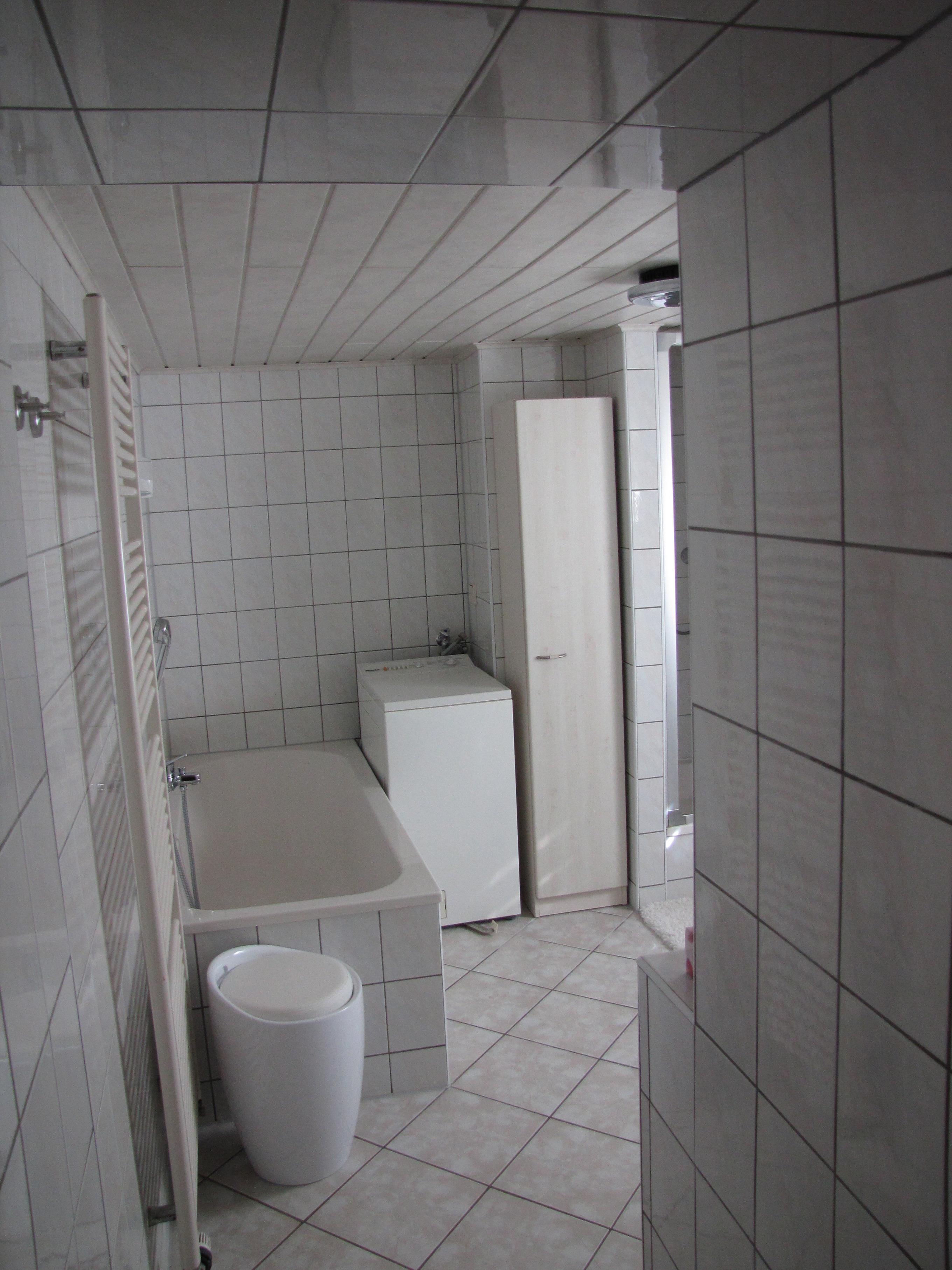 Das Badezimmer verfügt neben Waschbecken und WC auch über Badewanne und Dusche. Außerdem können Sie die dort befindliche Waschmaschine und den elektrischen Wäschetrockner im Schlafzimmer gern mitbenutzen.